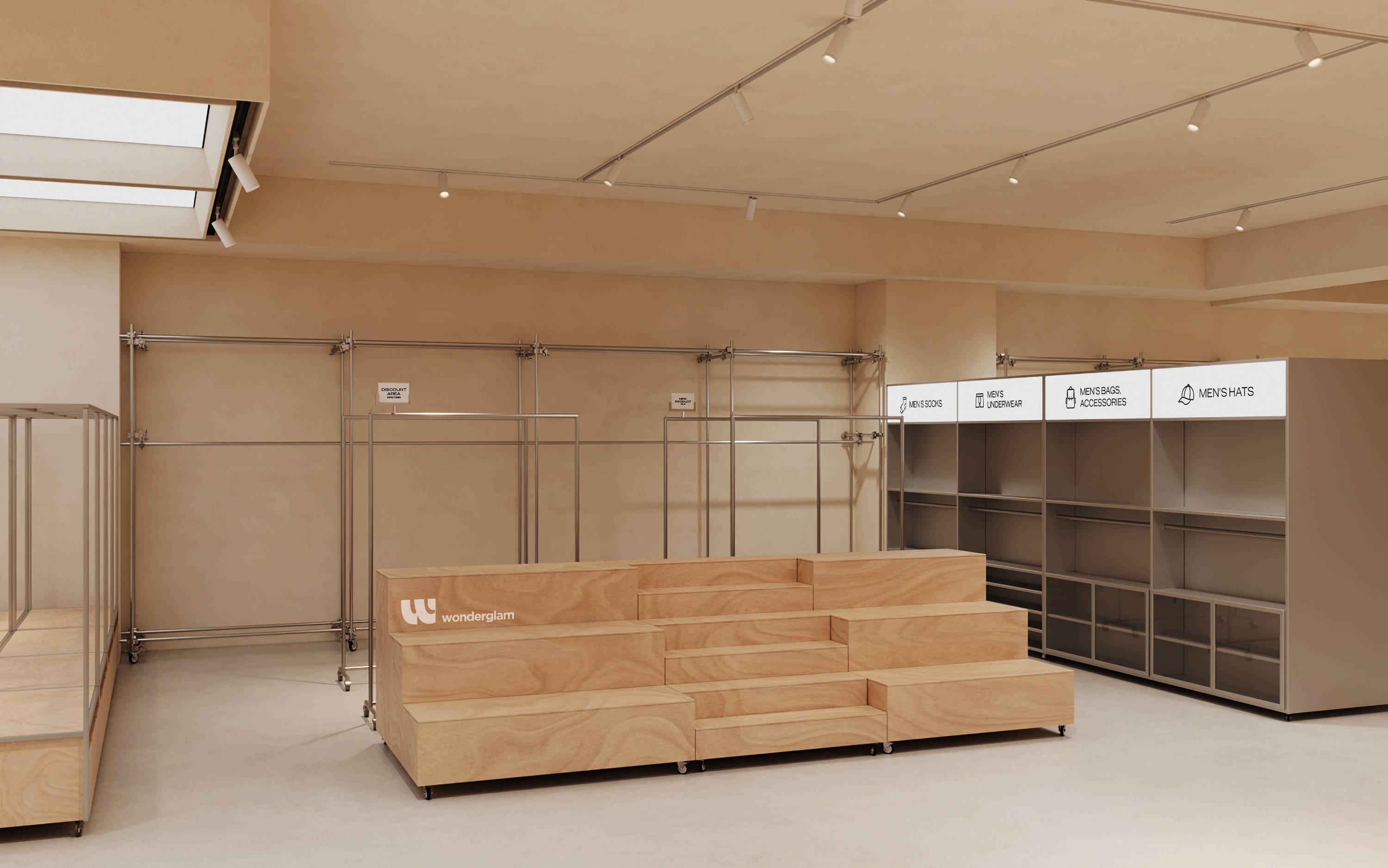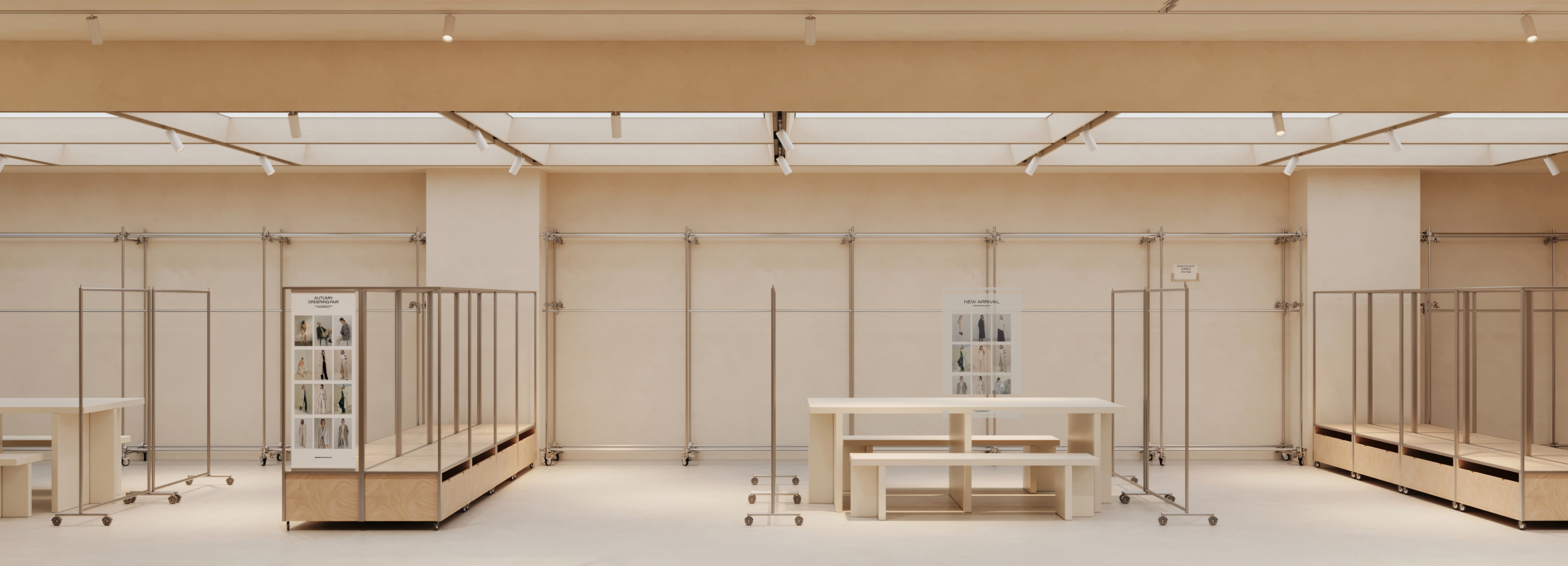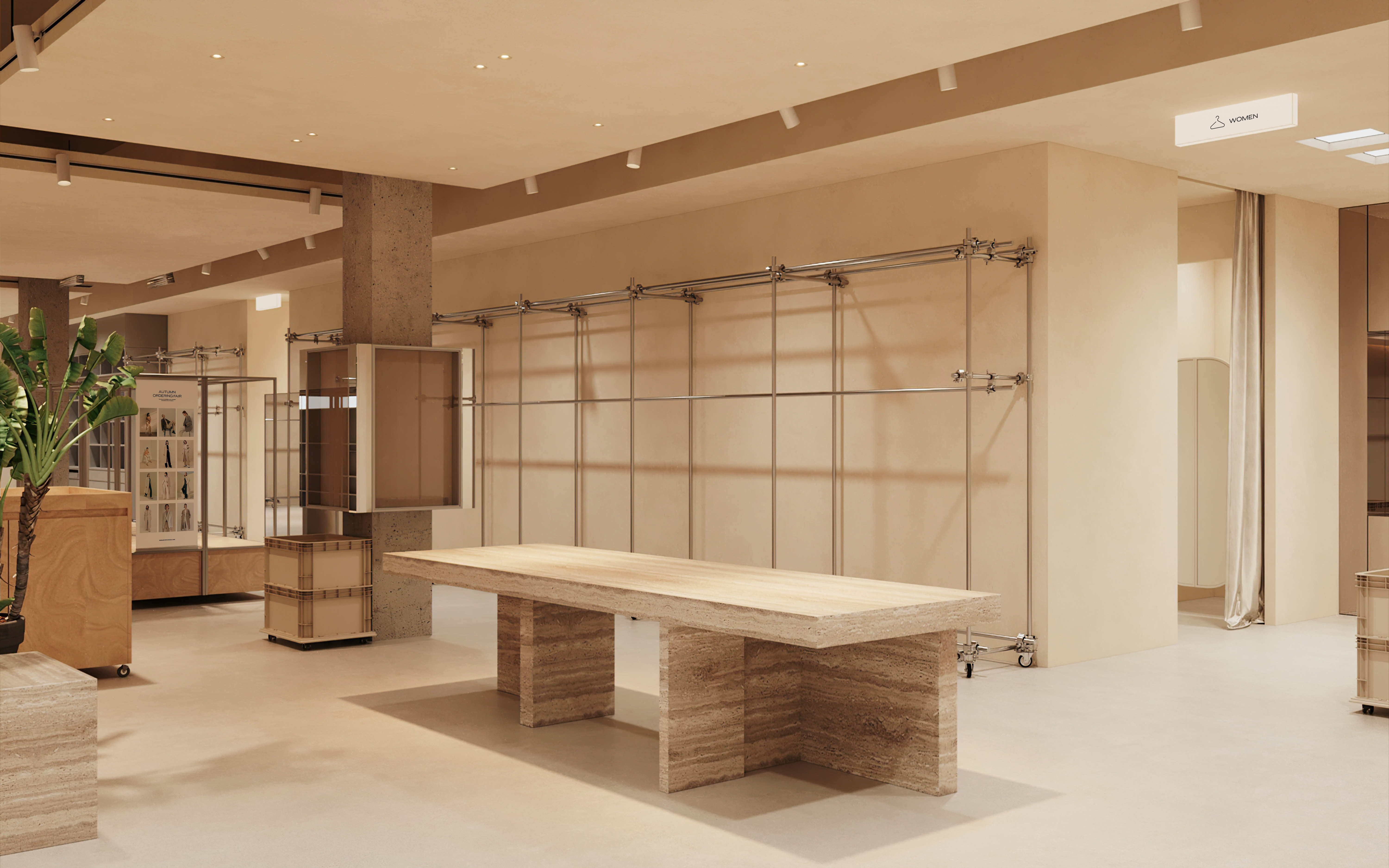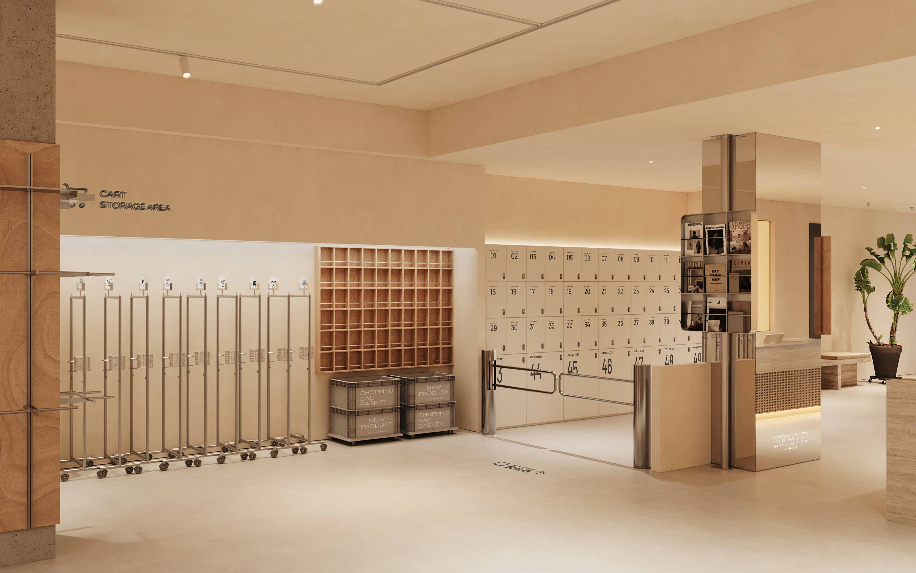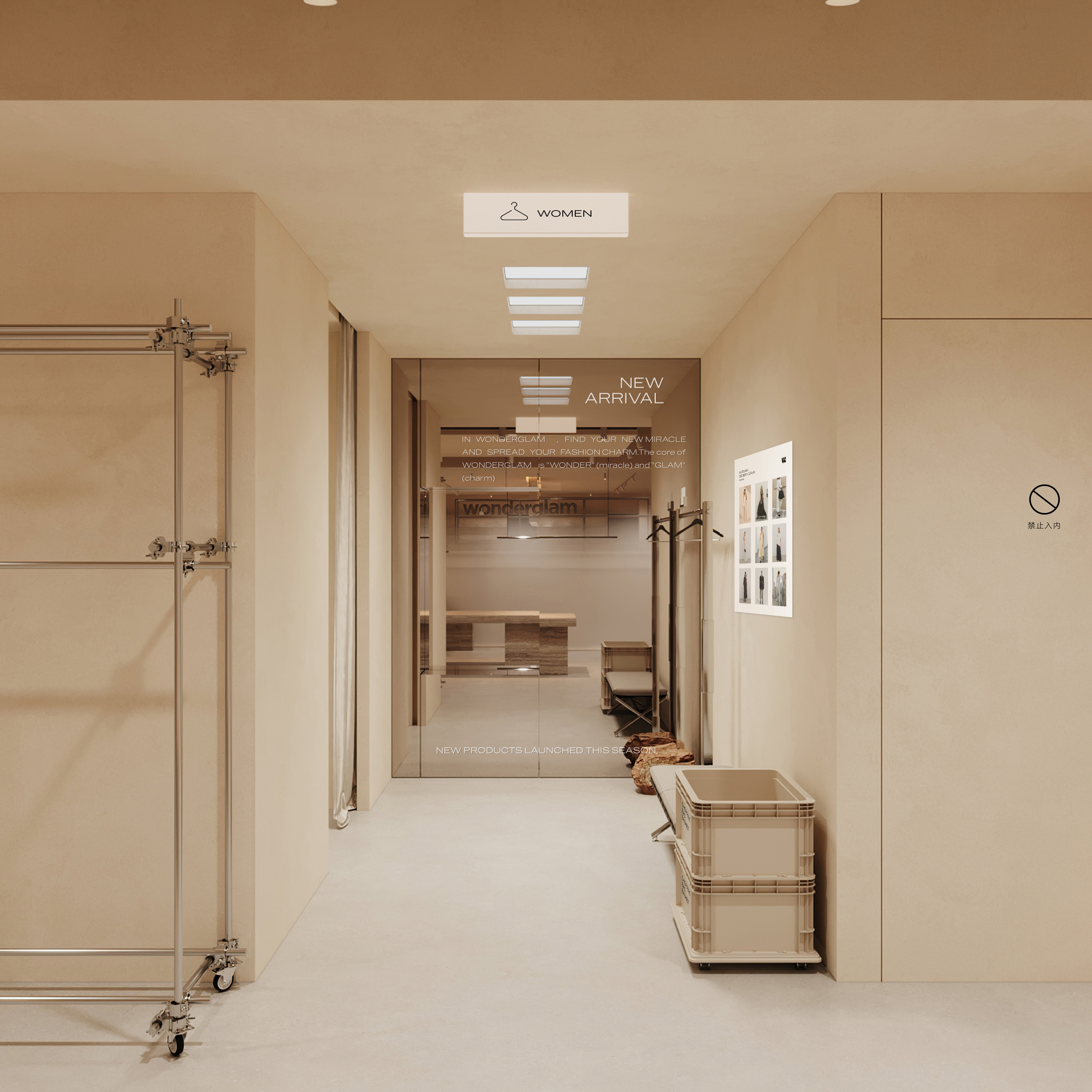 店铺整体以浅色作为空间底色,从米白、浅米到米棕色,层叠交织,营造宁静、舒适的氛围,暖灰色内敛、稳重,在轻盈柔和的基调上增添了一份力量感。