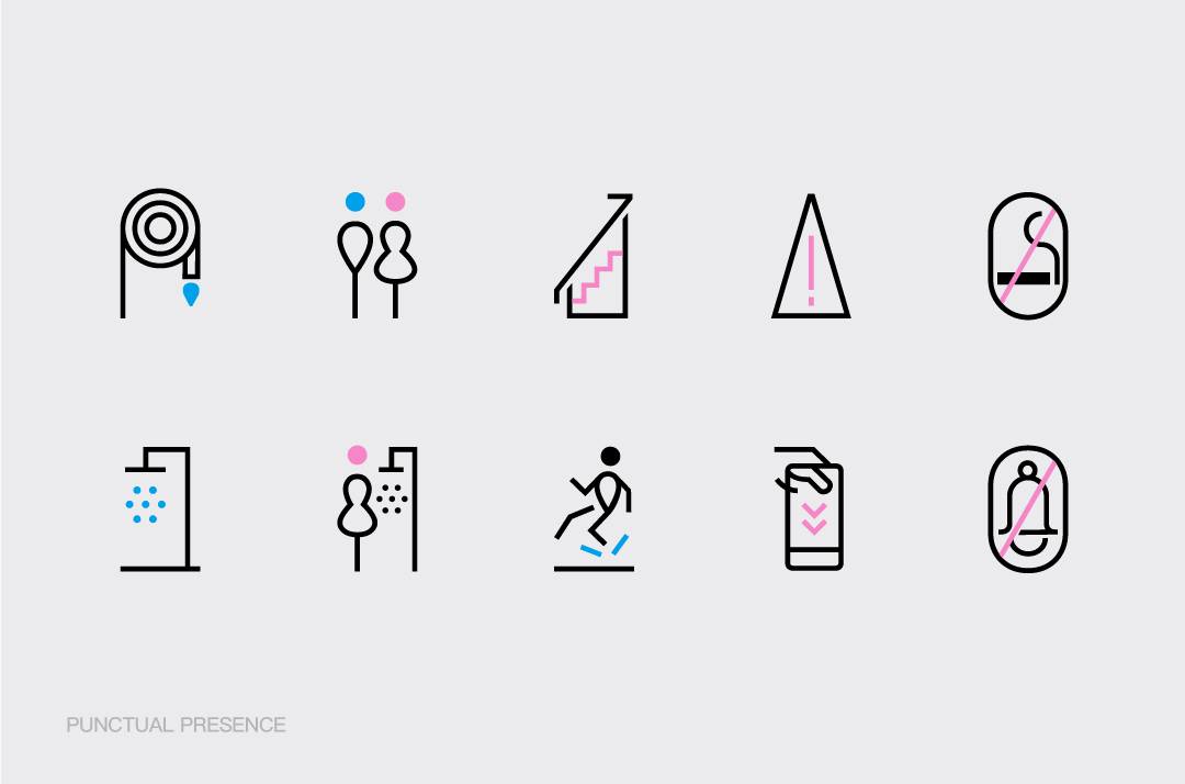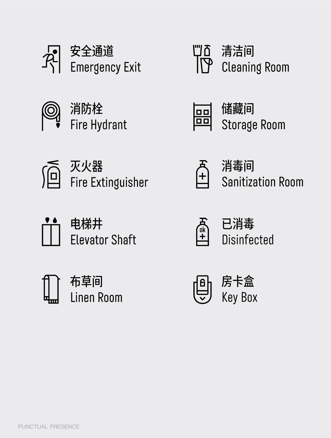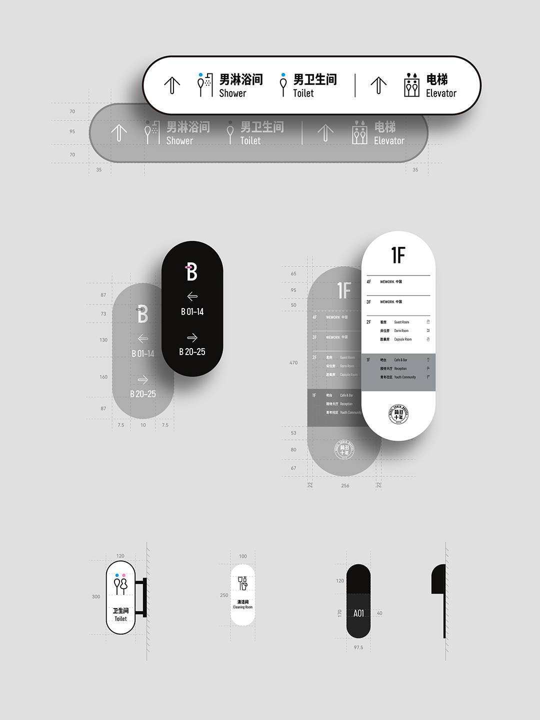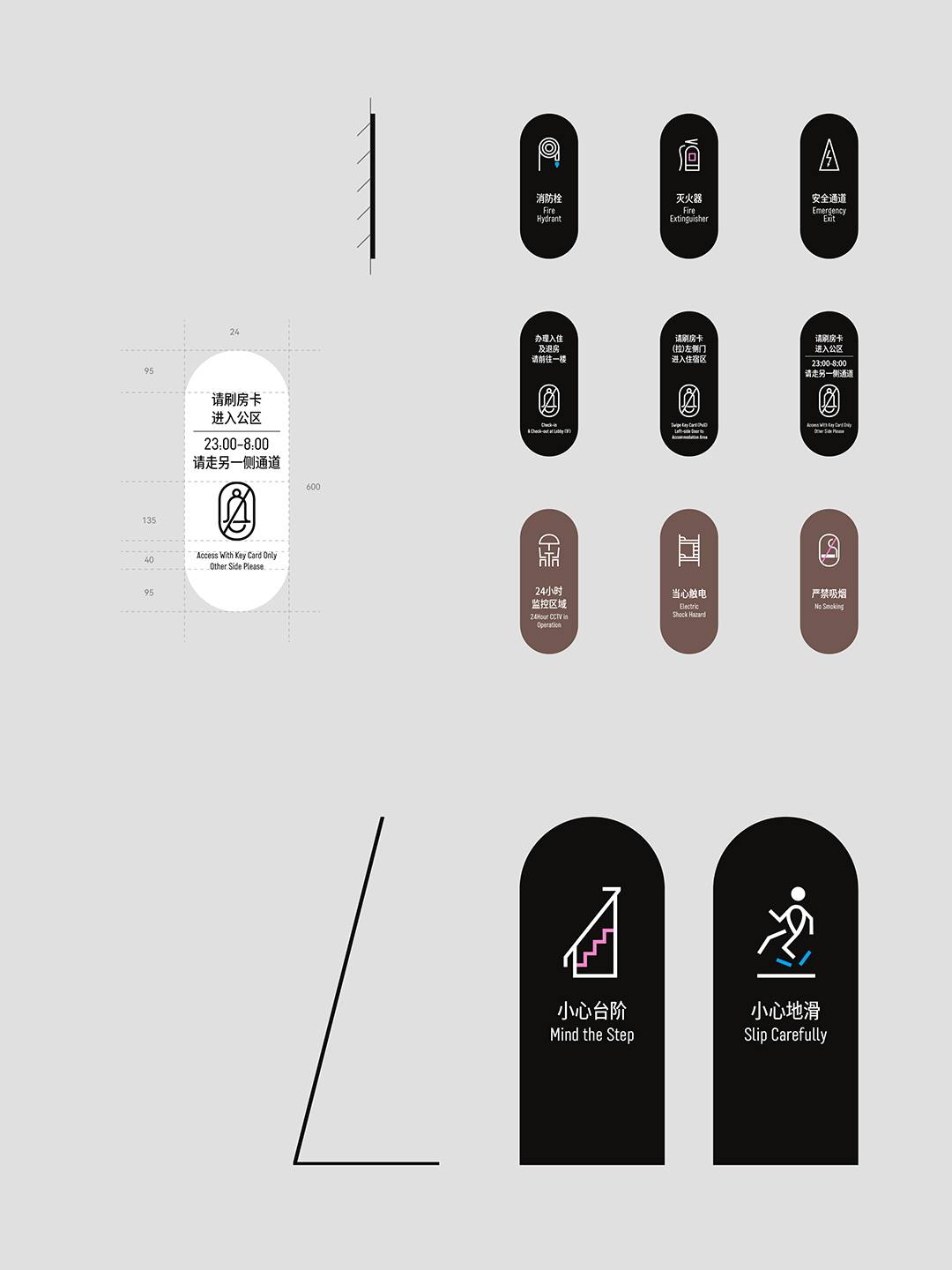 在导视设计中,字体的定义构建了信息层级。无衬线体保障了远距可读性,而定制可变字体更能传递品牌性格,便于灵活调整字重;同时,字体也离不开 icon 的搭配使用。icon 设计作为视觉母语,需要用极简图形来突破语言壁垒。