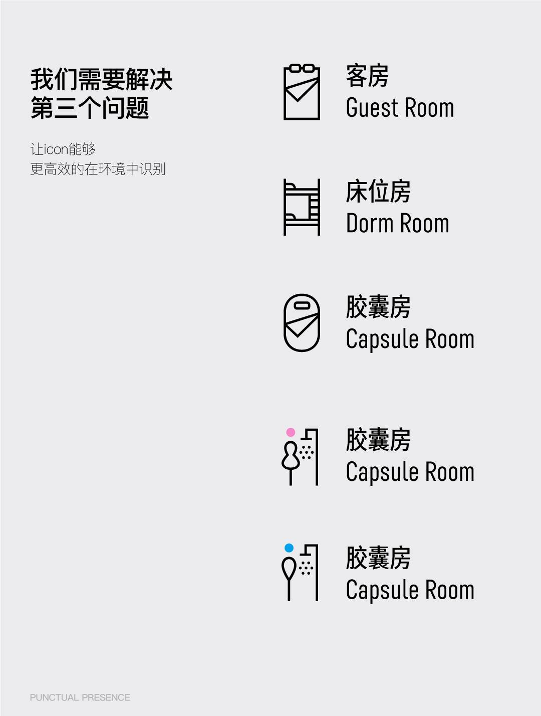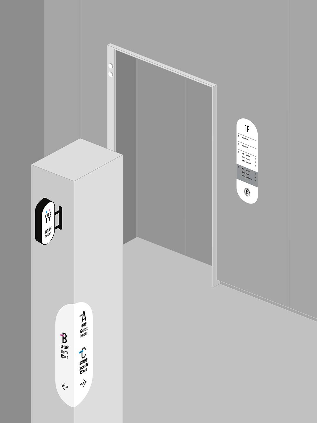 用颜色区分功能分区,旨在降低认知成本。为不同区域(客房/床位房/胶囊房)赋予专属色块,用户无需阅读文字即可通过色彩关联功能,强化空间逻辑性,形成视觉地图。