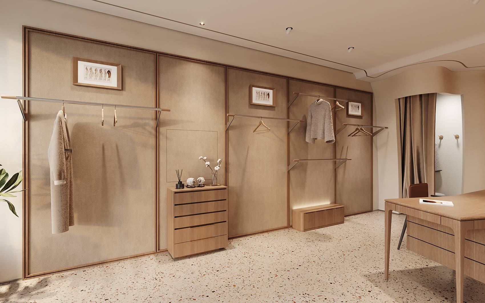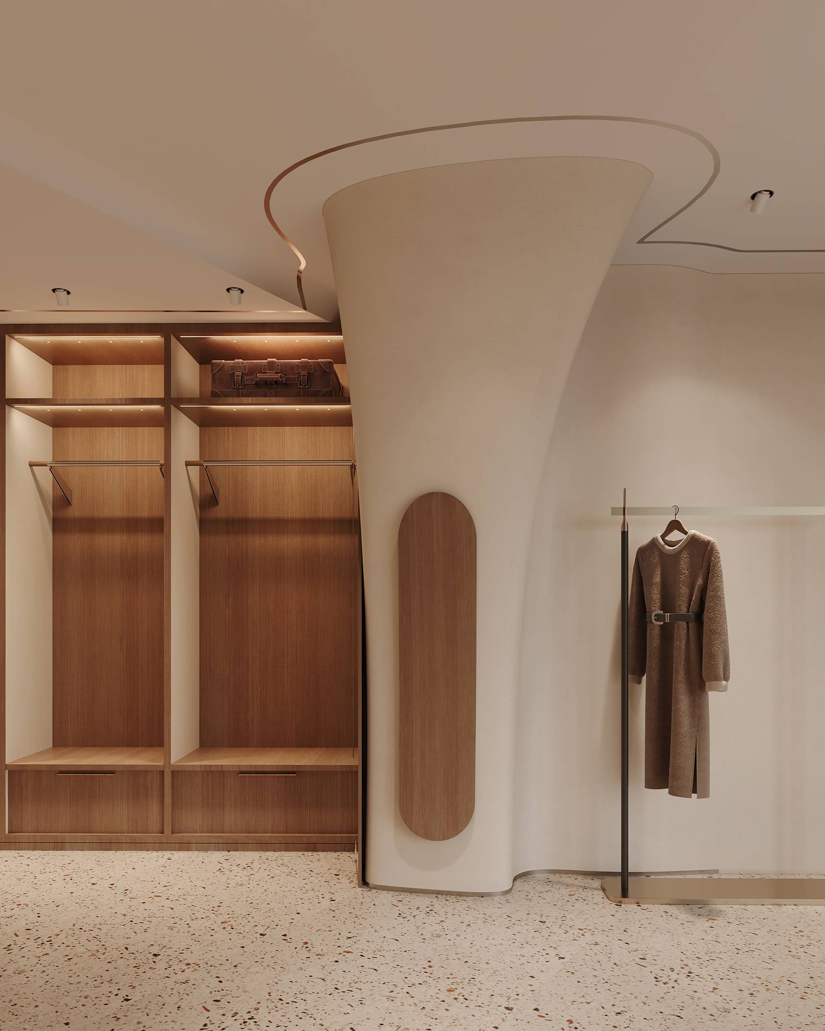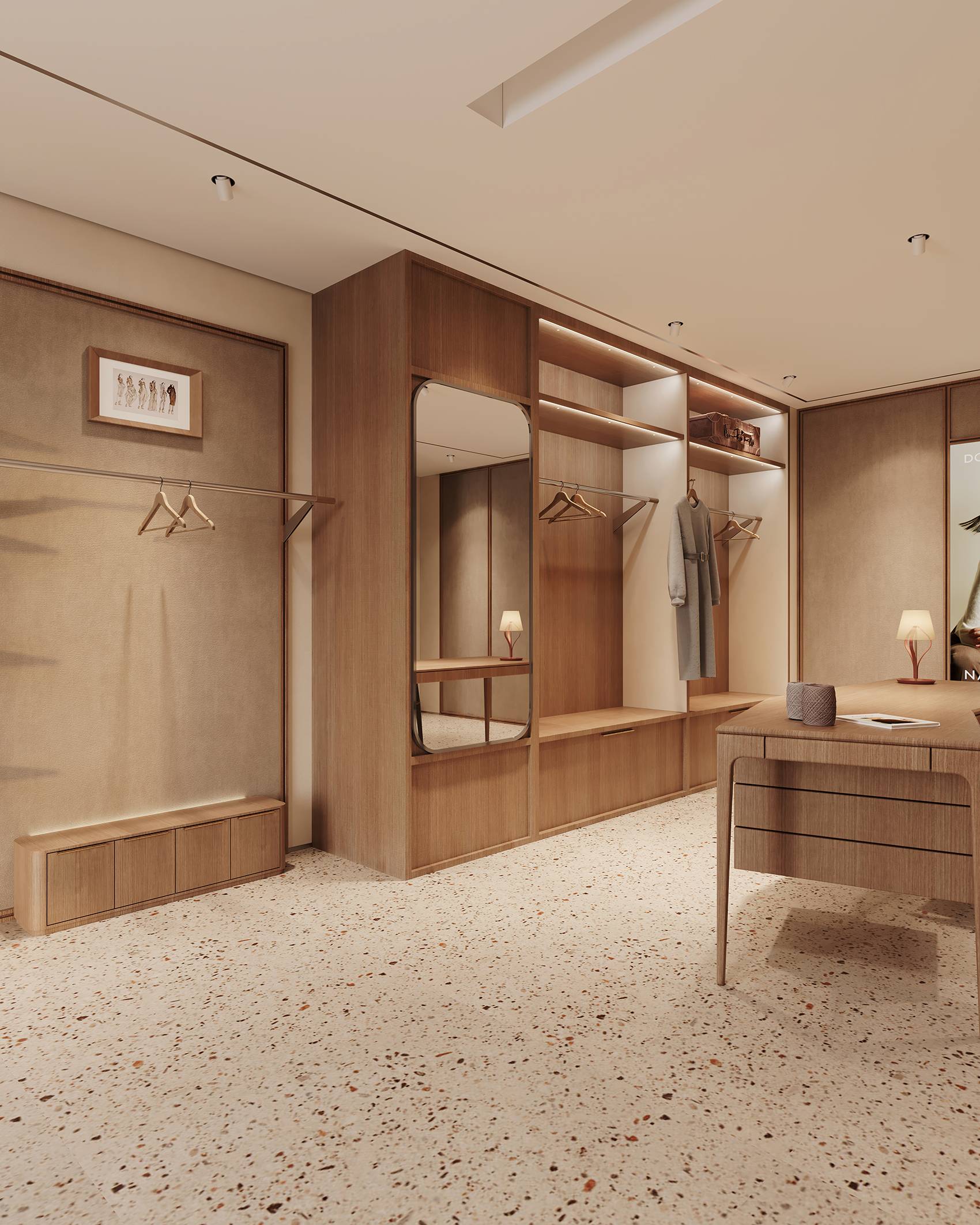 Main Materials: Artistic Coatings, Wood Veneer, Terrazzo, Metal