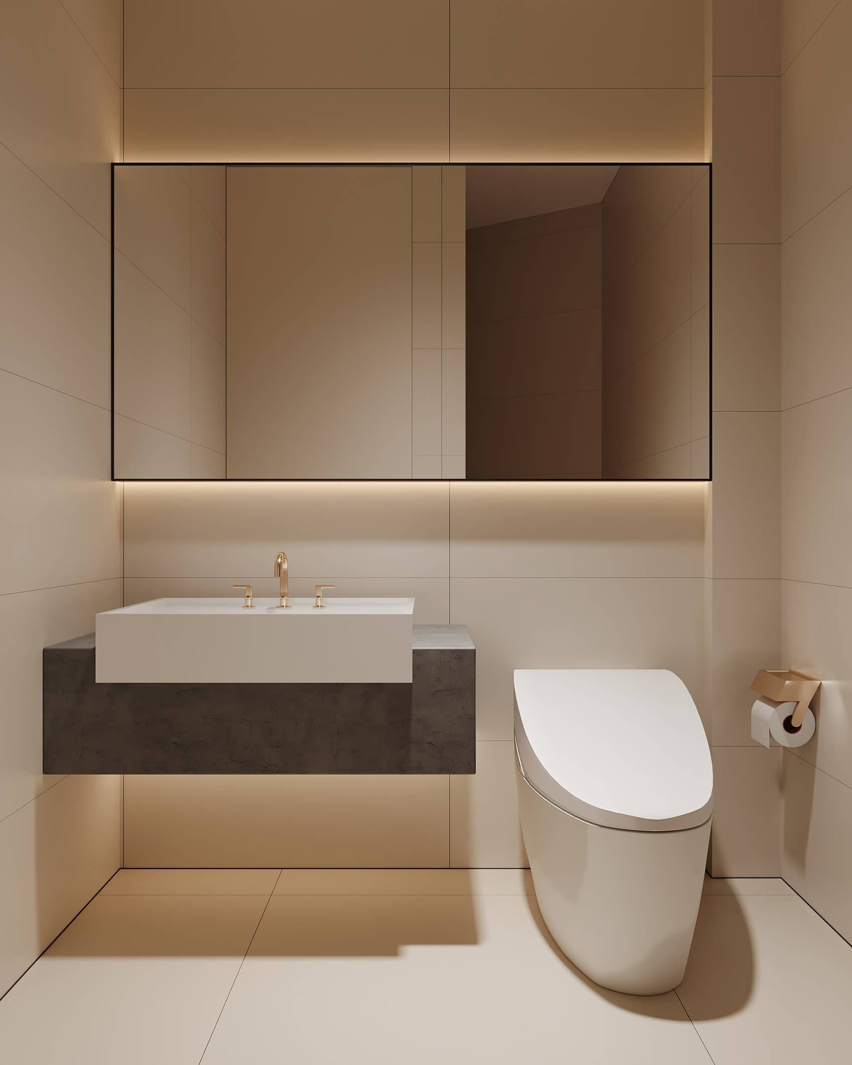 石材和玻璃是卫生间最主要的材质,满足空间功能的同时,减弱了空间内的暖度,更为简洁的空间来塑造空间干净卫生的特性。