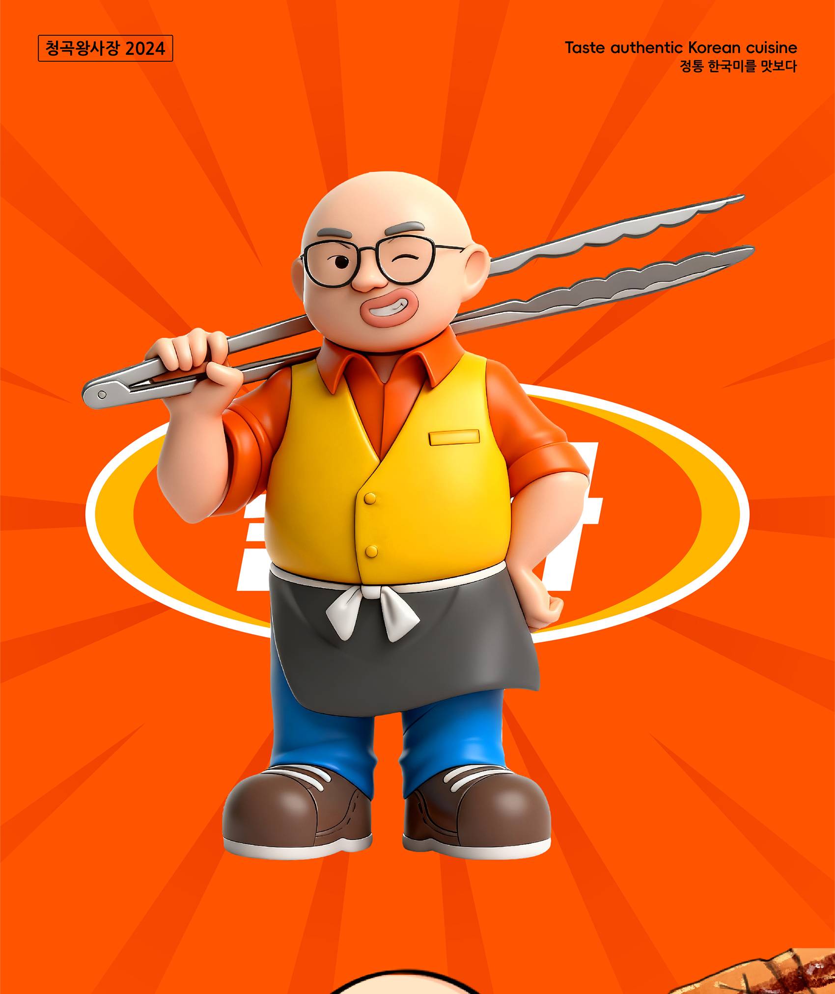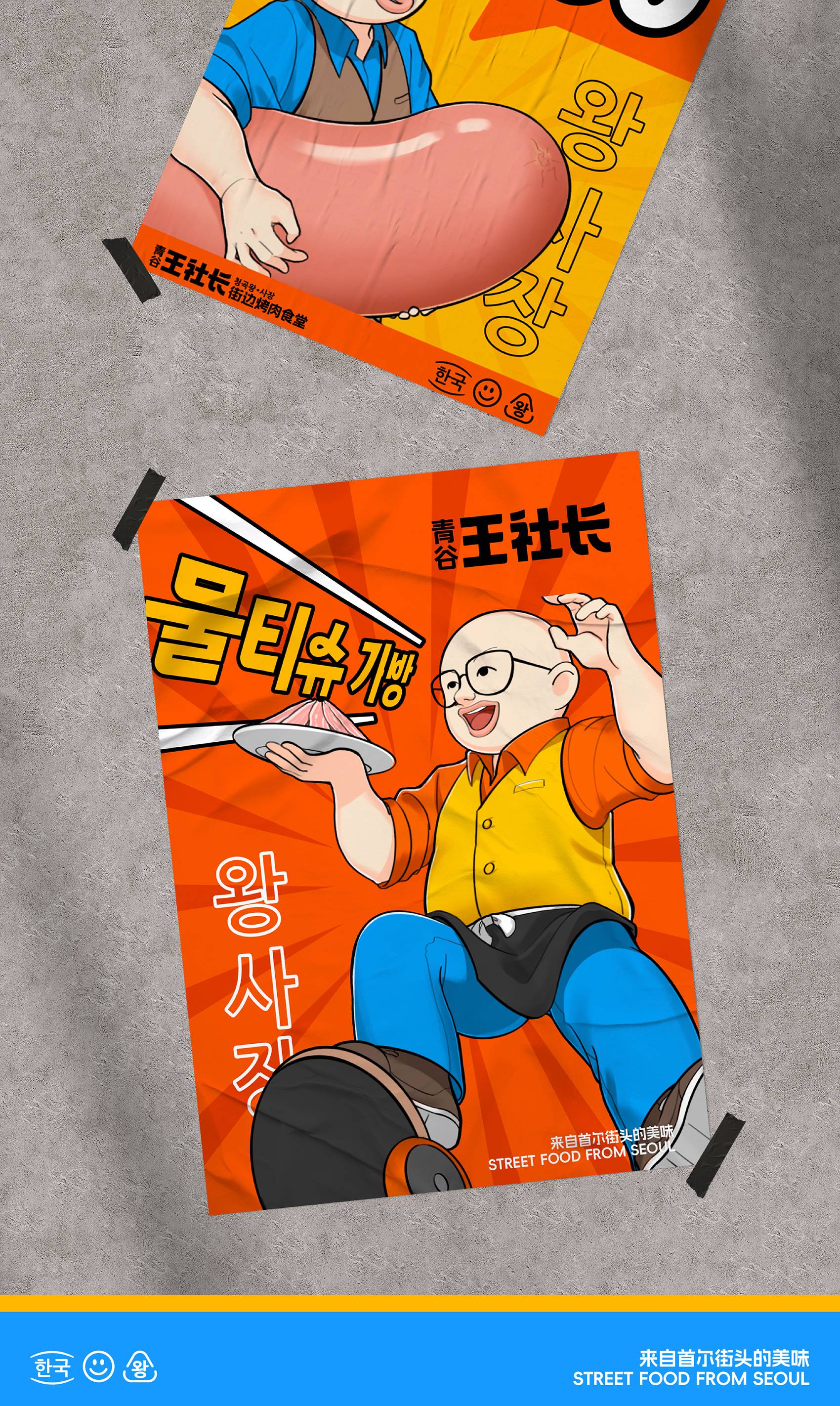 为品牌量身打造的IP形象“王社长”,是一个充满活力与烟火气的烤肉店店主。我们通过标志性的韩式工装、烤肉夹、搬运新鲜食材与亲切笑容等,塑造了他“热情爽朗的匠人”与“分享快乐的美食家”的双重角色。不仅让品牌变得可感、可信任,更成功架起了与消费者之间的情感桥梁,使“王社长”成为一个活生生的、充满烟火气的活力伙伴。
