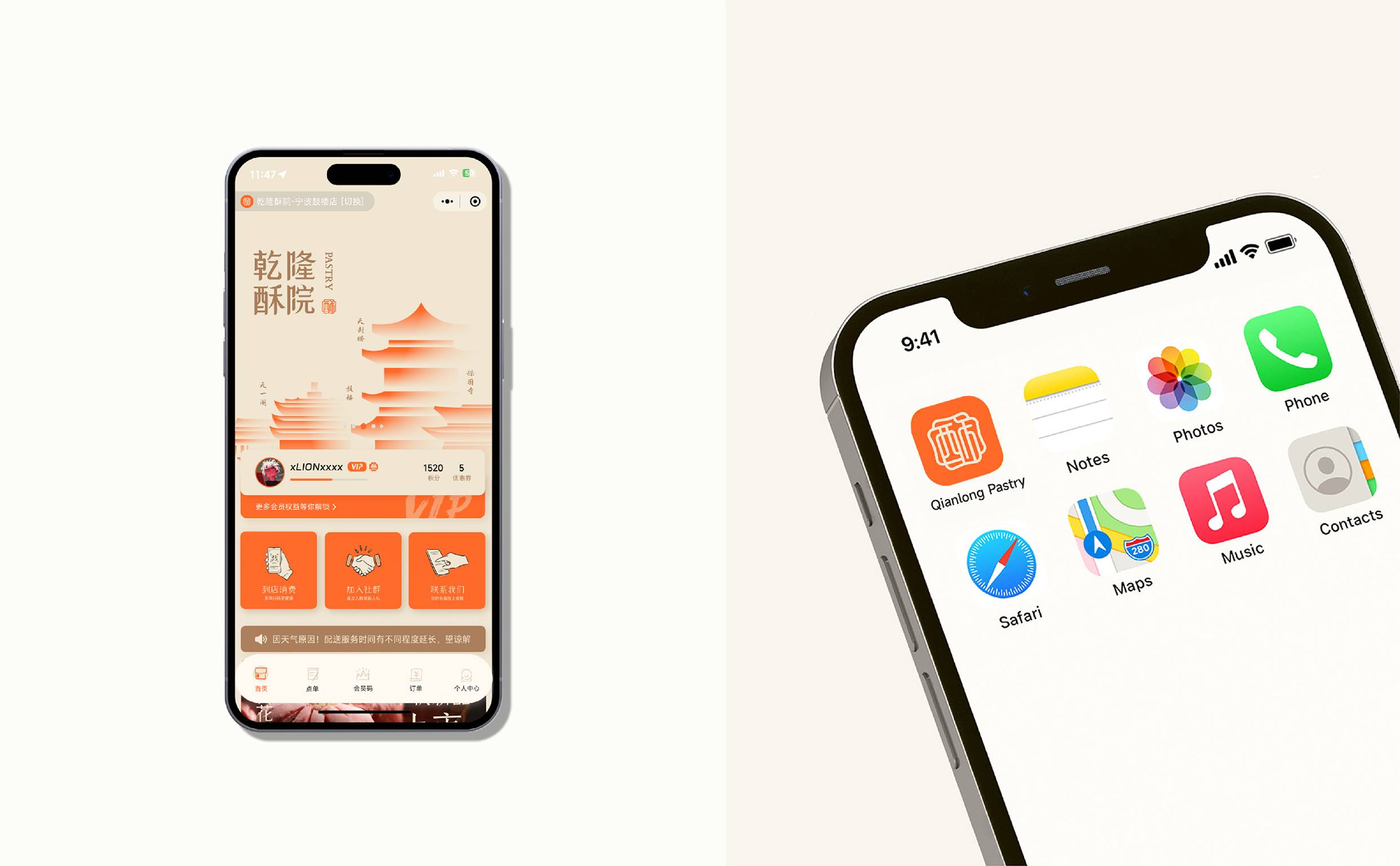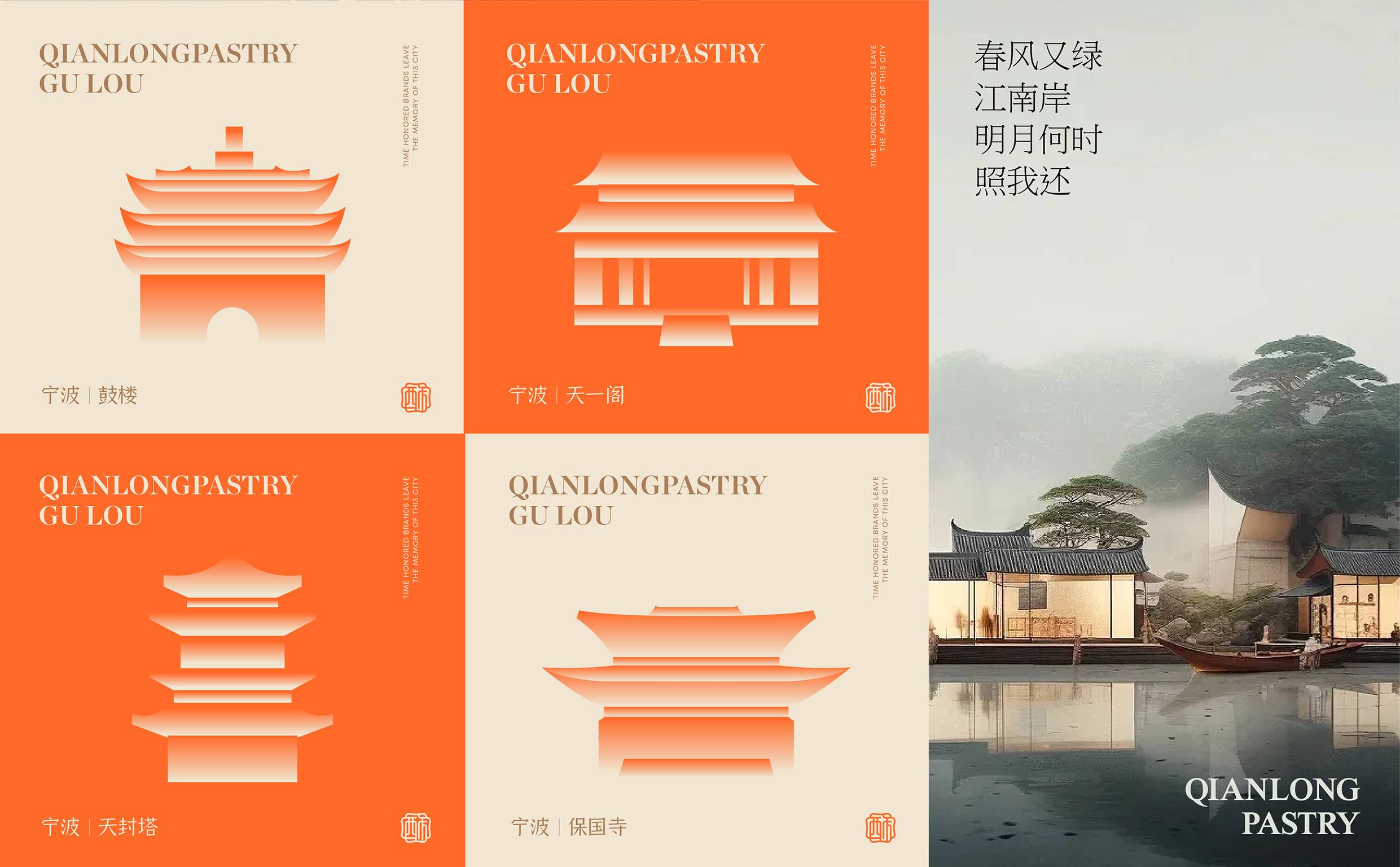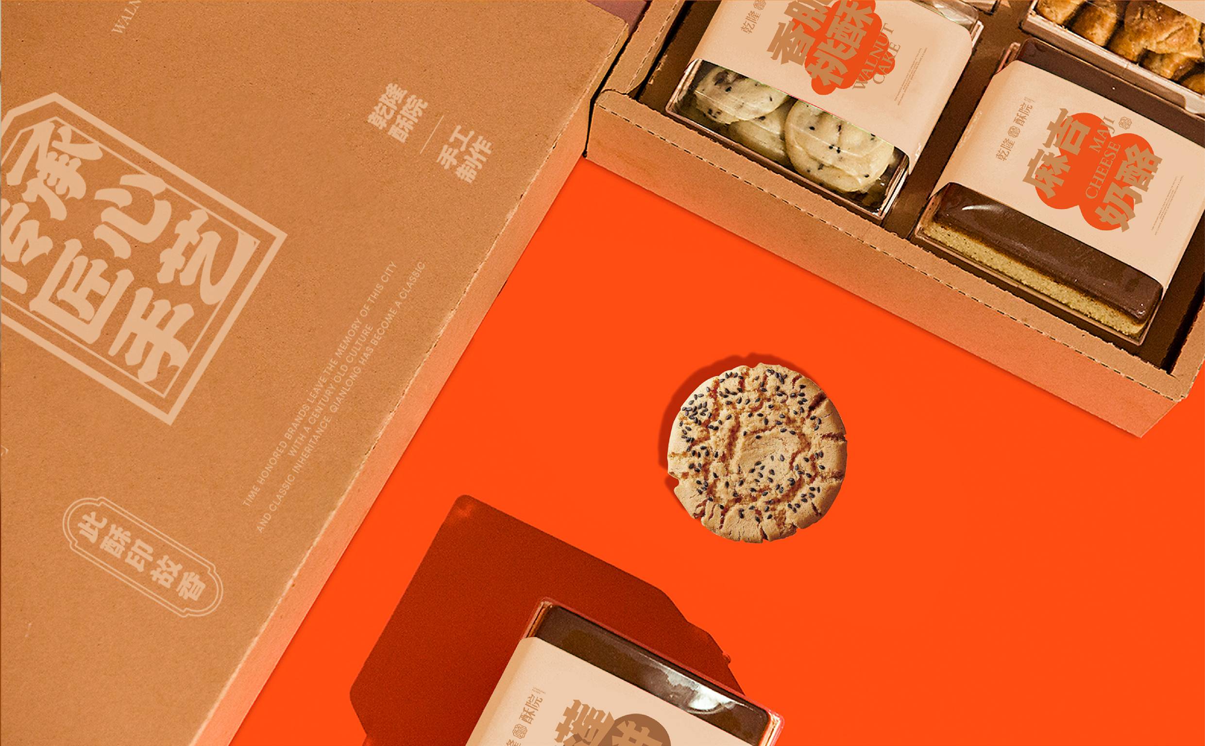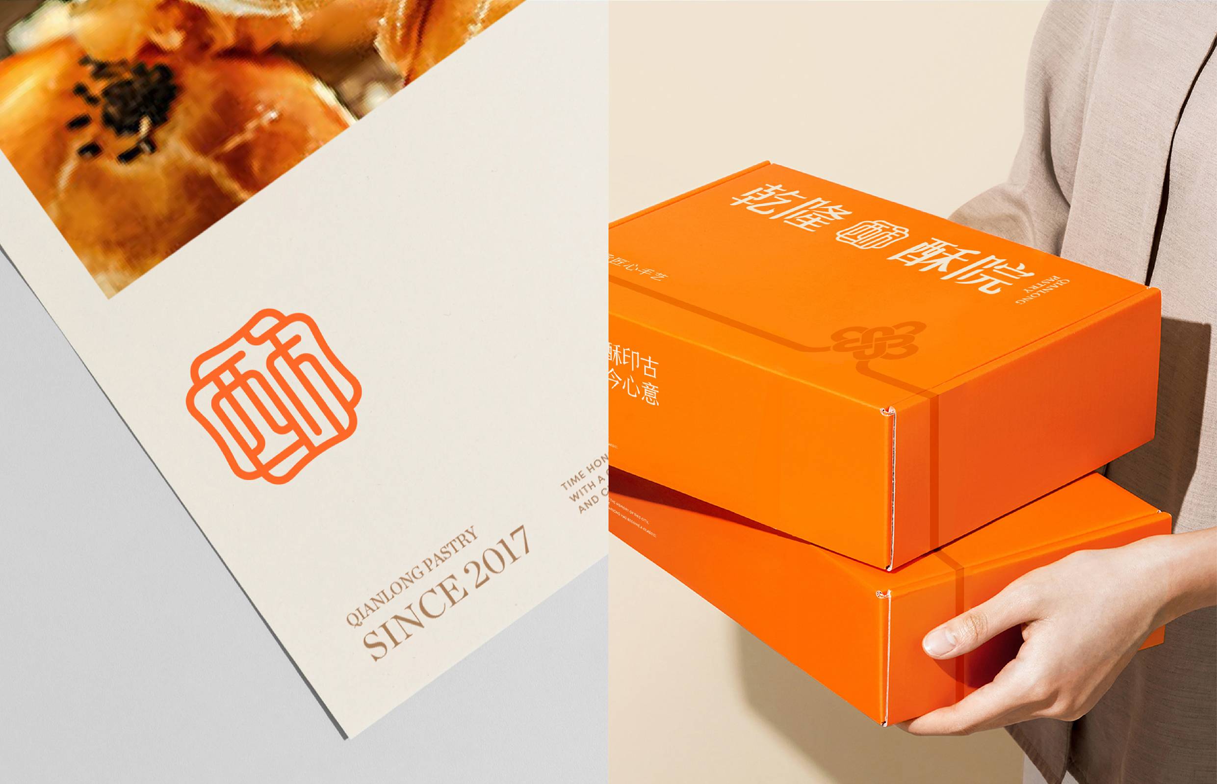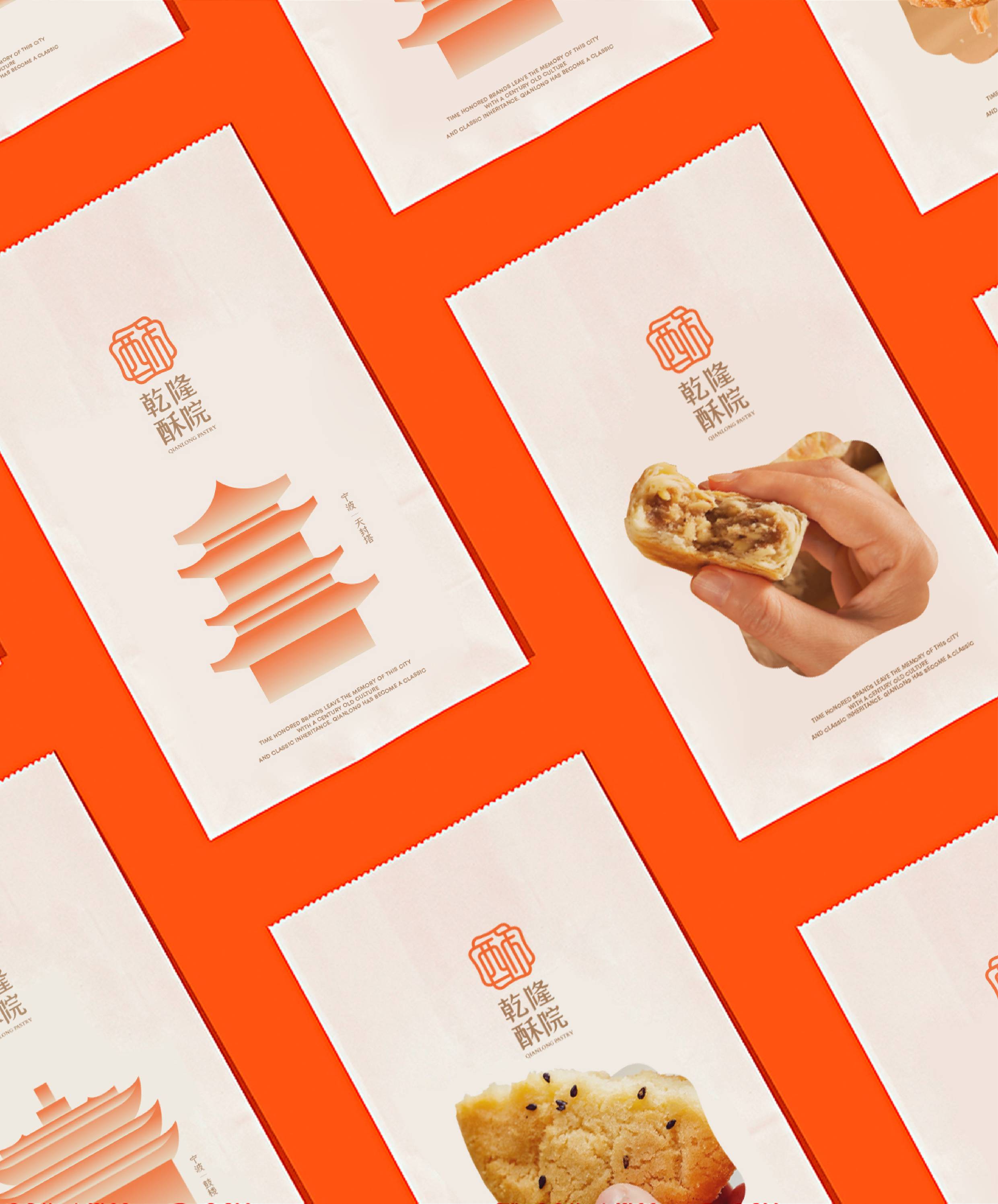 面对品牌扎根浙江的地域属性,我们聚焦“江南意象”与“宫廷传承”两大文化支点展开设计。logo图形设计上,融合江南窗棂的灵秀轮廓与传统印章的严谨形制,既点出地域特色,又呼应“乾隆”背后的历史感。核心“酥”字以书法笔触融入图形,直观传递品牌专注酥类糕点的定位。整体造型简约典雅,既承袭江南美学的温婉细腻,亦符合现代审美。
