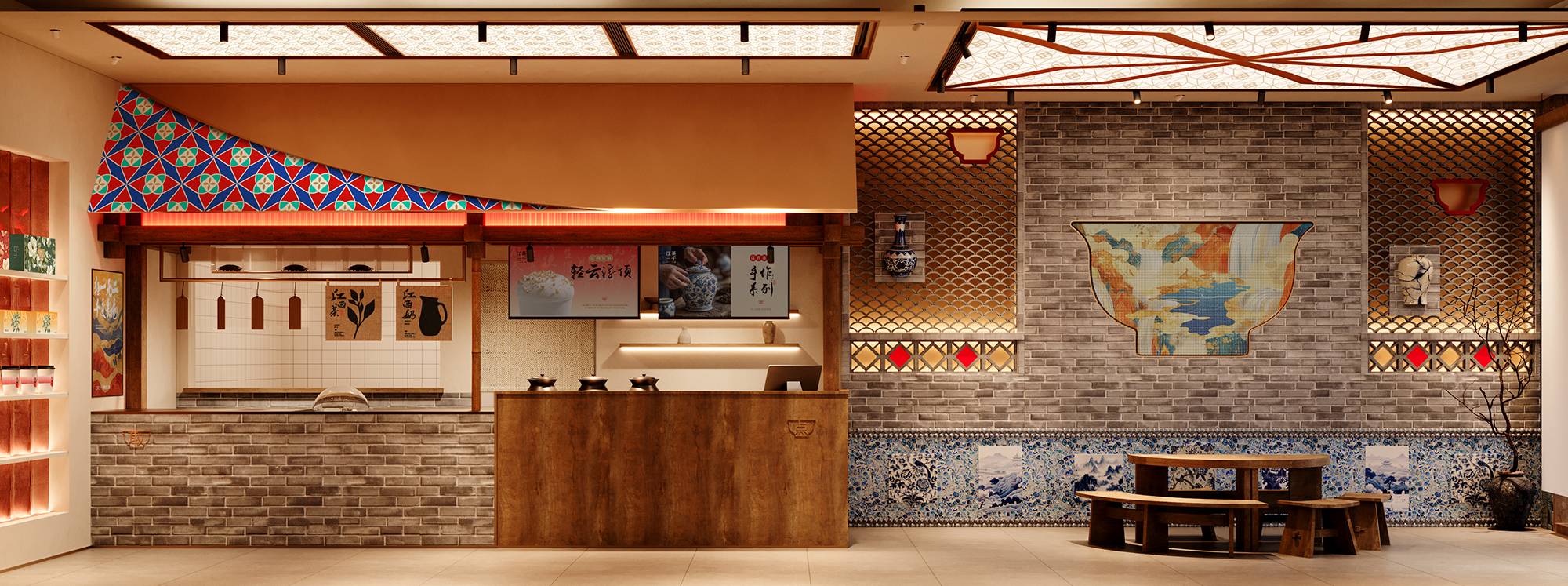 在此次茶饮空间设计项目中,我们以“一茶知江西”为灵感原点,将江西深厚的茶文化底蕴与中式传统美学相融合,注入现代设计语言,打造一处兼具文化温度与当代体验的茶饮空间。