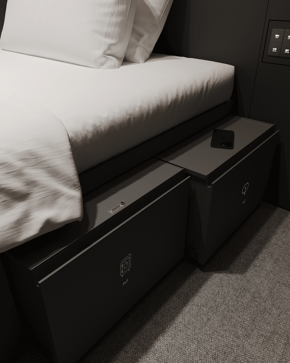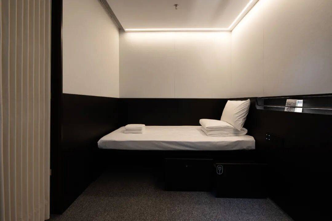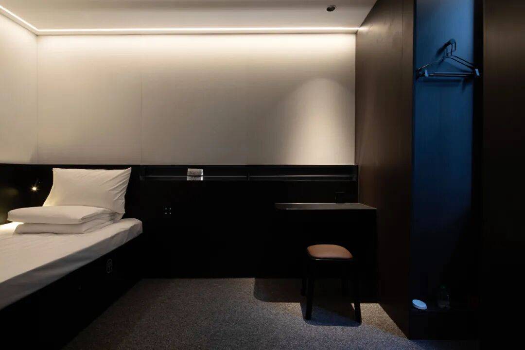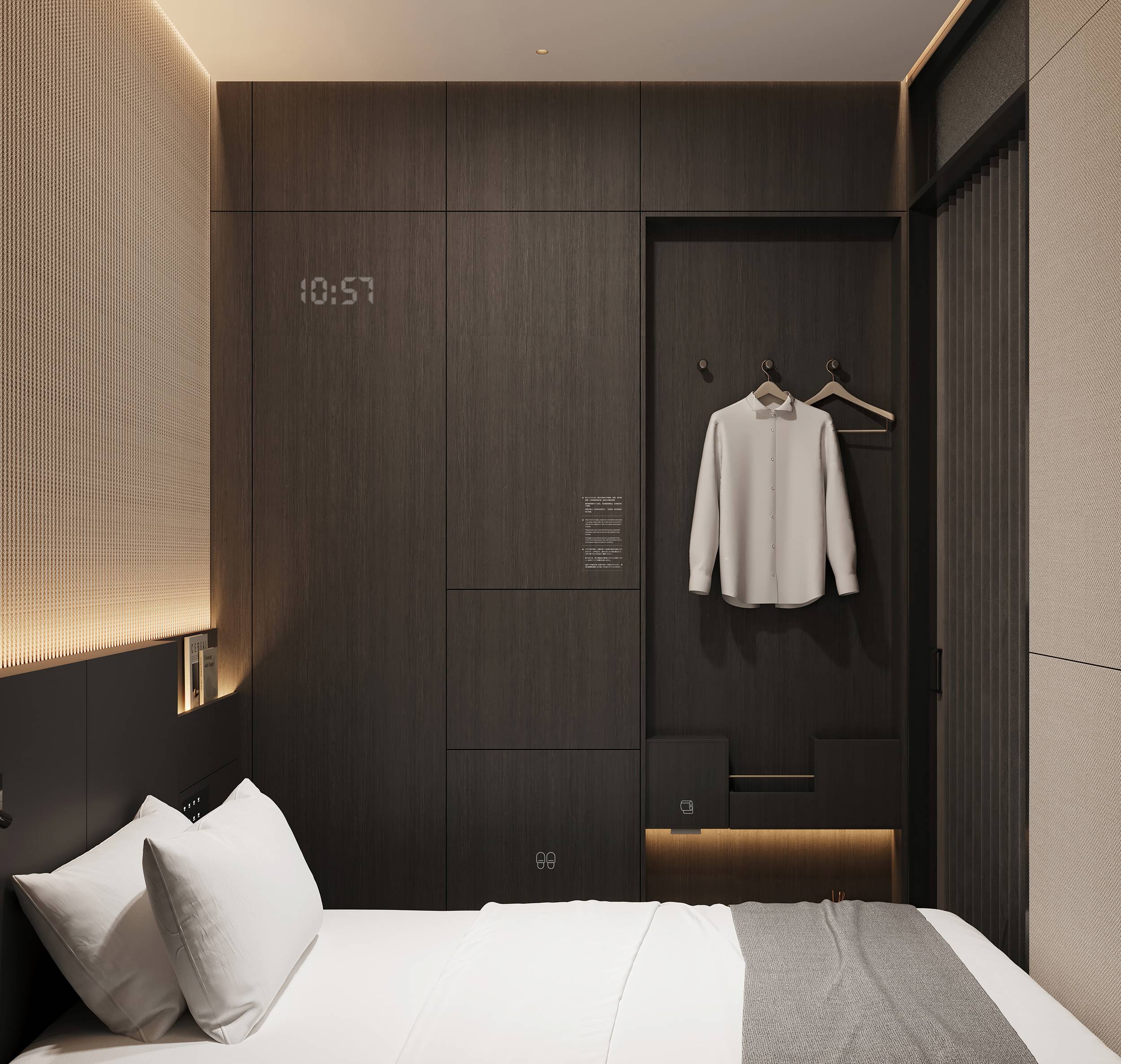 胶囊房以“功能集成”为核心,在紧凑空间内通过立体规划实现高效居住。设计将各项功能巧妙嵌入墙面及床体,将每一寸空间都转化为功能性载体,最终在有限空间内呈现体面且舒适的私密领域,为尽情探索与社交后的休憩提供宁静港湾。