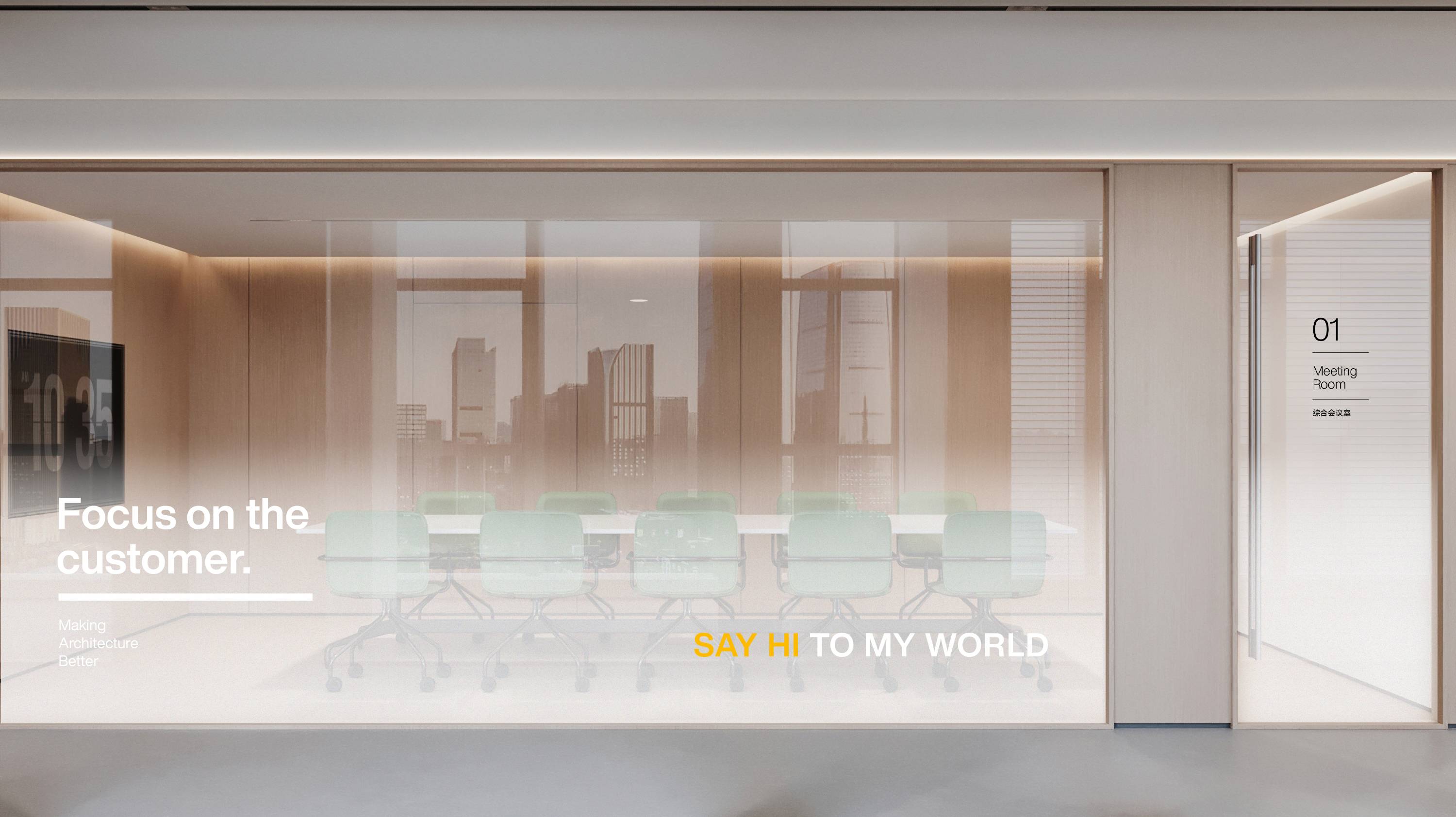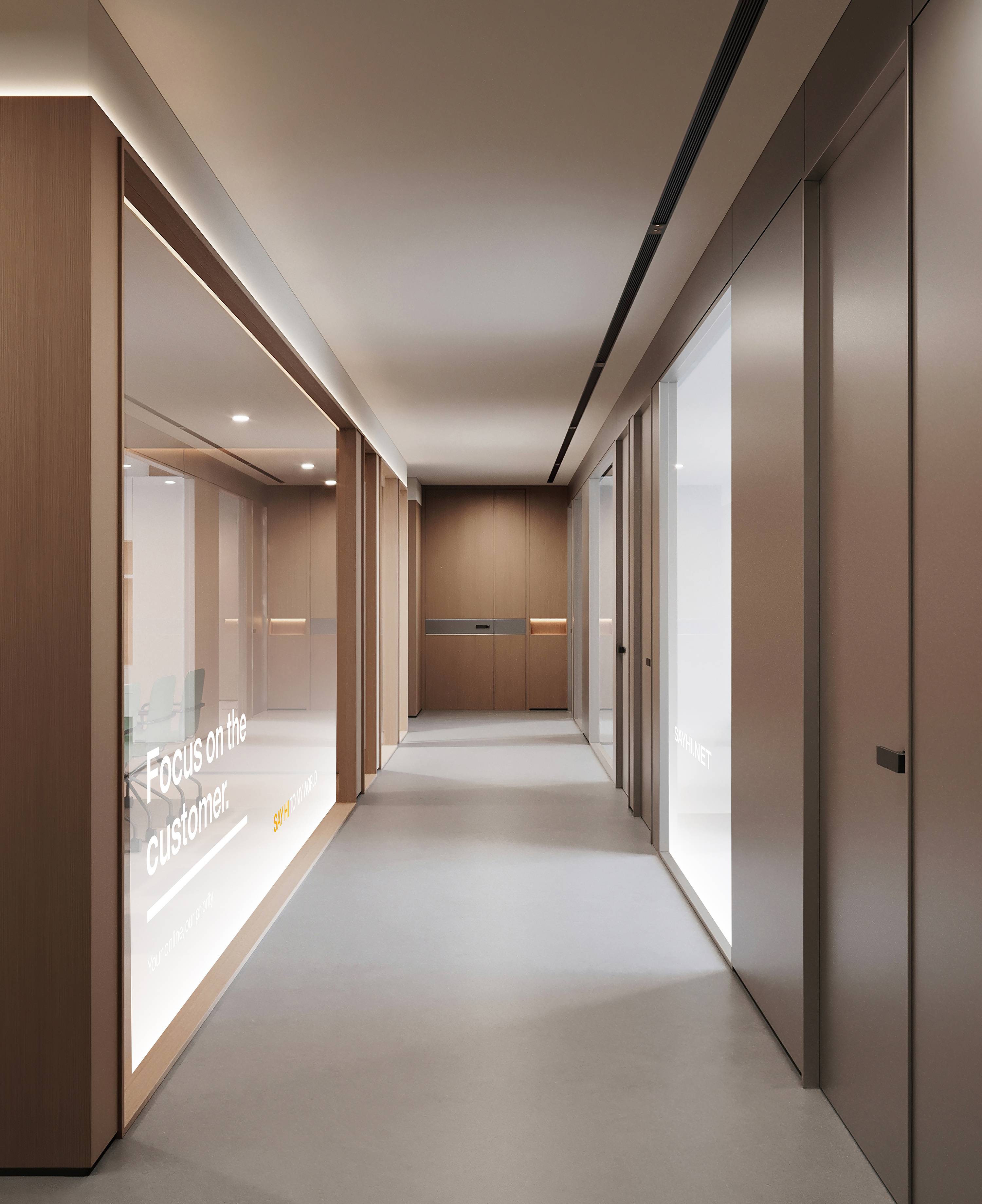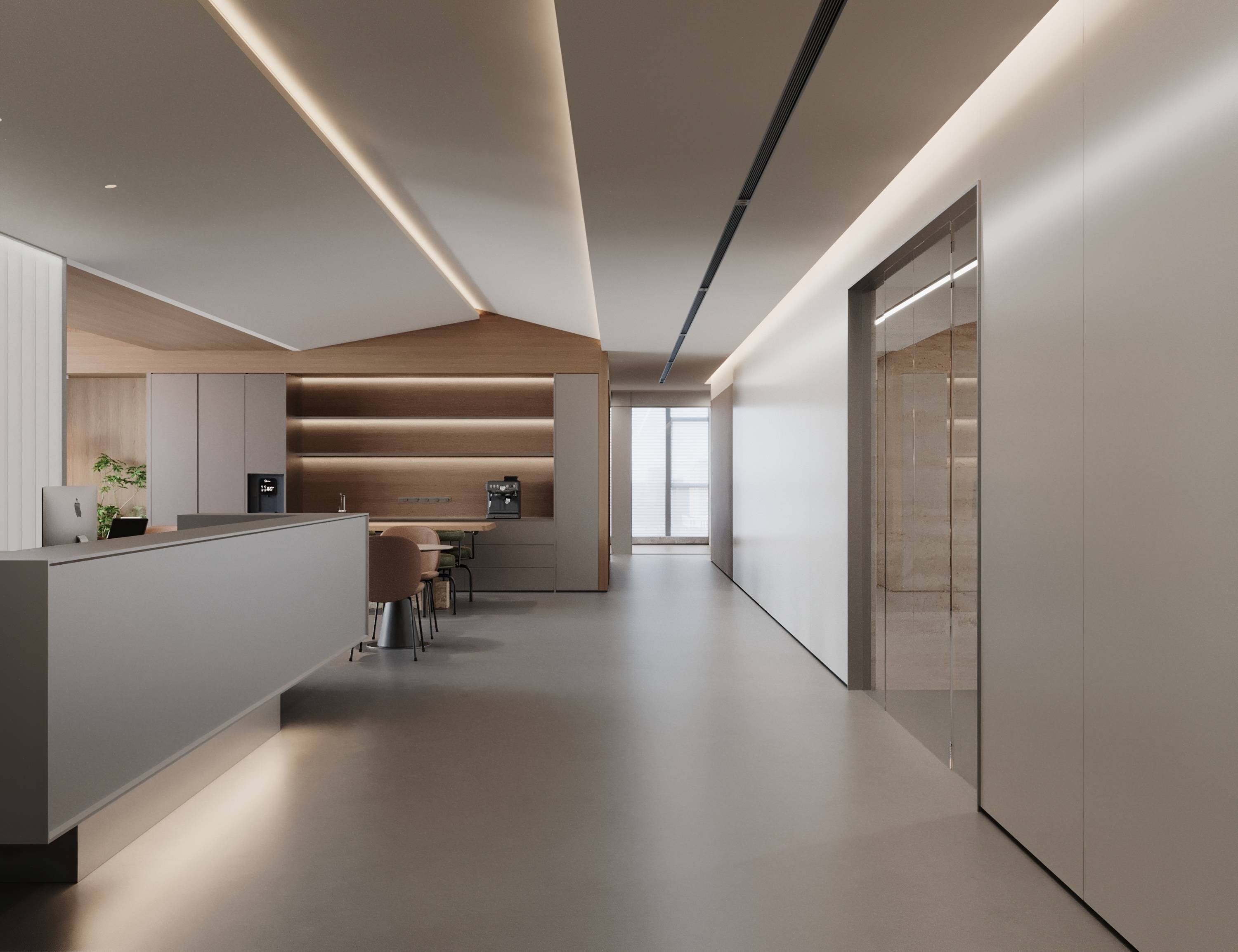 温润的木质元素贯穿始终,传递出舒适、自然的感受。利落的金属以精致的质感勾勒出空间的轮廓,强化了现代办公环境的时尚气息。此外,艺术漆与玻璃等材质的运用,丰富了整体的肌理层次,共同营造出一个简约、协调且富有质感的专业空间。