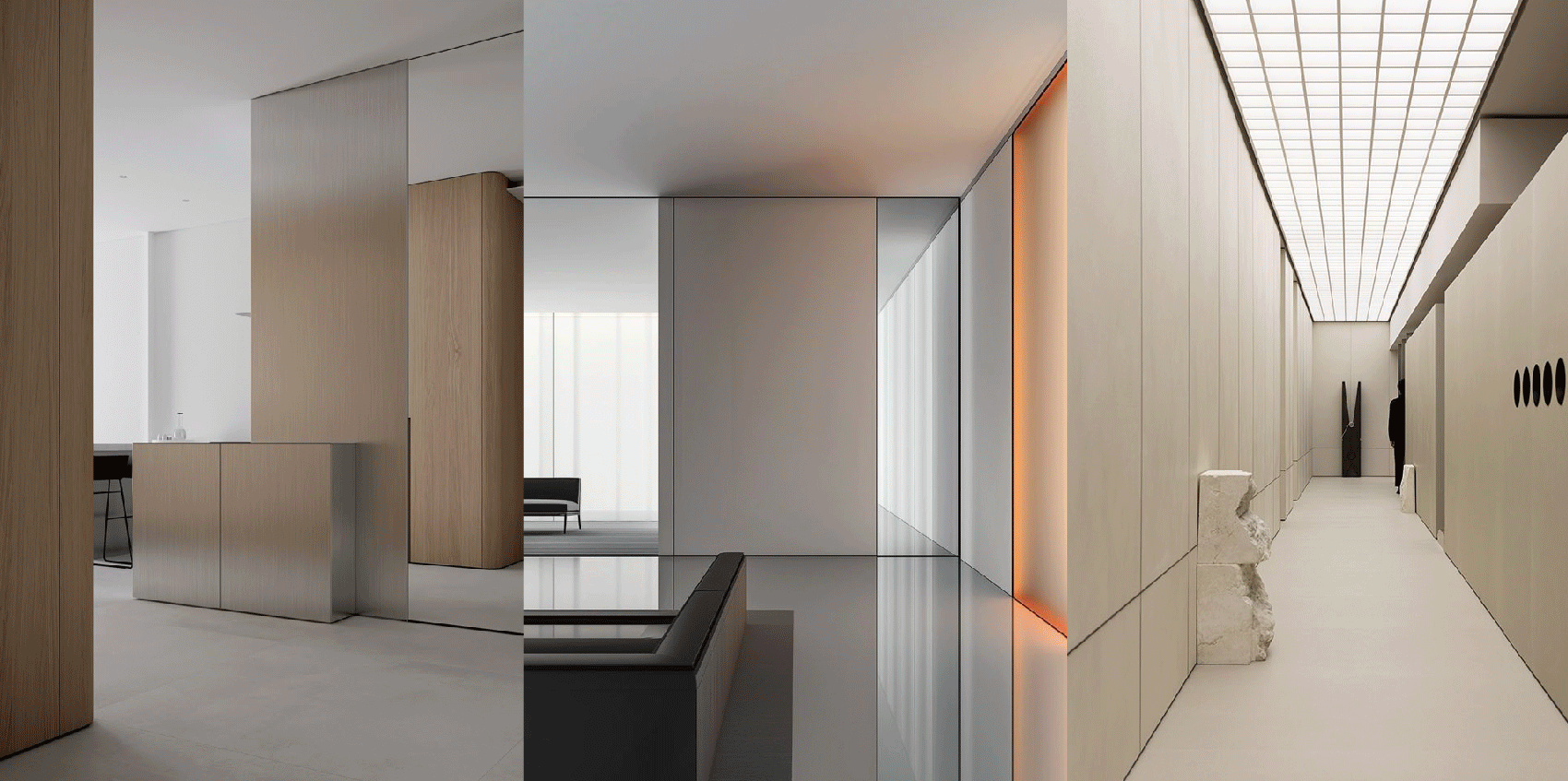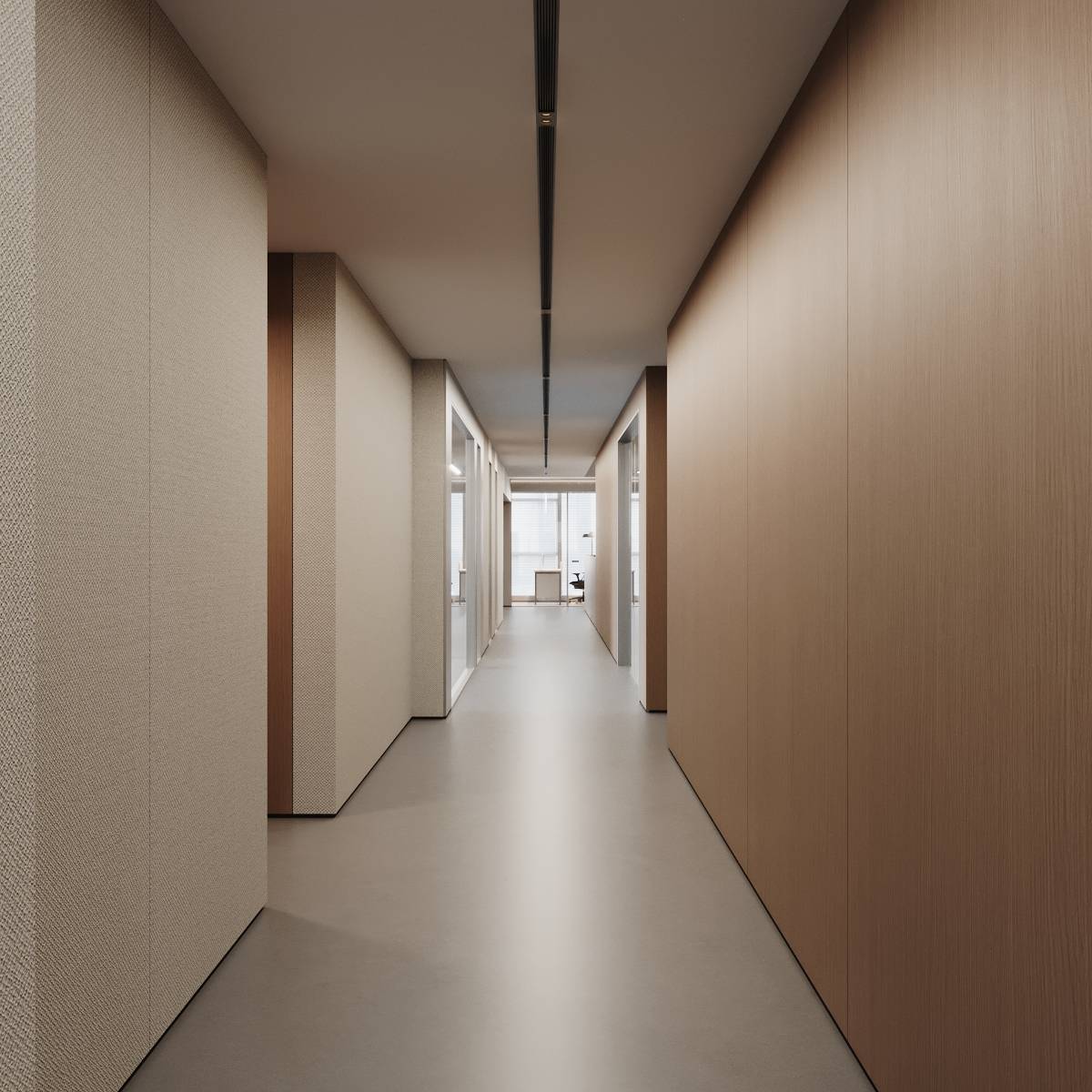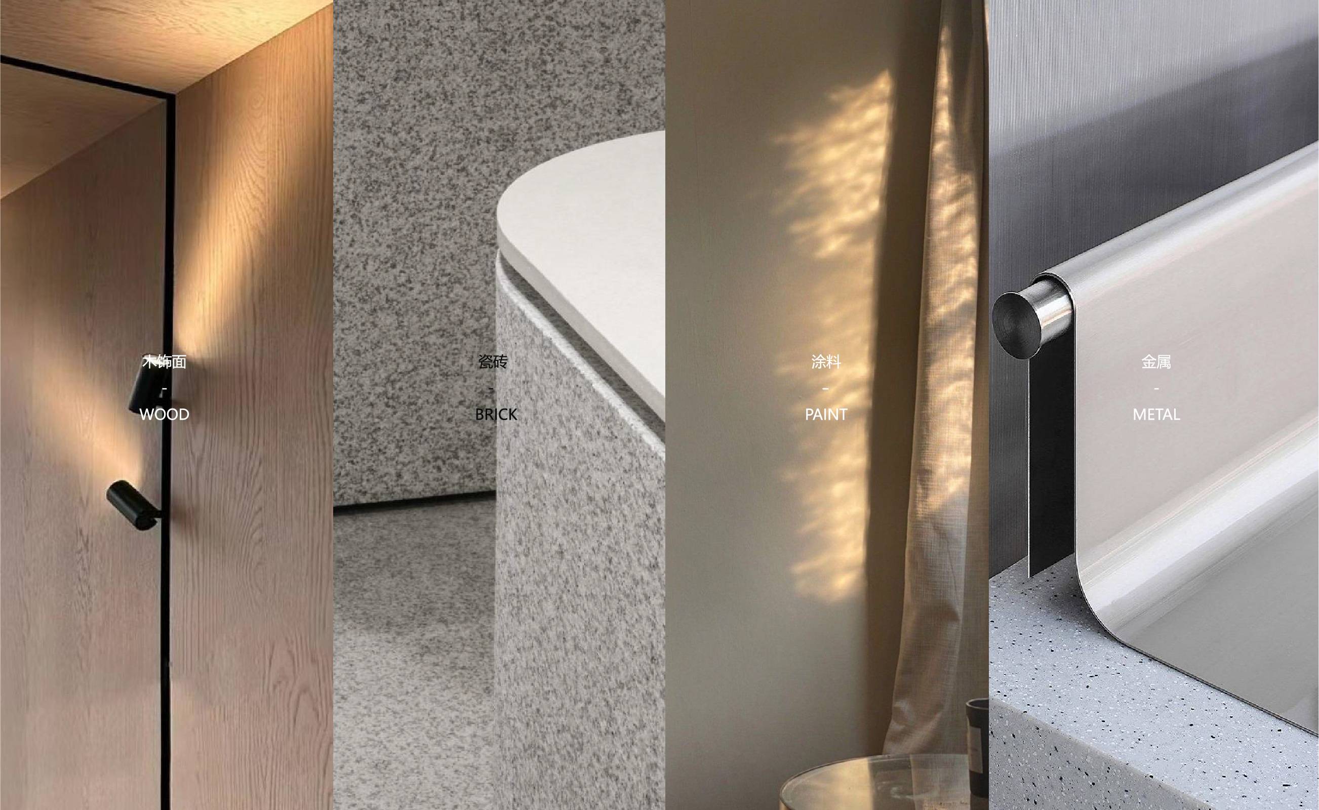 温润的木质元素贯穿始终,传递出舒适、自然的感受。利落的金属以精致的质感勾勒出空间的轮廓,强化了现代办公环境的时尚气息。此外,艺术漆与玻璃等材质的运用,丰富了整体的肌理层次,共同营造出一个简约、协调且富有质感的专业空间。