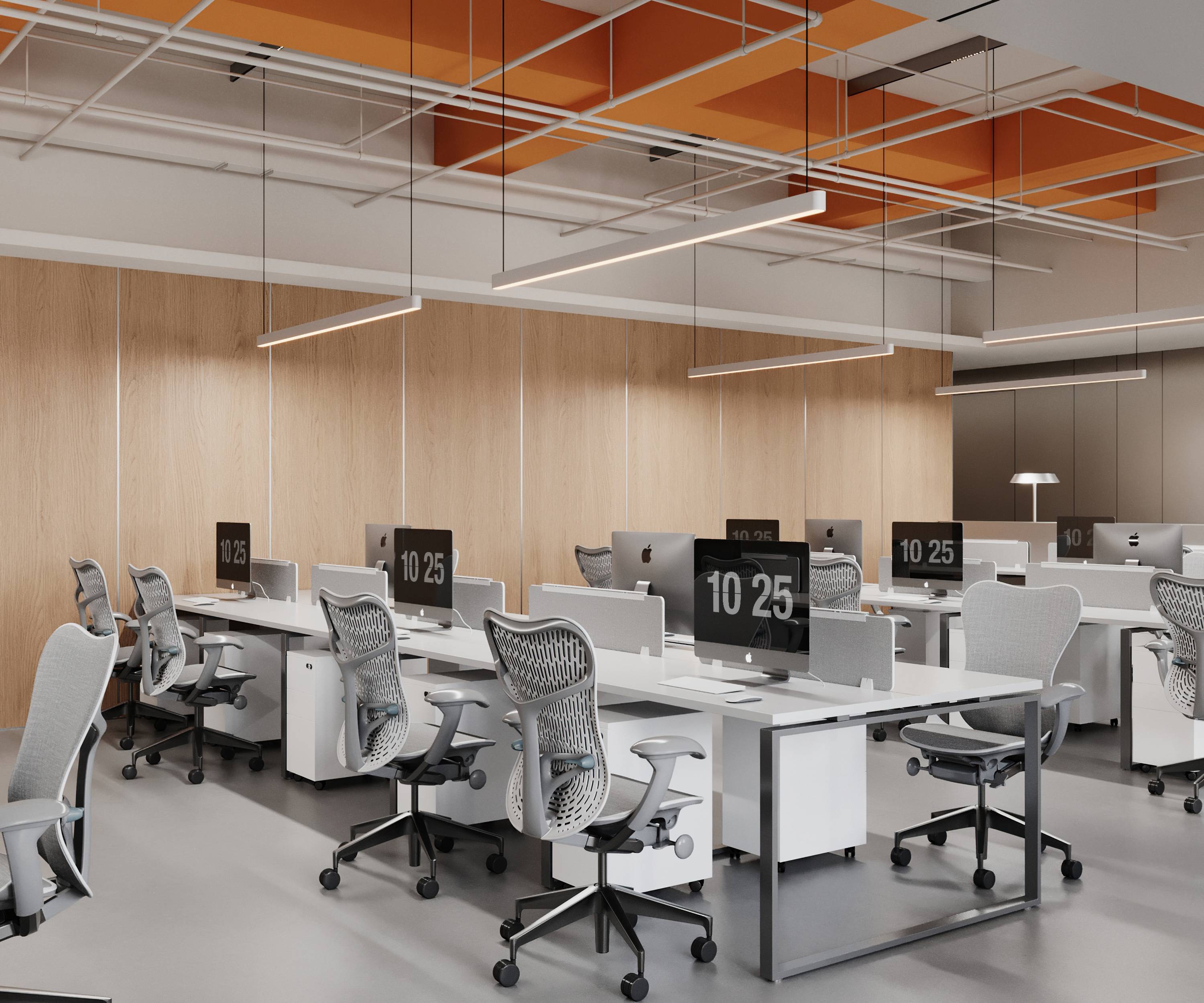 技术部办公室以功能性为首要原则,在保证专业高效的同时,通过材质的搭配营造出专注而不乏温度的工作氛围。