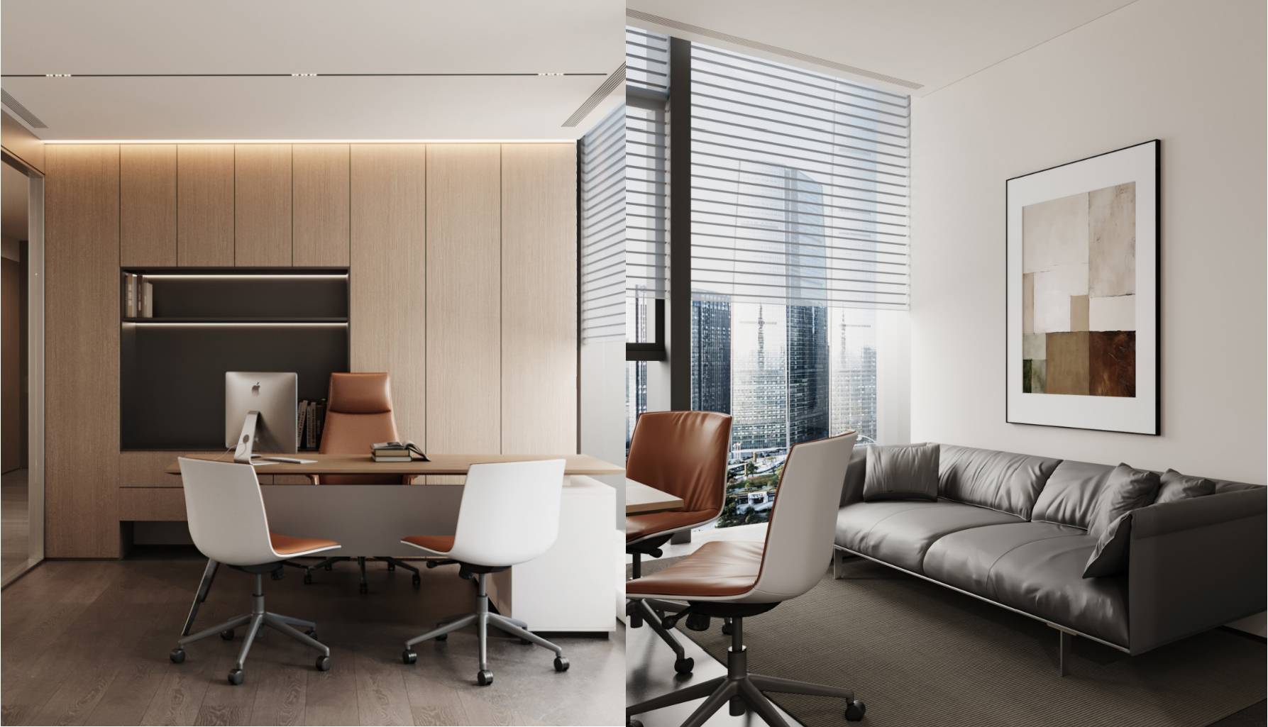 独立办公室作为管理者精神的延伸,每间办公室都拥有独特的性格。无论是通过沉稳的体块彰显力量,还是借助灵活的布局营造亲和力,都在统一的现代设计语言下,演绎着各自不同的节奏,实现了私密性、舒适度与个人品味的平衡。