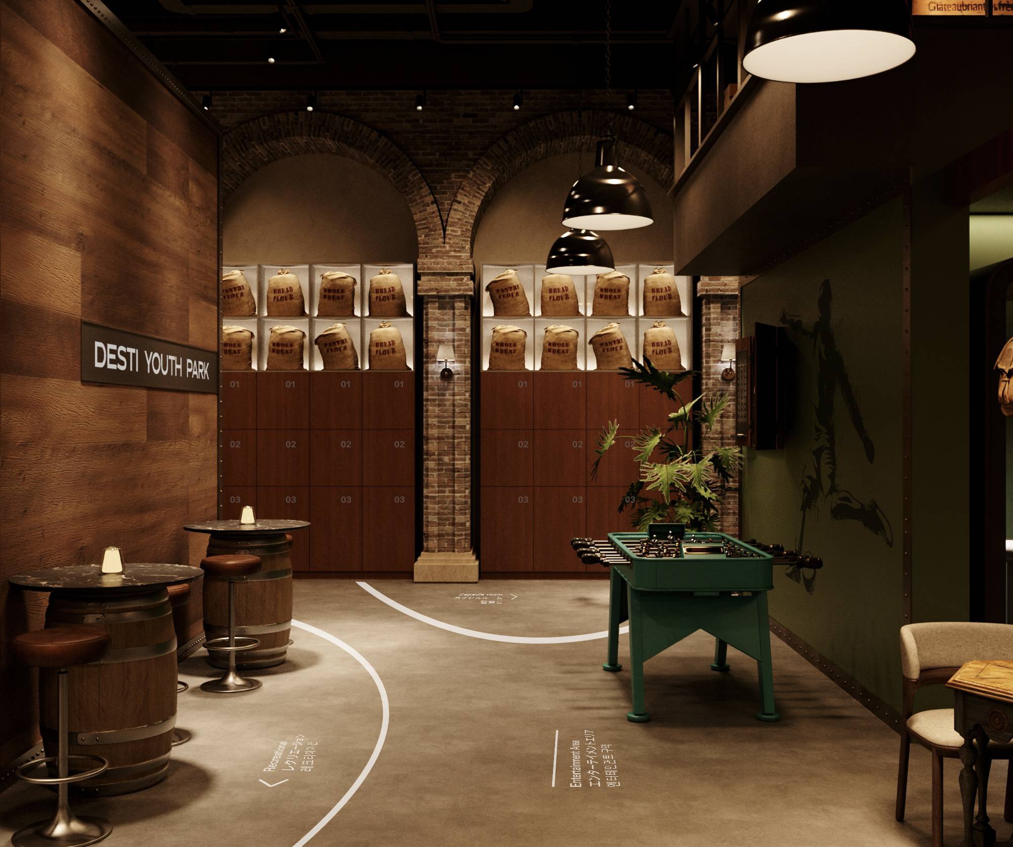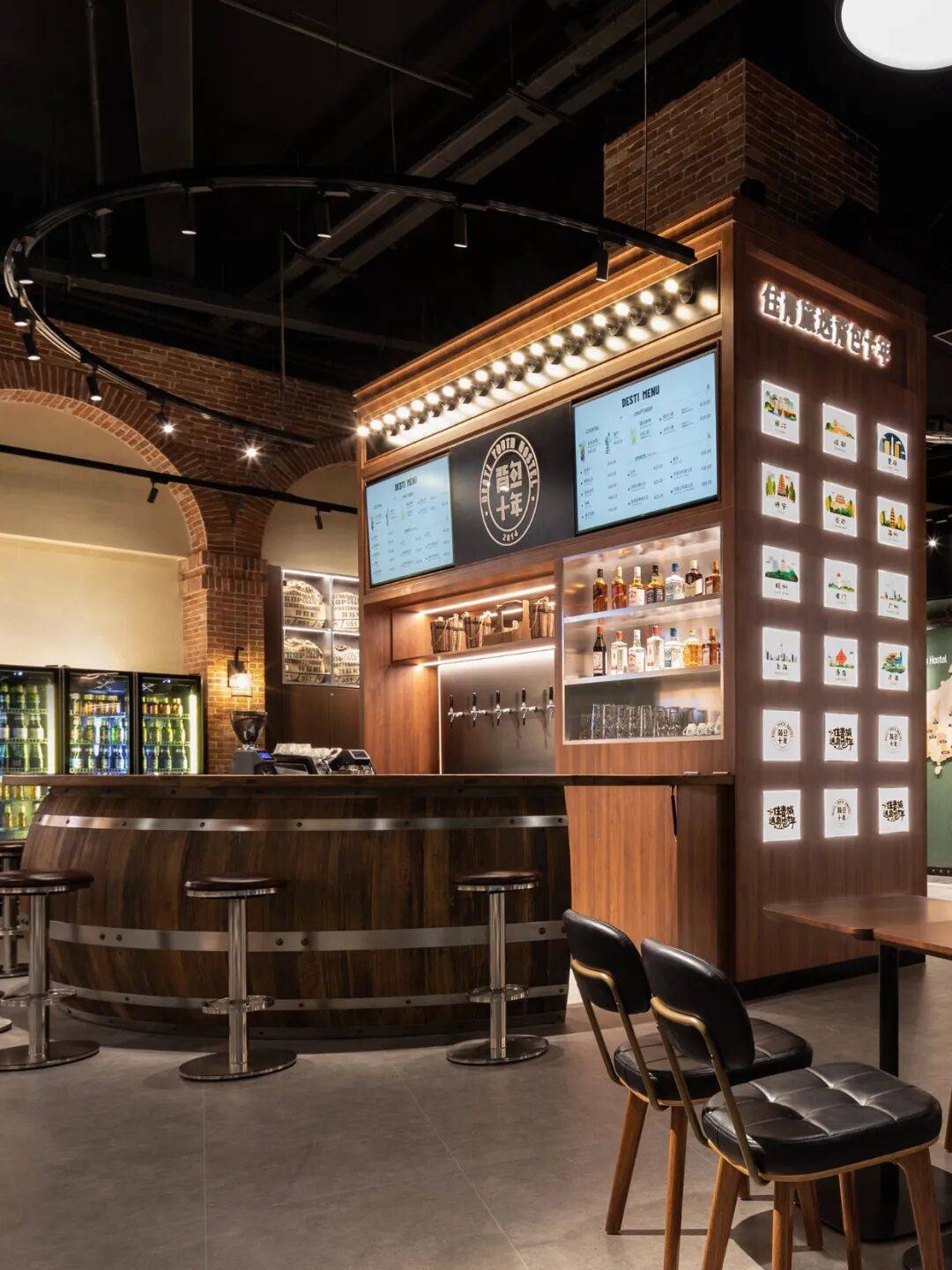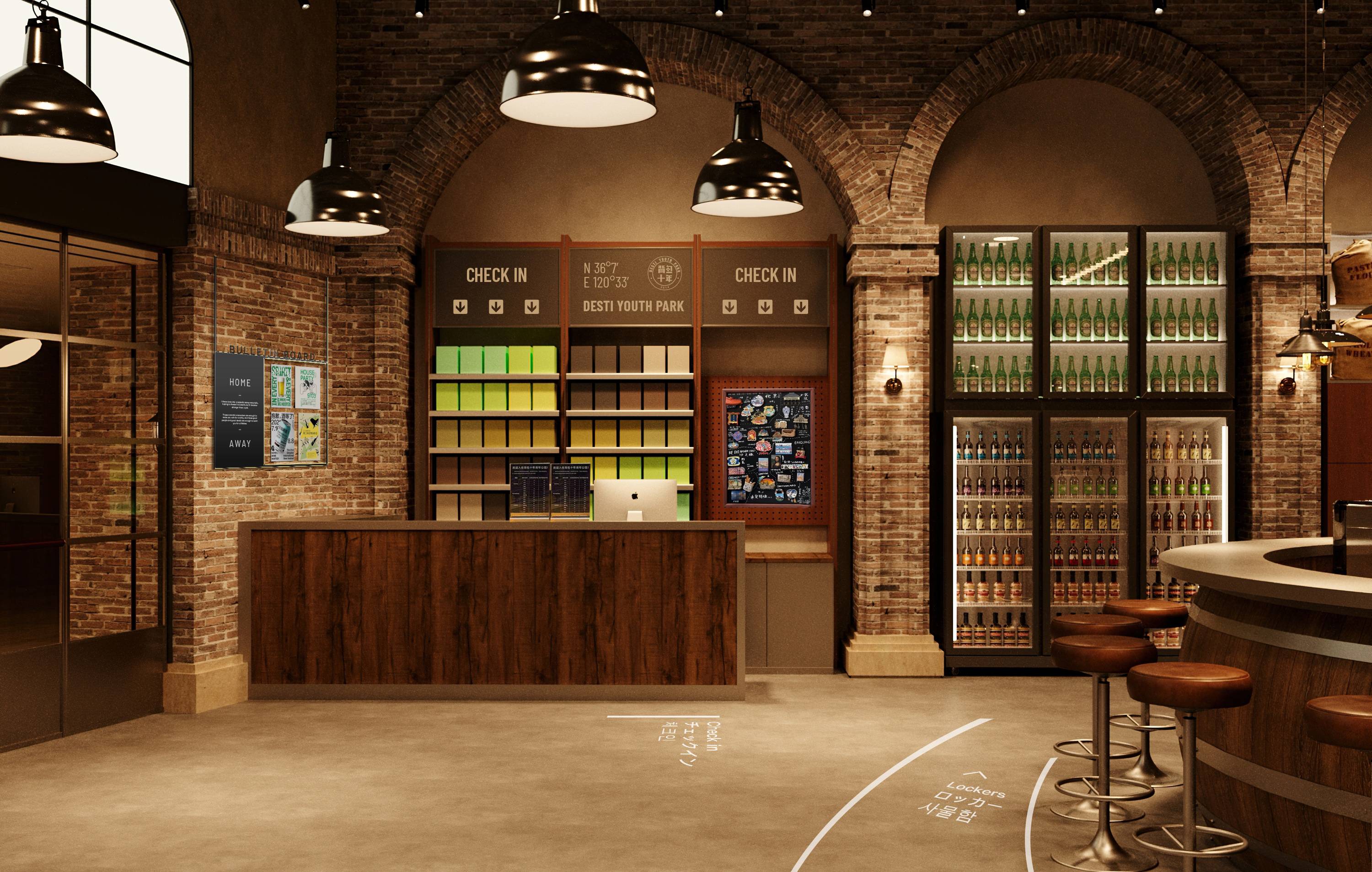 在背包十年青岛店的设计中,我们深入城市的脉络,探寻空间与文化的共鸣。设计的核心,在于超越符号化的表达,将青岛独有的历史人文、啤酒文化与青年旅舍的社交基因进行深度发酵,最终打造一座可感、可饮、可沉浸的复古时髦酒厂。