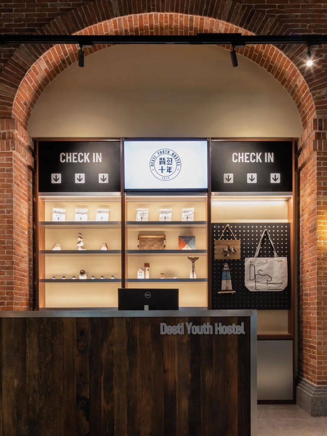 红砖的工业叙事从入口便徐徐展开。裸露着的粗犷砖墙带着历史的厚重与温度。前台区域以红砖砌筑的拱形结构,延续本地老建筑的记忆,与温润的木饰面台体相映,构成一个具有仪式感的抵达空间。