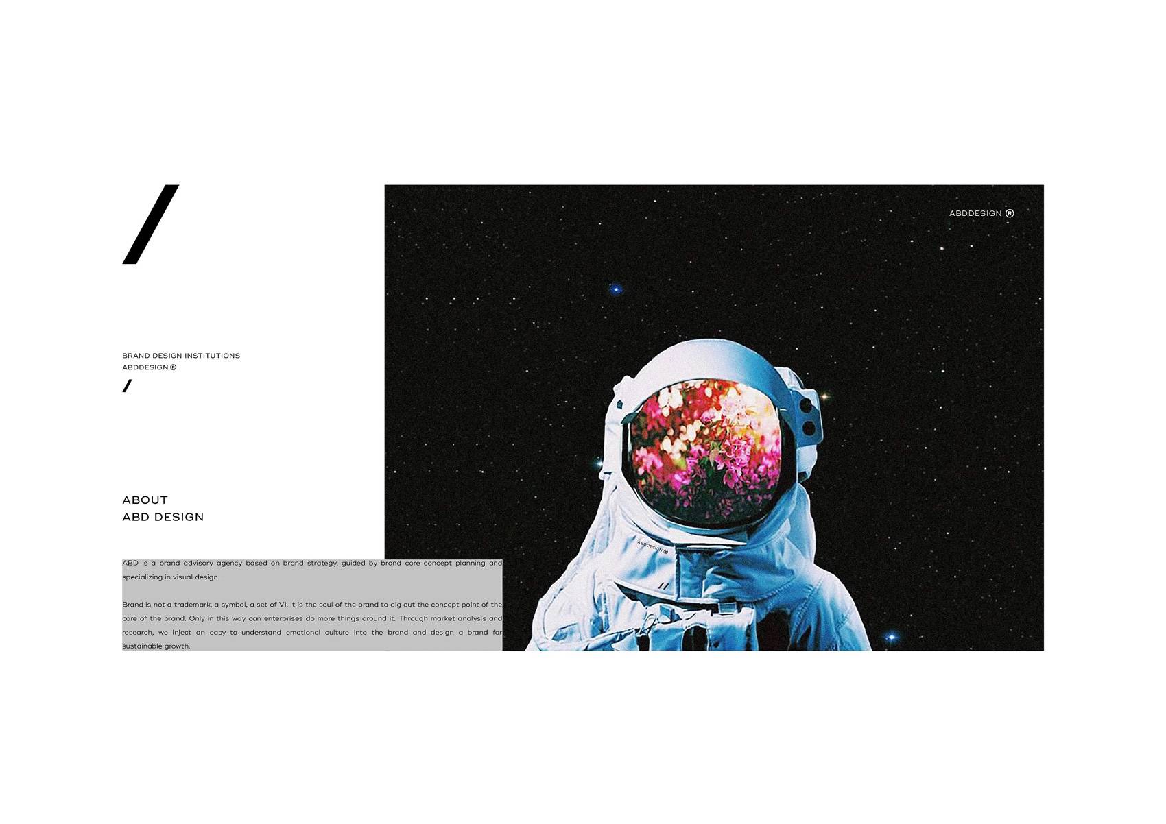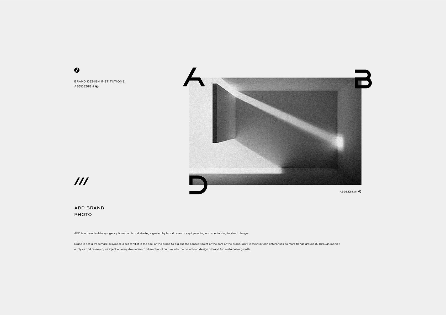 ABD全新形象的符号的核心符号取自文字符号“/”,代表着ABD在为客户服务时,扮演的多重身份,从策略营销到视觉传达,再到空间形象设计等等。极简的符号才是最有力量的,越是简单,则越有力量。