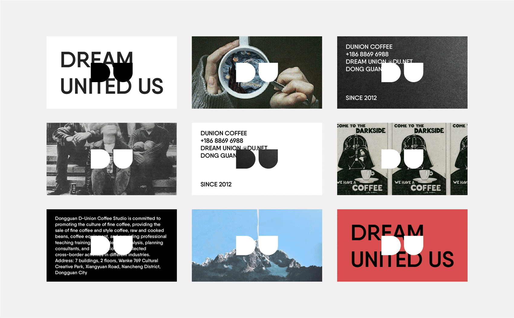 为了呈现品牌多变、跨界、有趣、好玩的品牌精神,我们希望塑造一个超级记忆符号,基础符号巧妙的嫁接了品类原型-“咖啡豆造型”,中间的竖线寓意着DU的品牌文化愿景,把自身热爱专注咖啡的精神,分享给生活的每一处。持续且统一的对外输出我们的记忆符号,从而积累自身品牌的视觉资产。