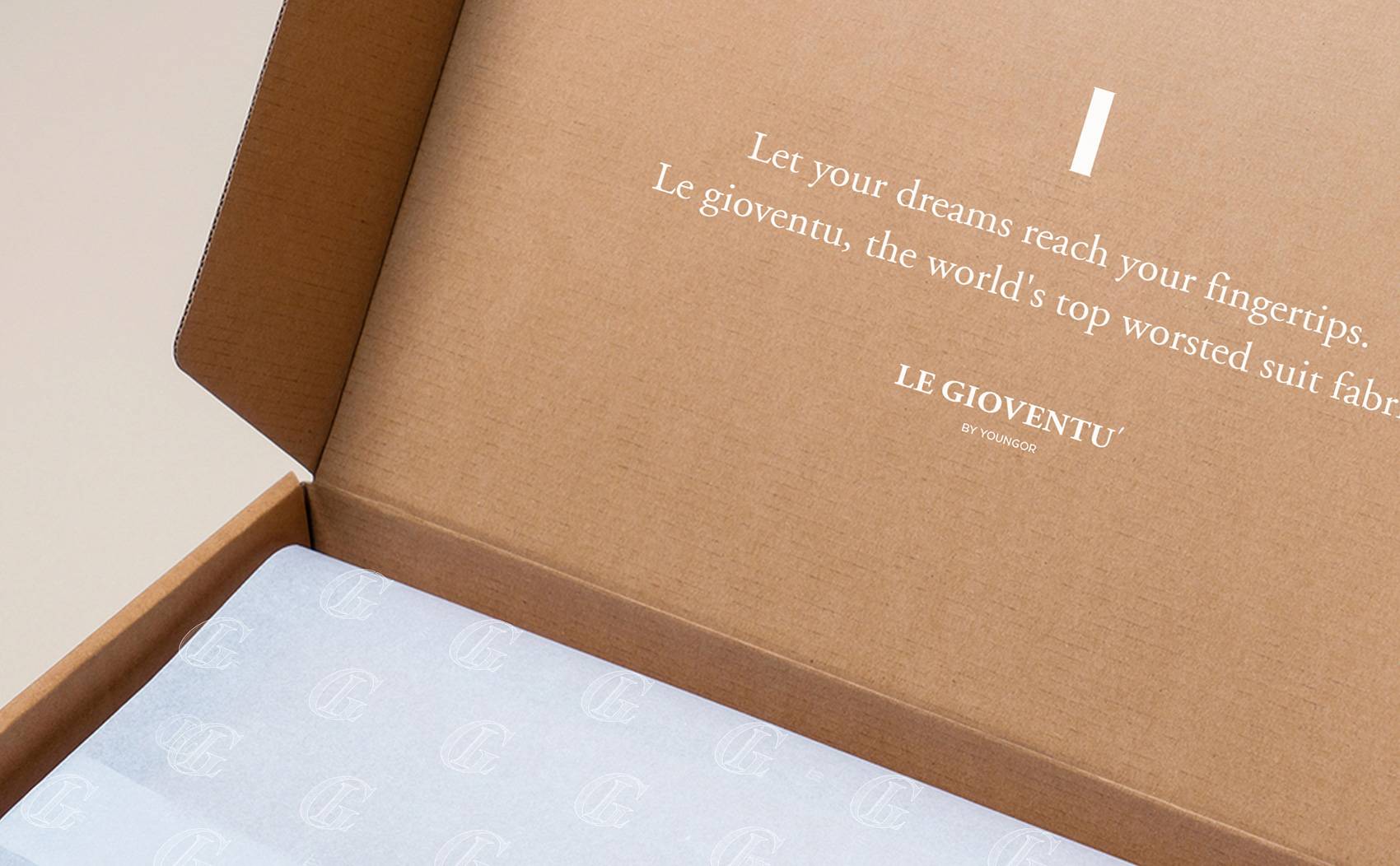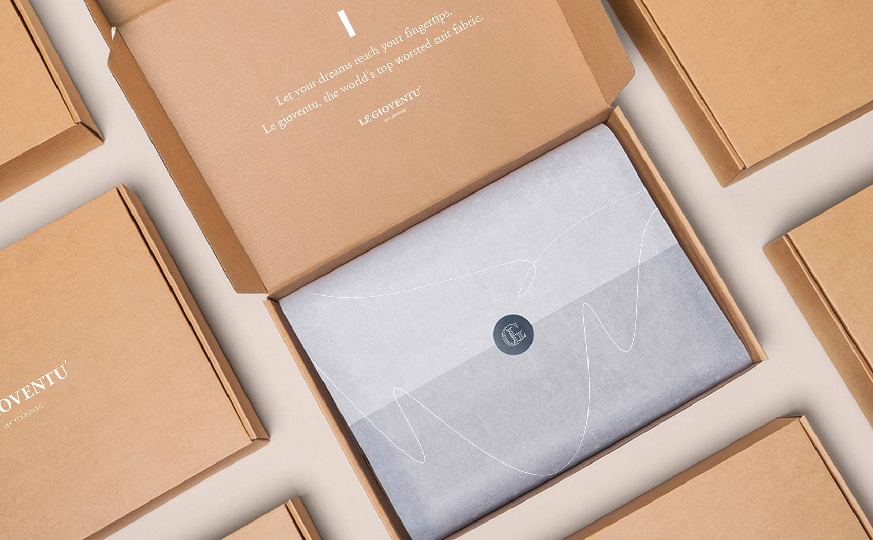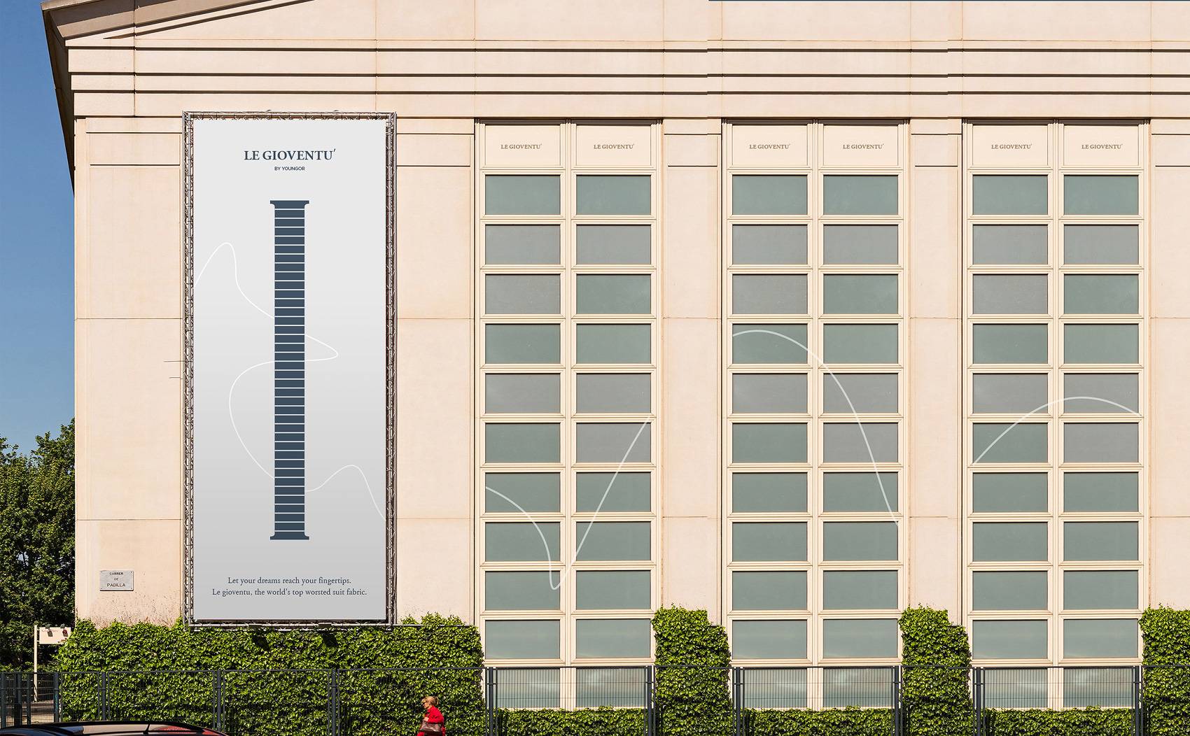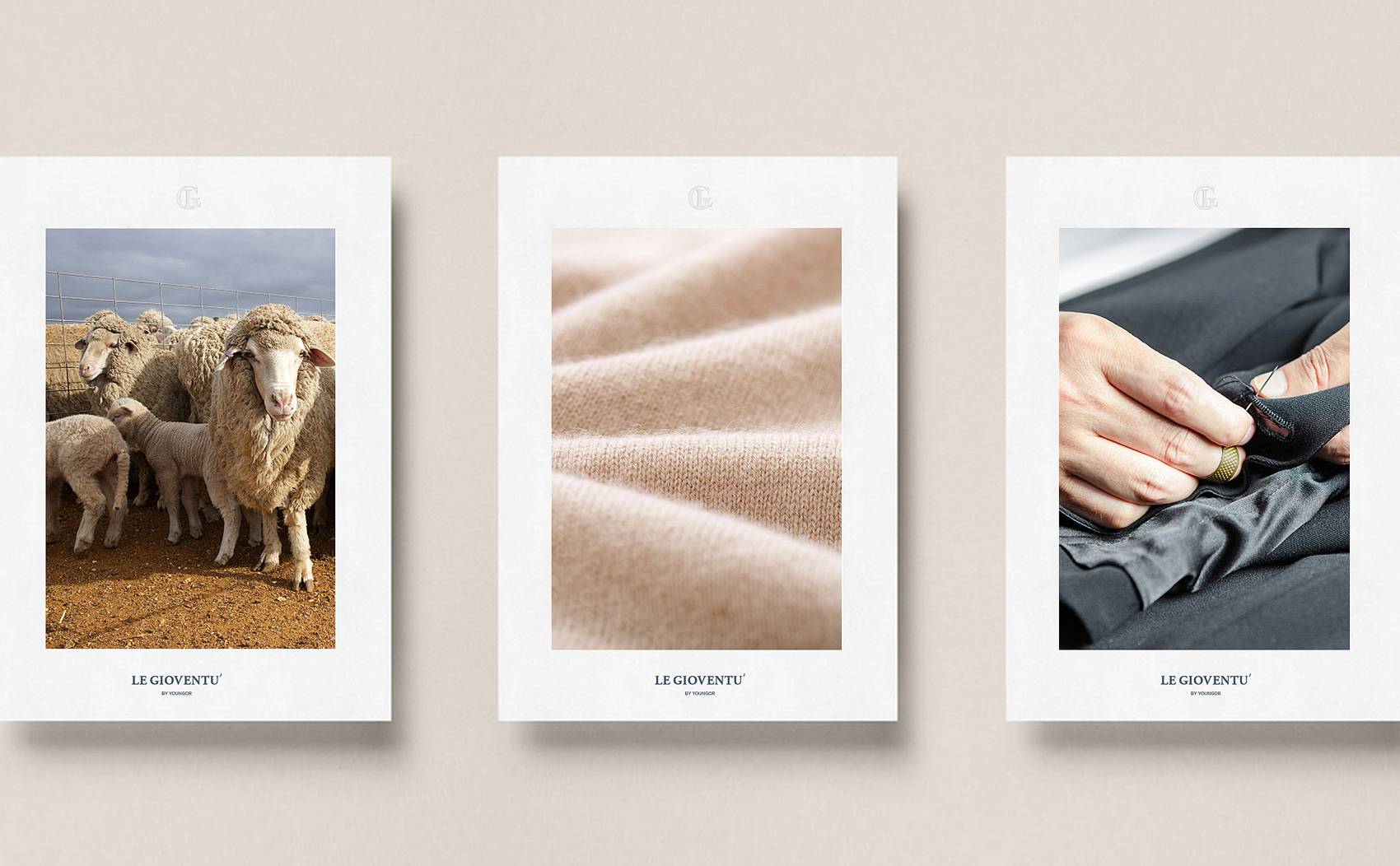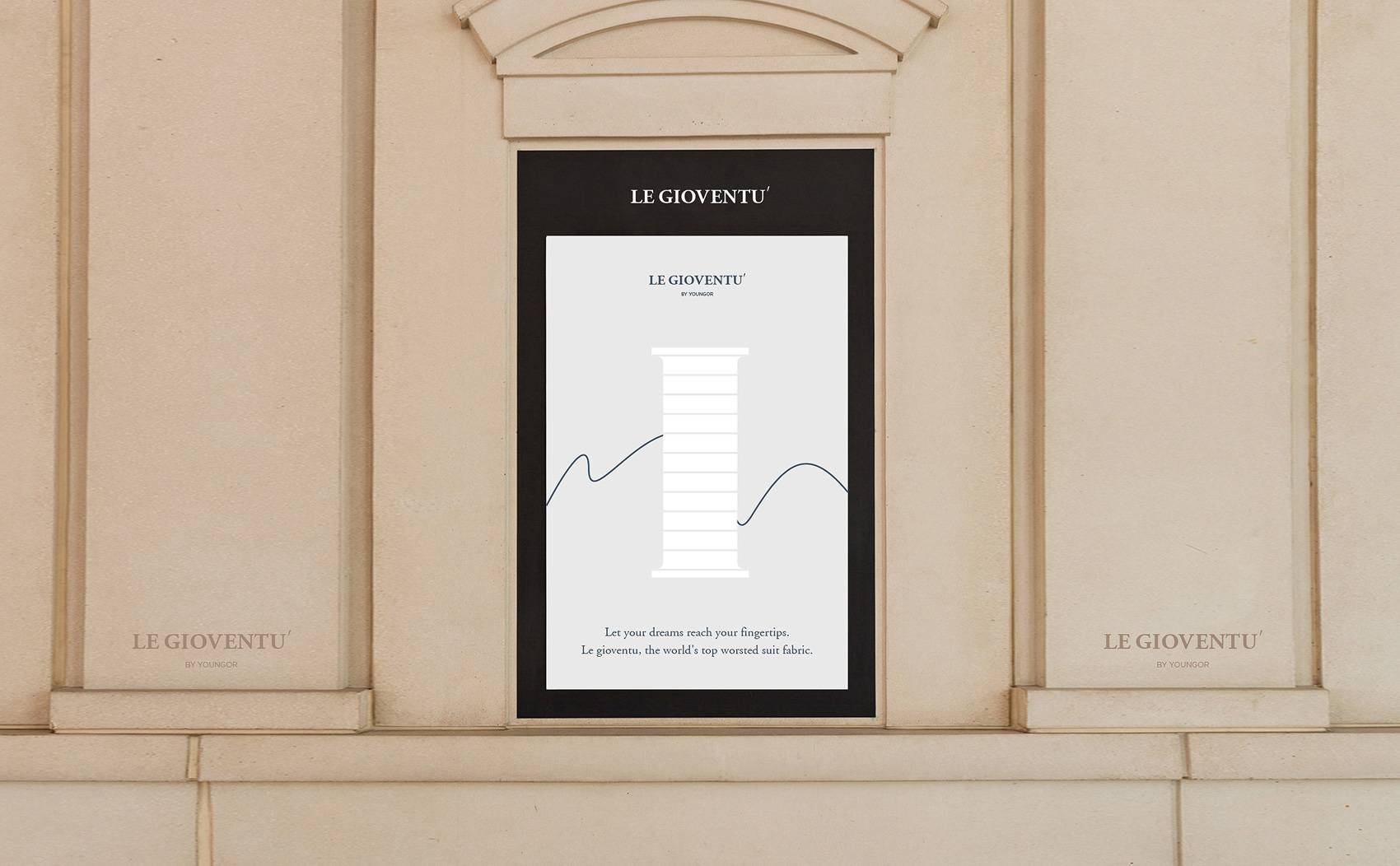 不断变化的纱线,代表着LE GIOVENTU'对面料工艺品质的探索与追求。纱线穿越不同的载体,贯穿整个视觉体系,持续的表达品牌的品类感,并塑造雅戈尔毛纺独特的品牌气质。