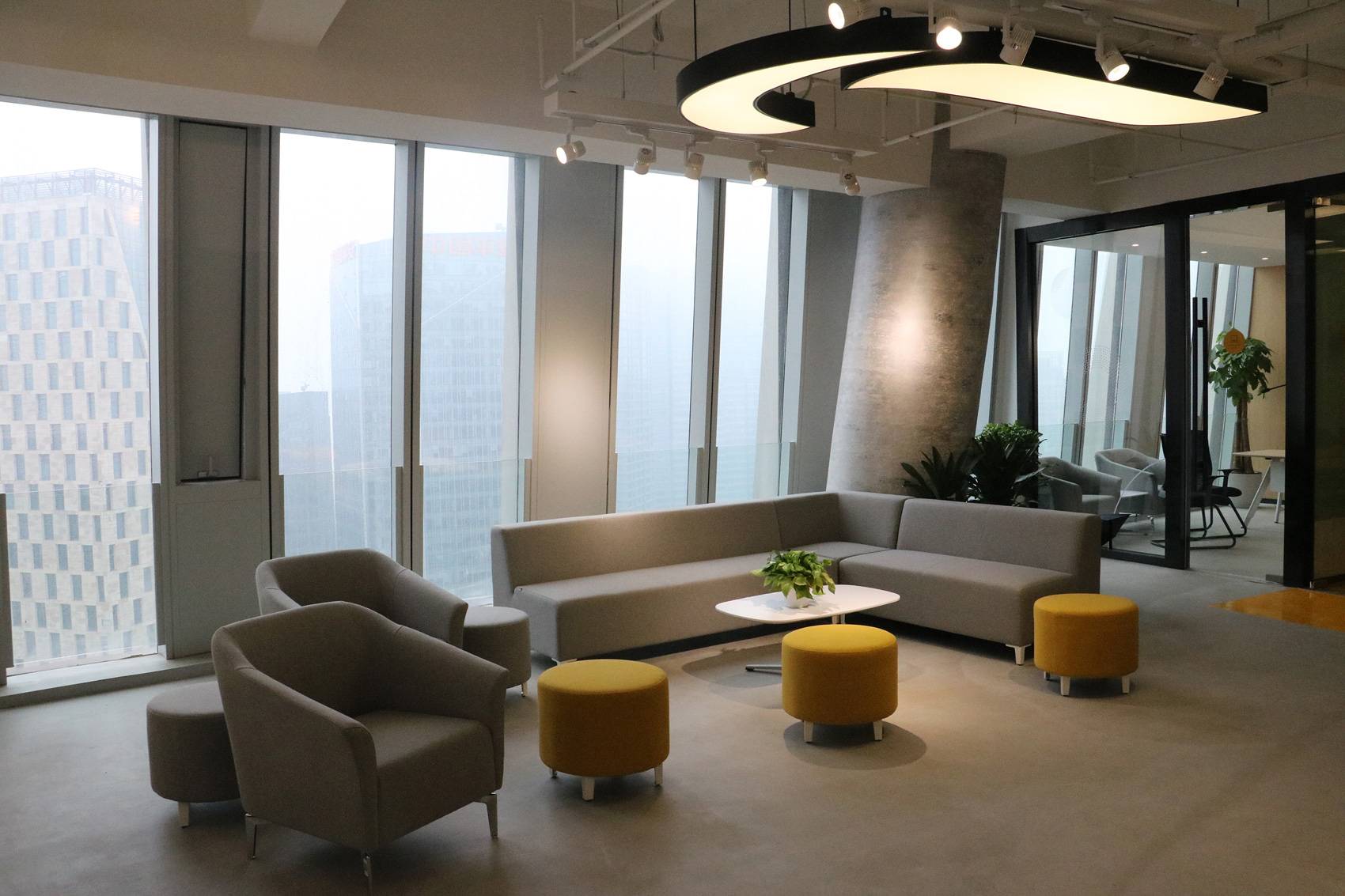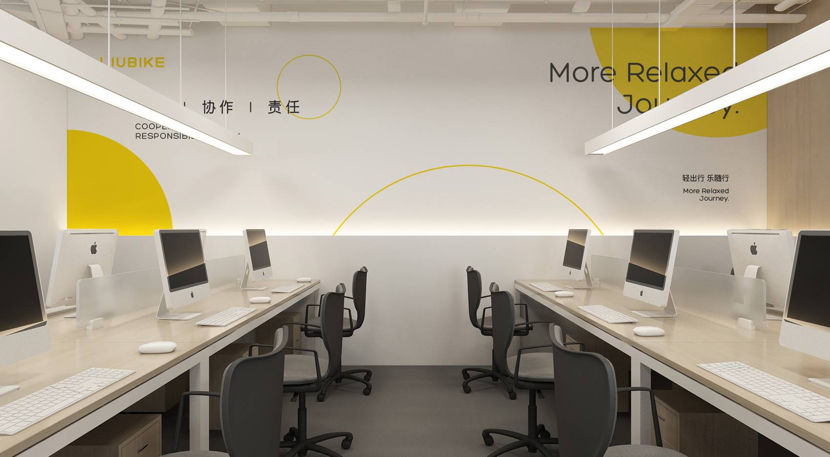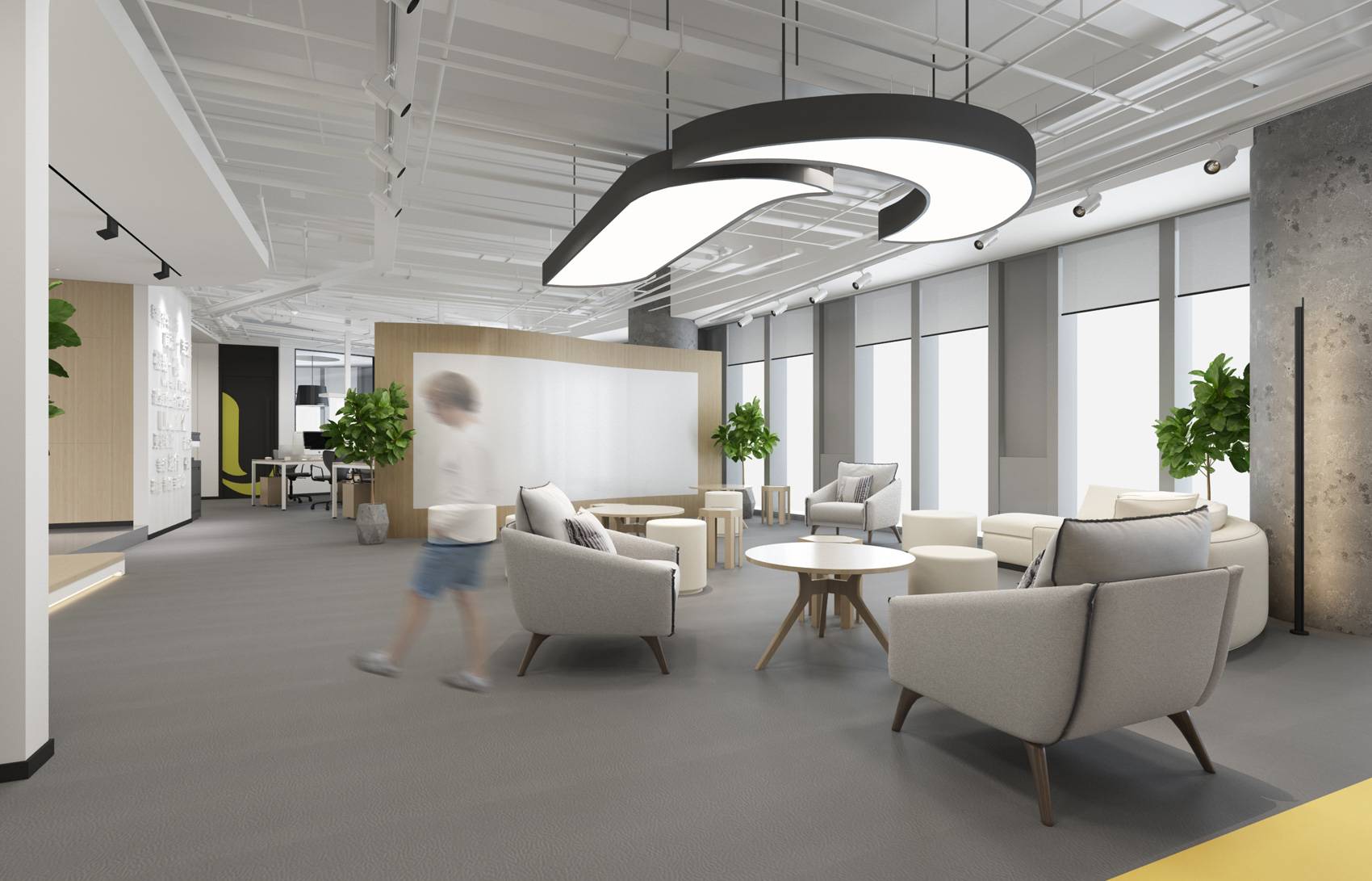大面积使用黄色和灰色的地面,使原本冷色调的空间传达出一种亲切感,开放式的办公空间显得更加明亮舒适,再配以绿植的点缀使得办公环境更加轻松,打破传统技术部门的压抑感,更显人性化模式。