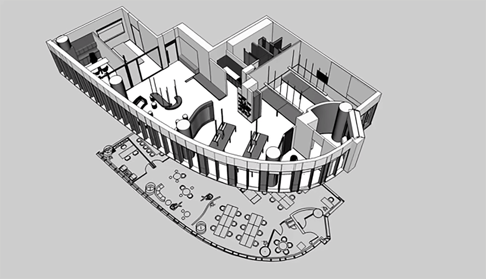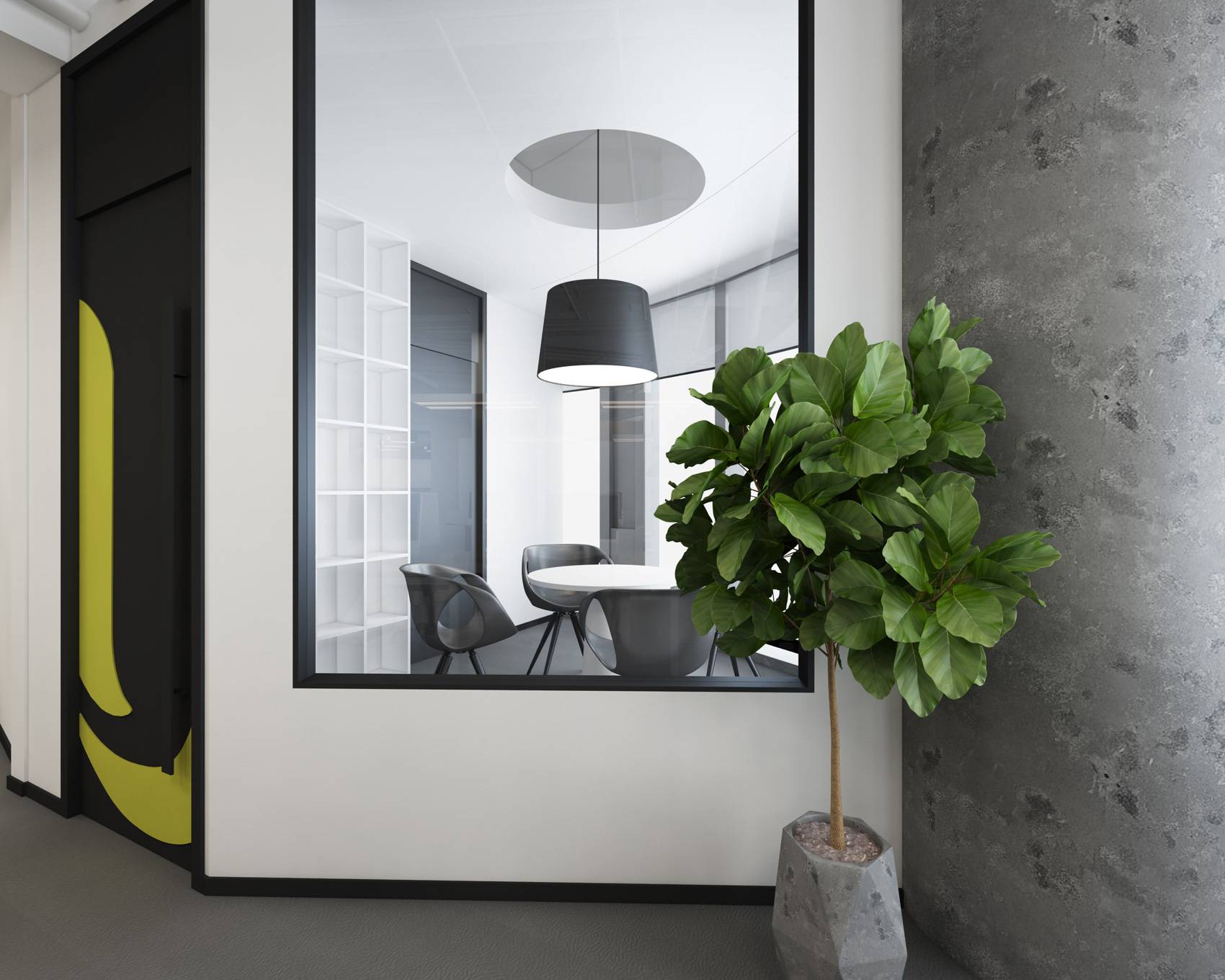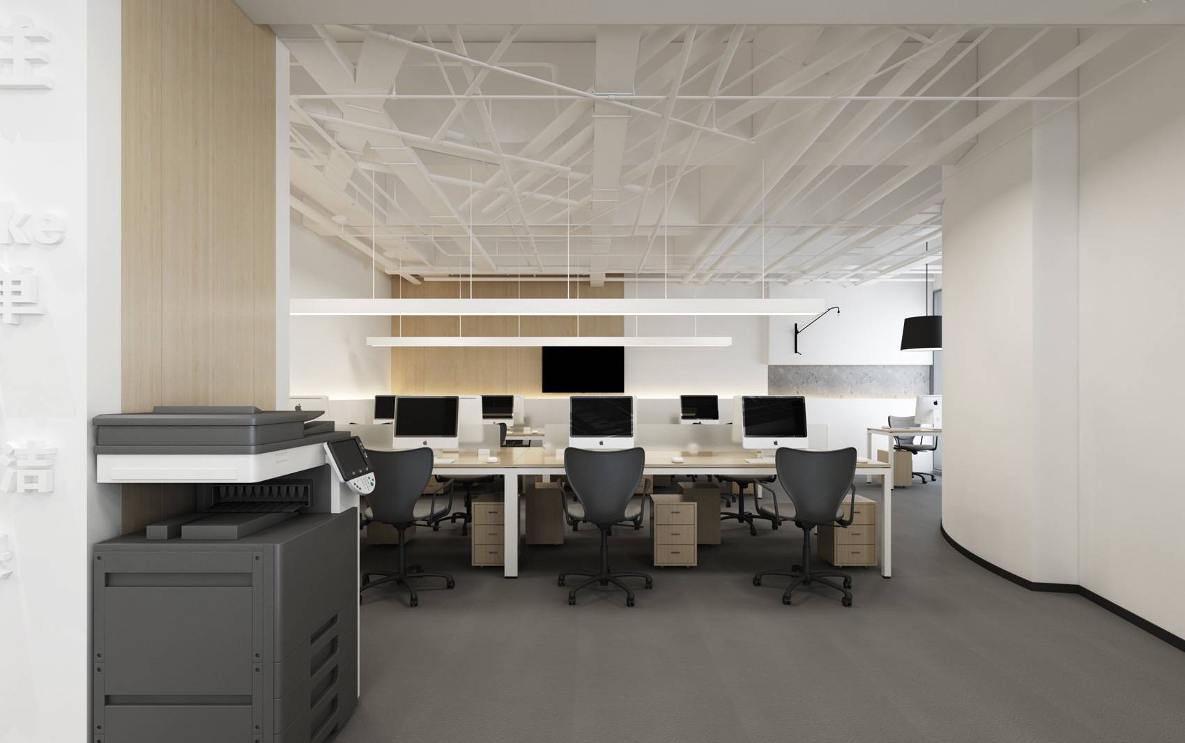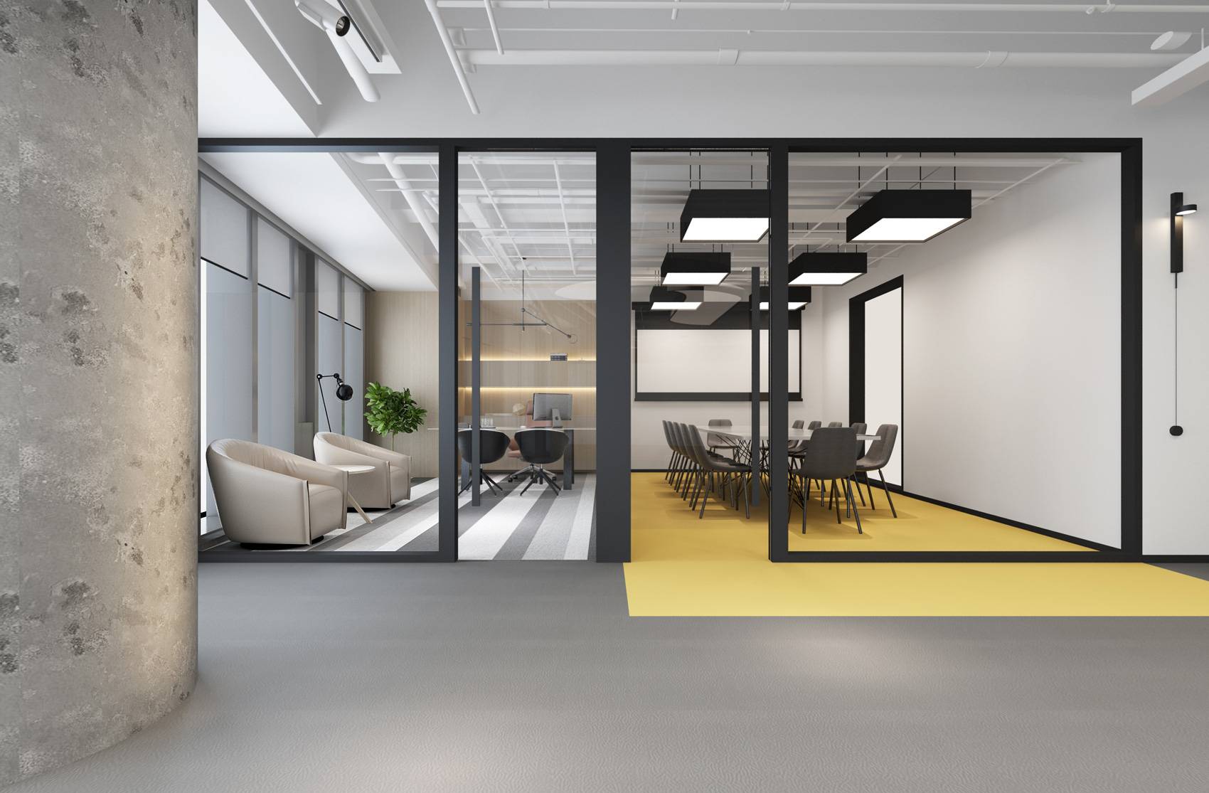 大面积使用黄色和灰色的地面,使原本冷色调的空间传达出一种亲切感,开放式的办公空间显得更加明亮舒适,再配以绿植的点缀使得办公环境更加轻松,打破传统技术部门的压抑感,更显人性化模式。
