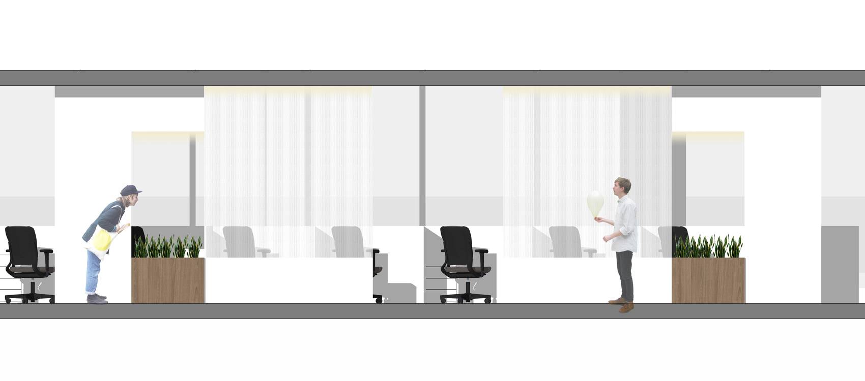 员工办公区域采用的是传统的格子间形式,却又不同于传统的格子间,“你的工位就在我的斜后方”/“你的工位就在我的斜对面”,在具有一定的个人私密性的同时,也使员工之间的交流更方便。