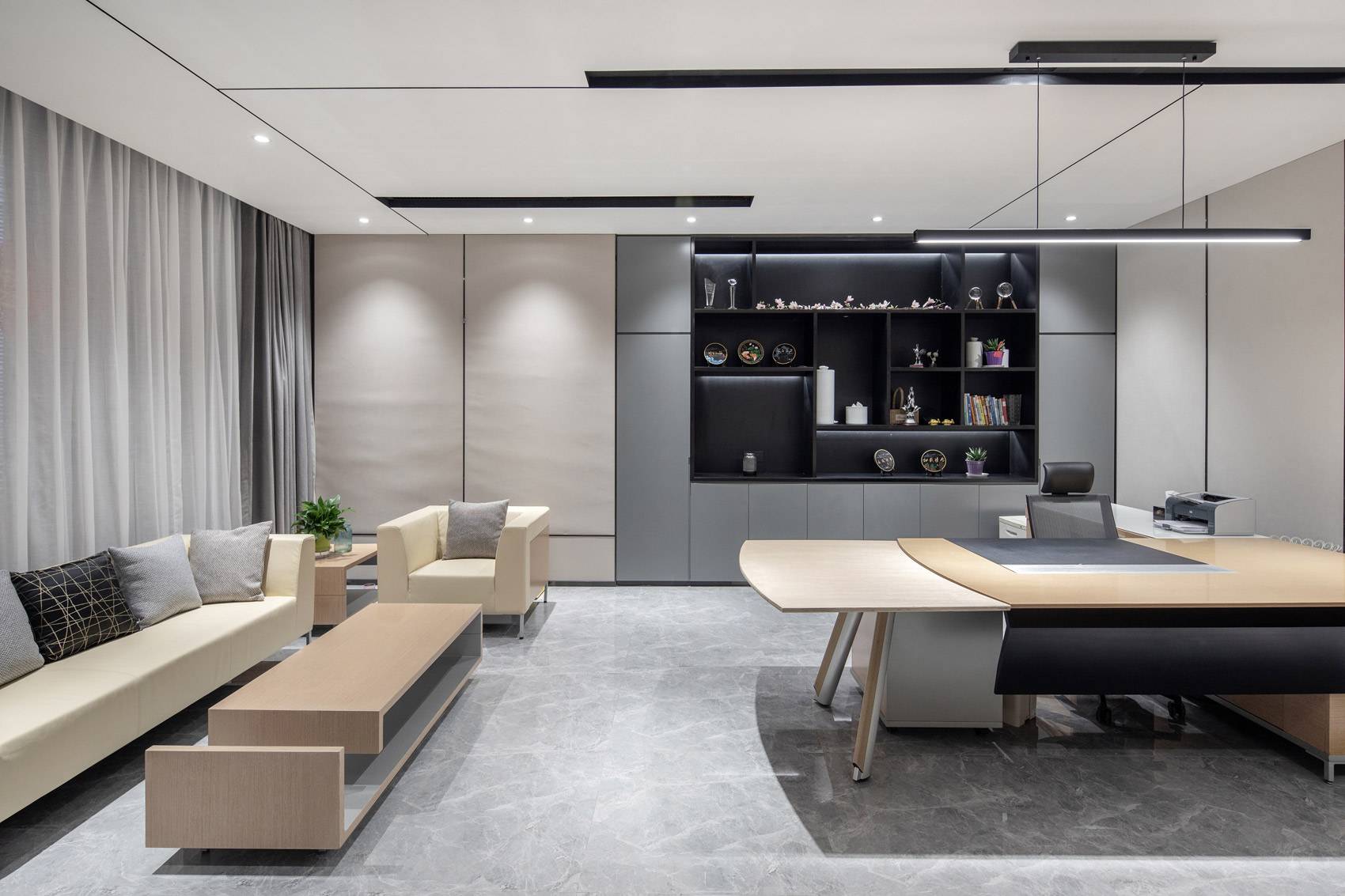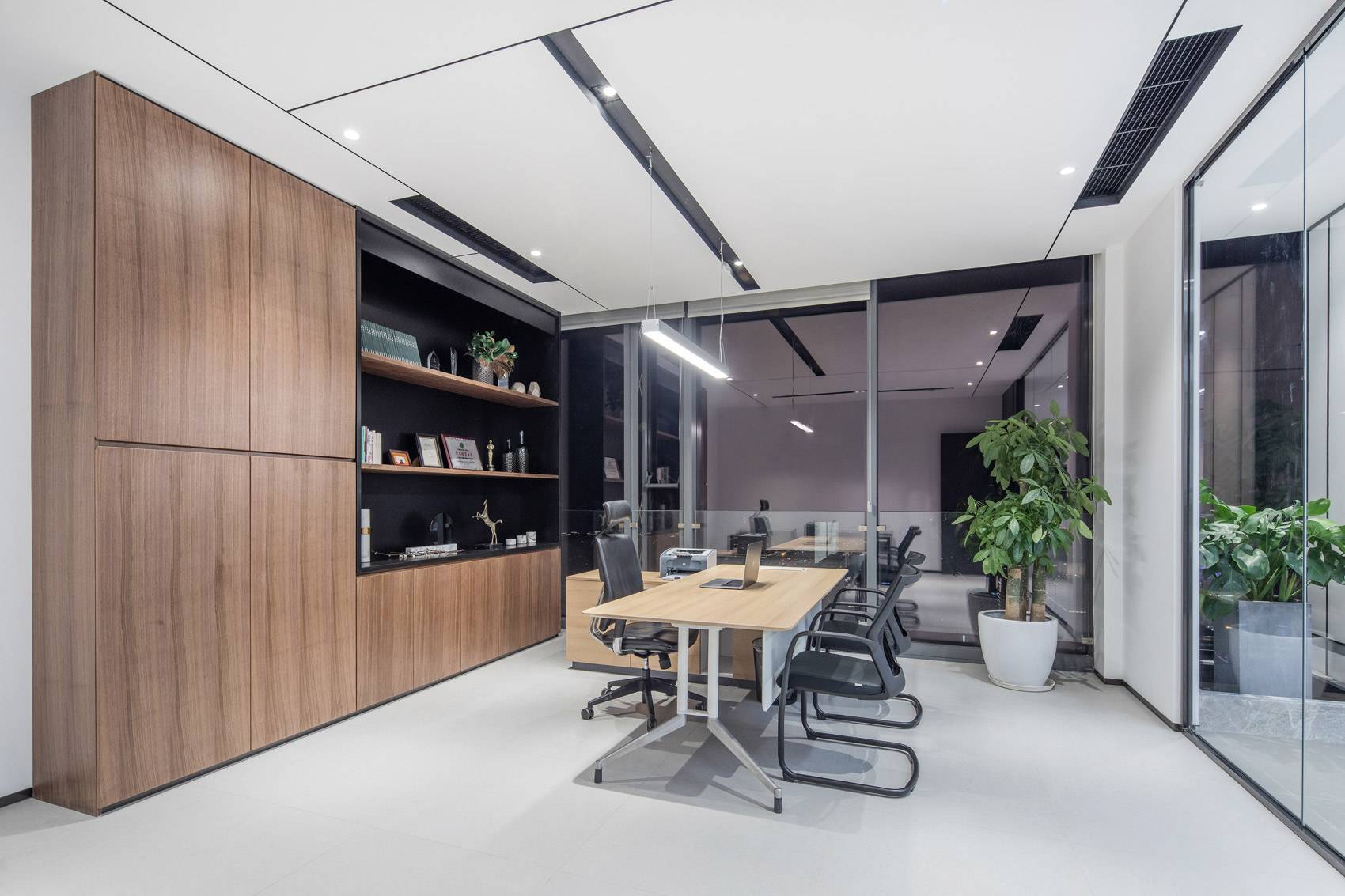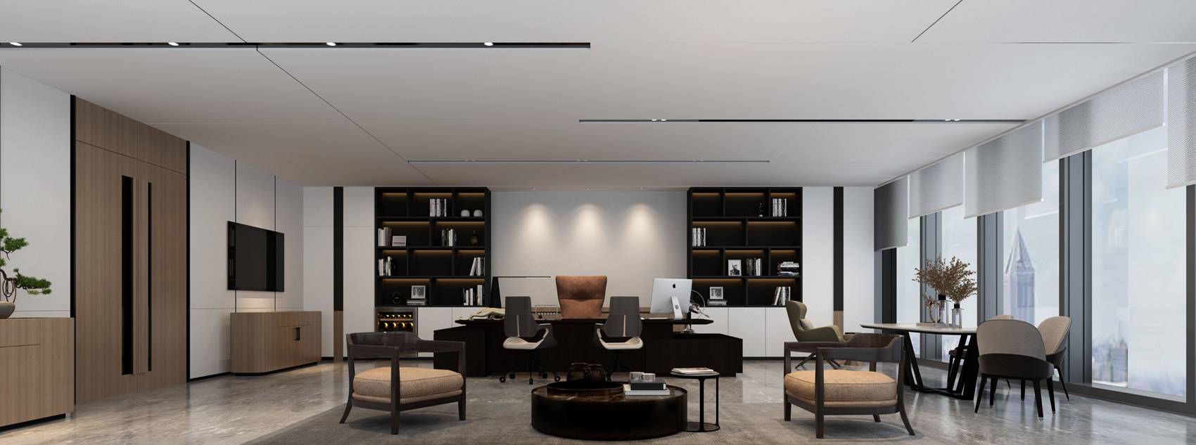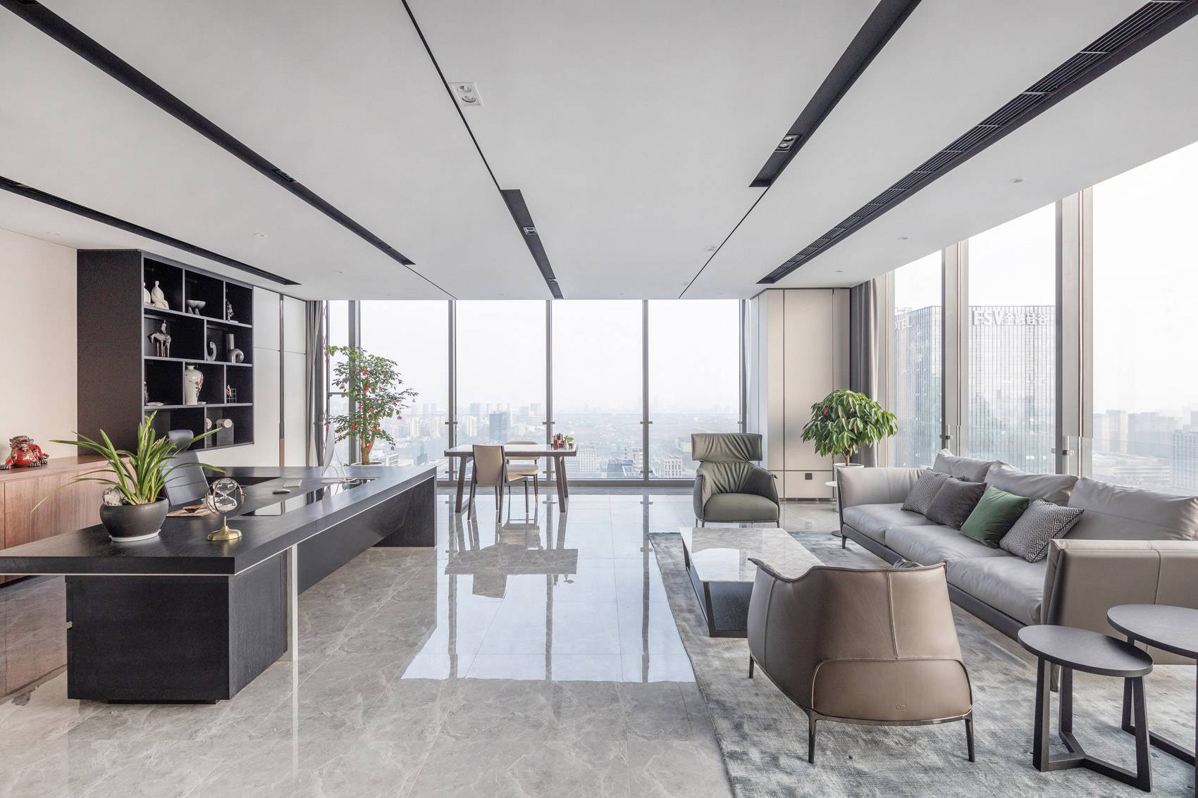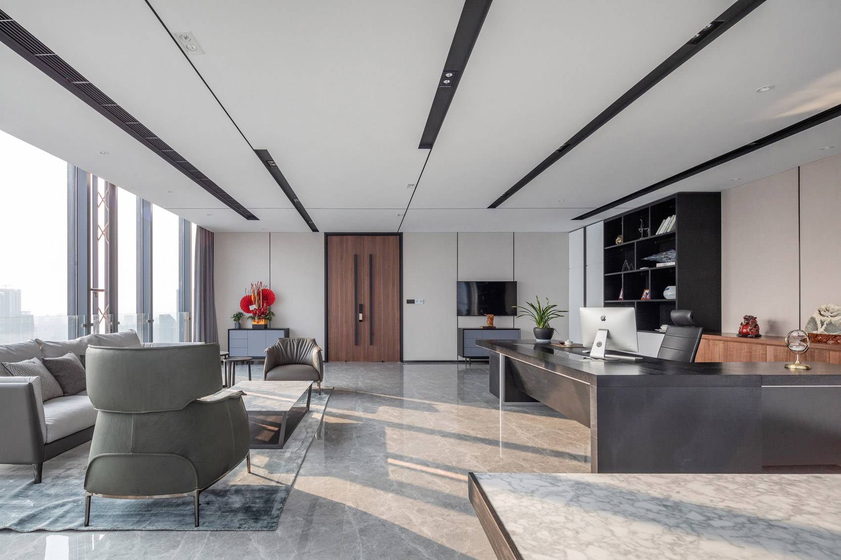 独立的领导办公室空阔雅致,落地窗很好的引进自然光线,使整个空间更加通透明亮。工作之余站在窗边,这座城市的景致尽收眼底,心境也会更佳开阔平静。