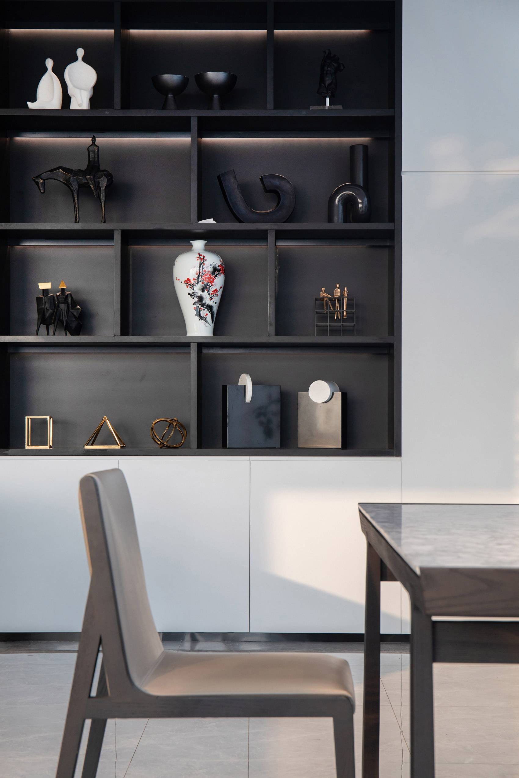 白色没有强烈的个性,是温和的,干净的,总是给人一种单纯安心的感觉,从某种意义上白色也可以解释空,提供了无限延展的可能性,黑白、虚实形成对比,浅色调的木色给人温暖舒适的感觉。