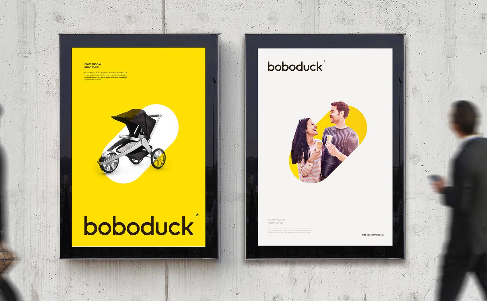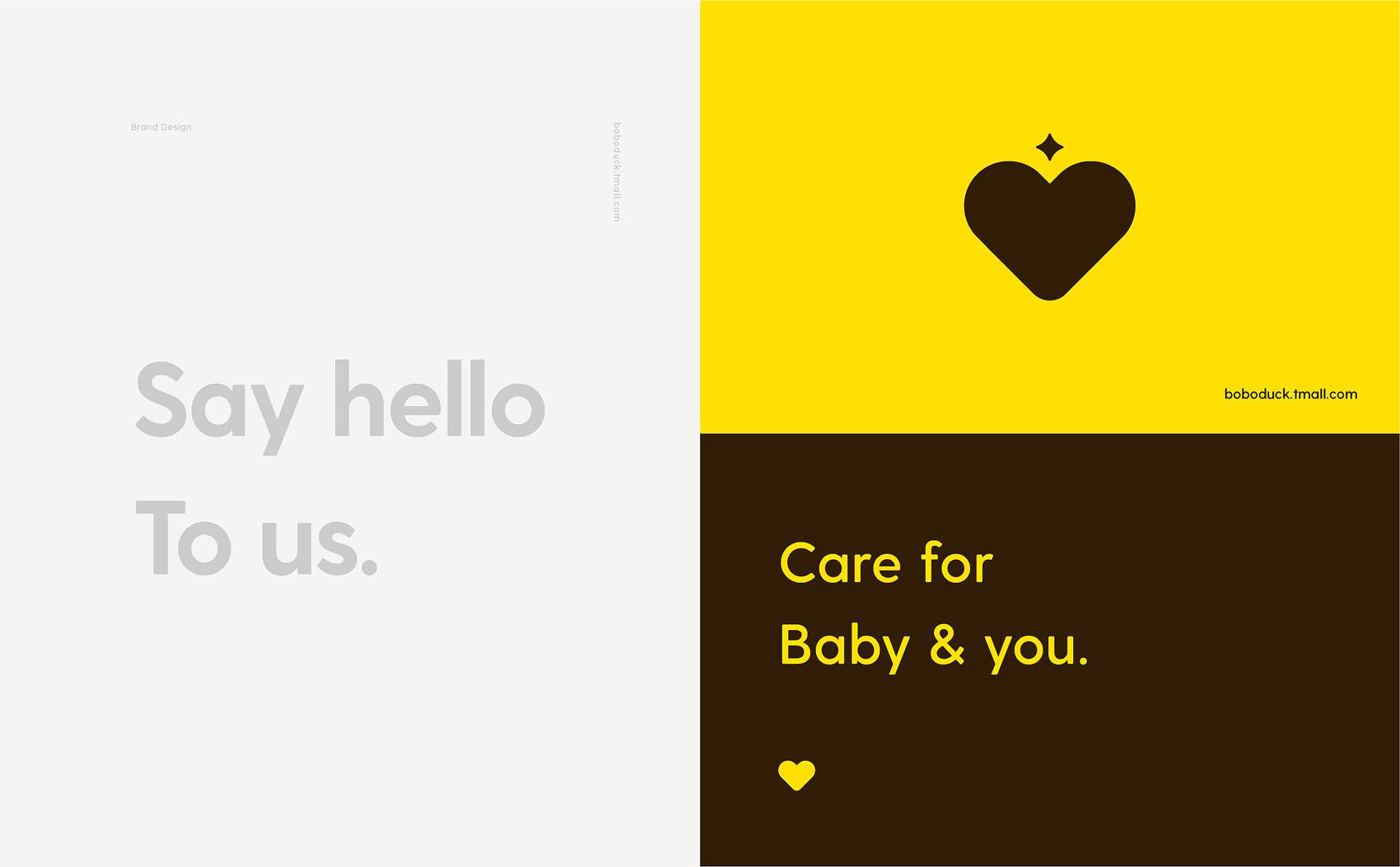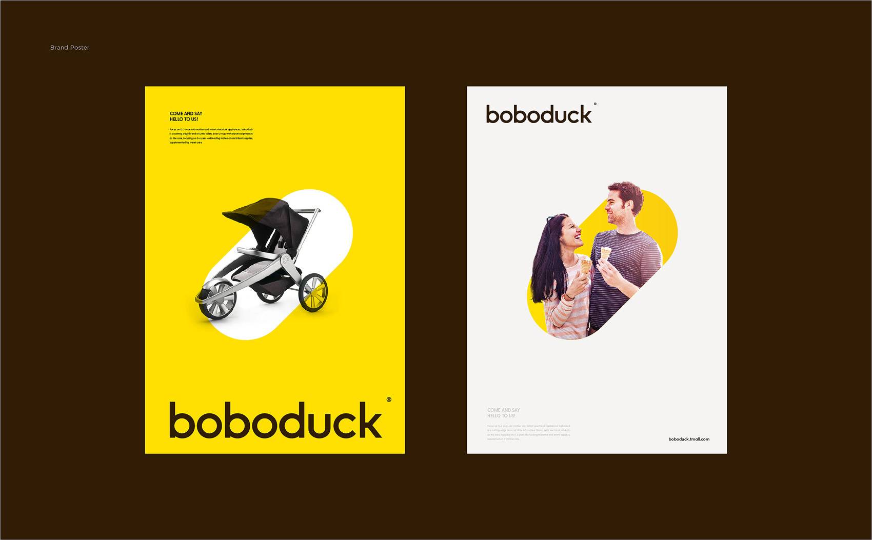以柠檬黄作为品牌的主色调,搭配深棕色,清新而又阳光的配色。凸显boboduck的品牌调性,传递有趣、轻松的品牌理念。字体为主的品牌标识更有品质感与现代感。