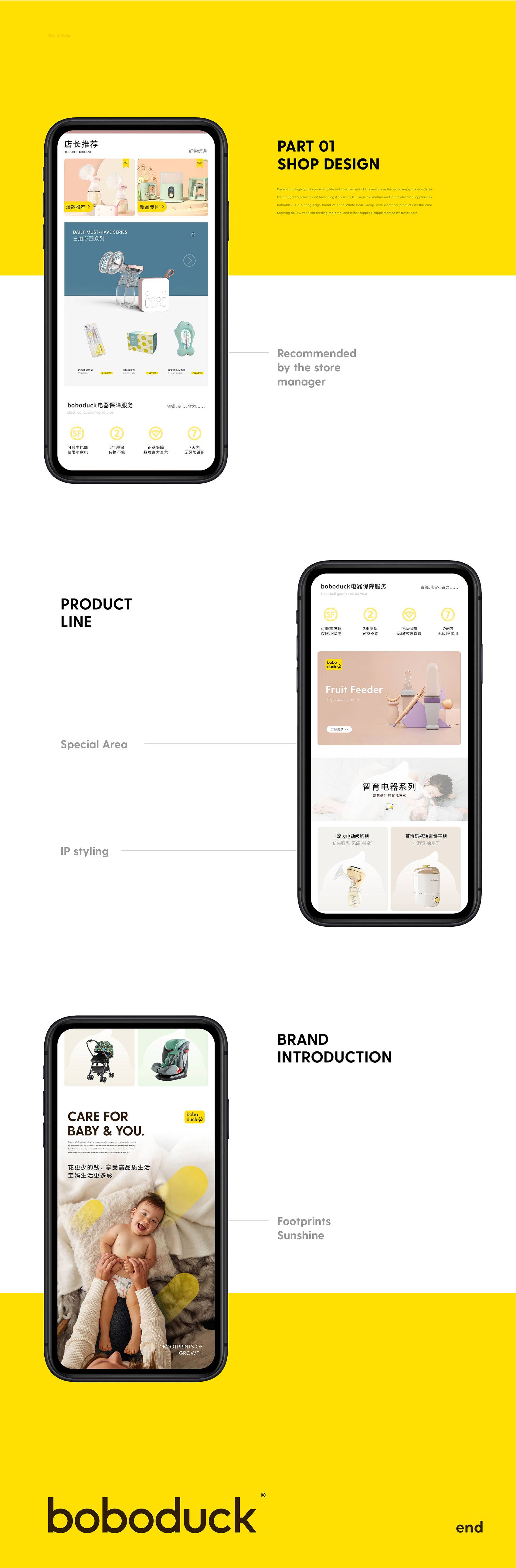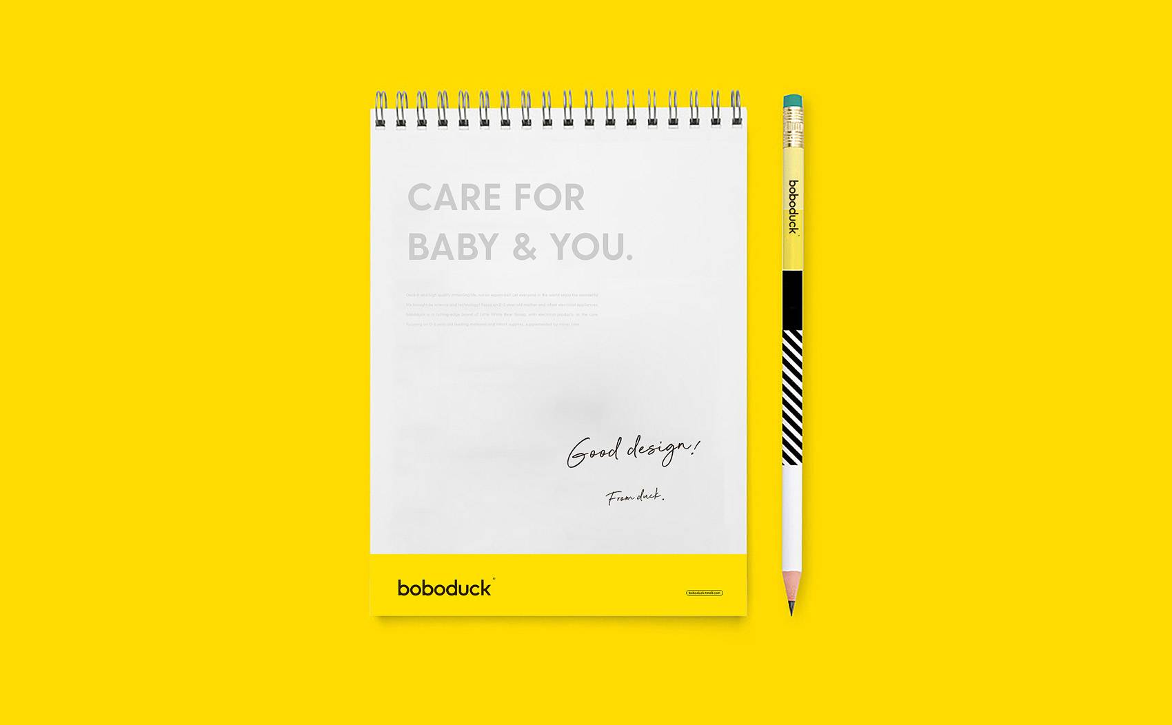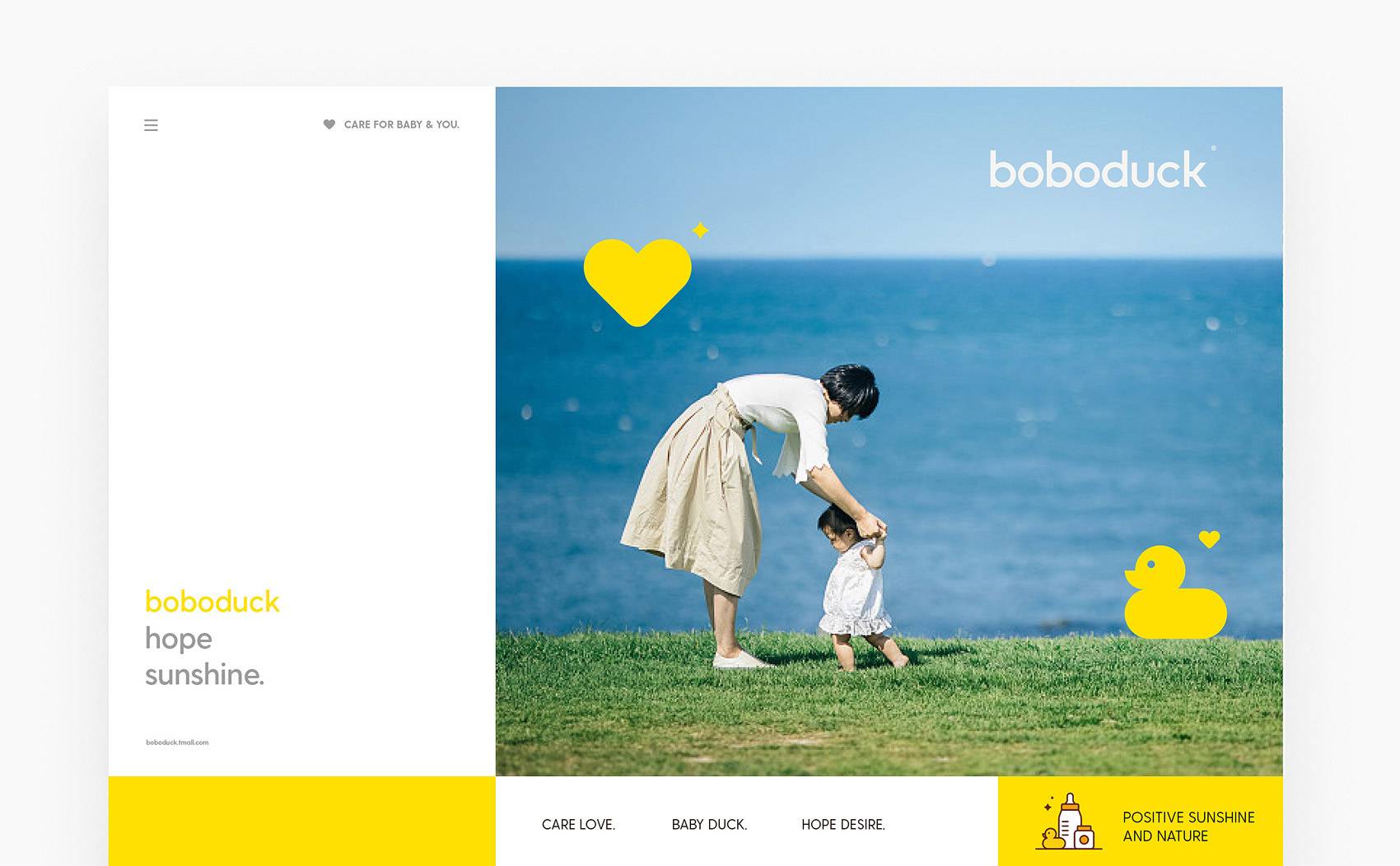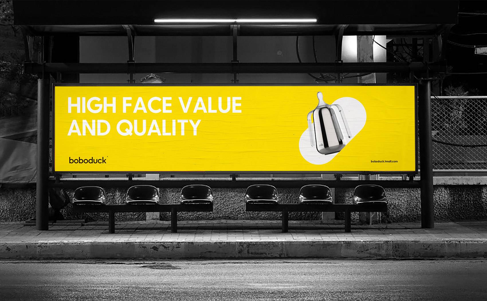 以柠檬黄作为品牌的主色调,搭配深棕色,清新而又阳光的配色。凸显boboduck的品牌调性,传递有趣、轻松的品牌理念。字体为主的品牌标识更有品质感与现代感。