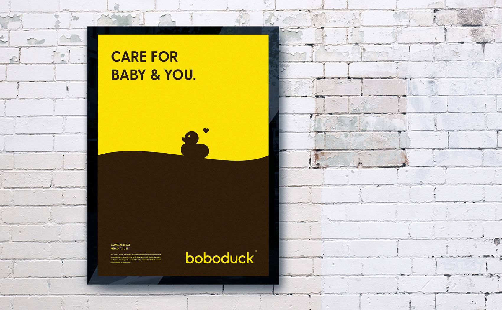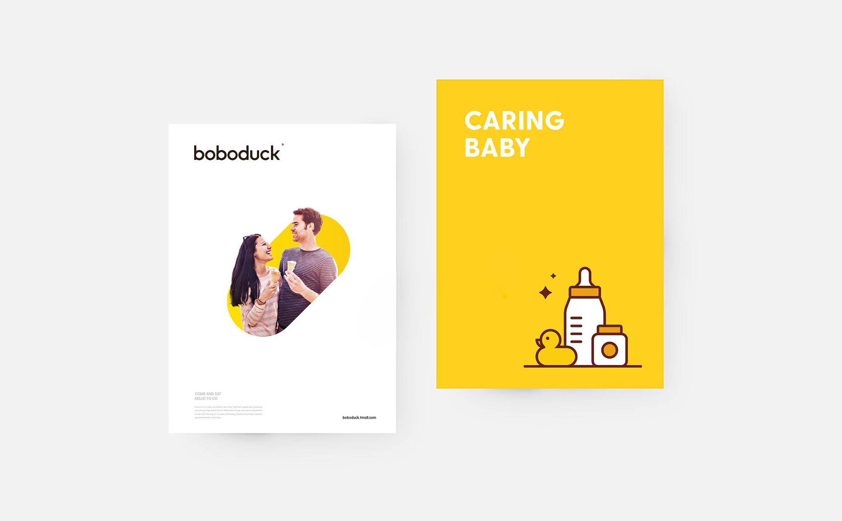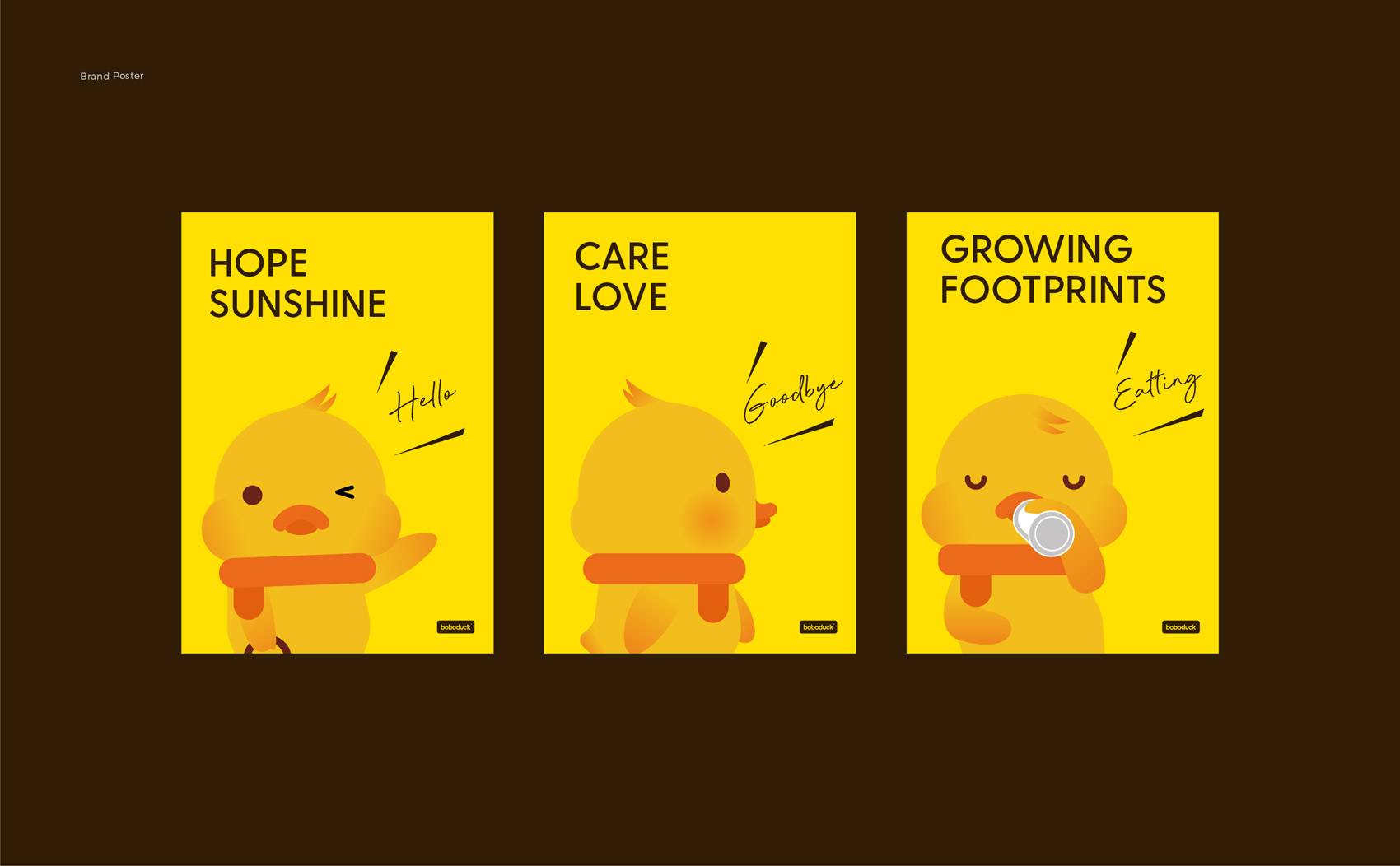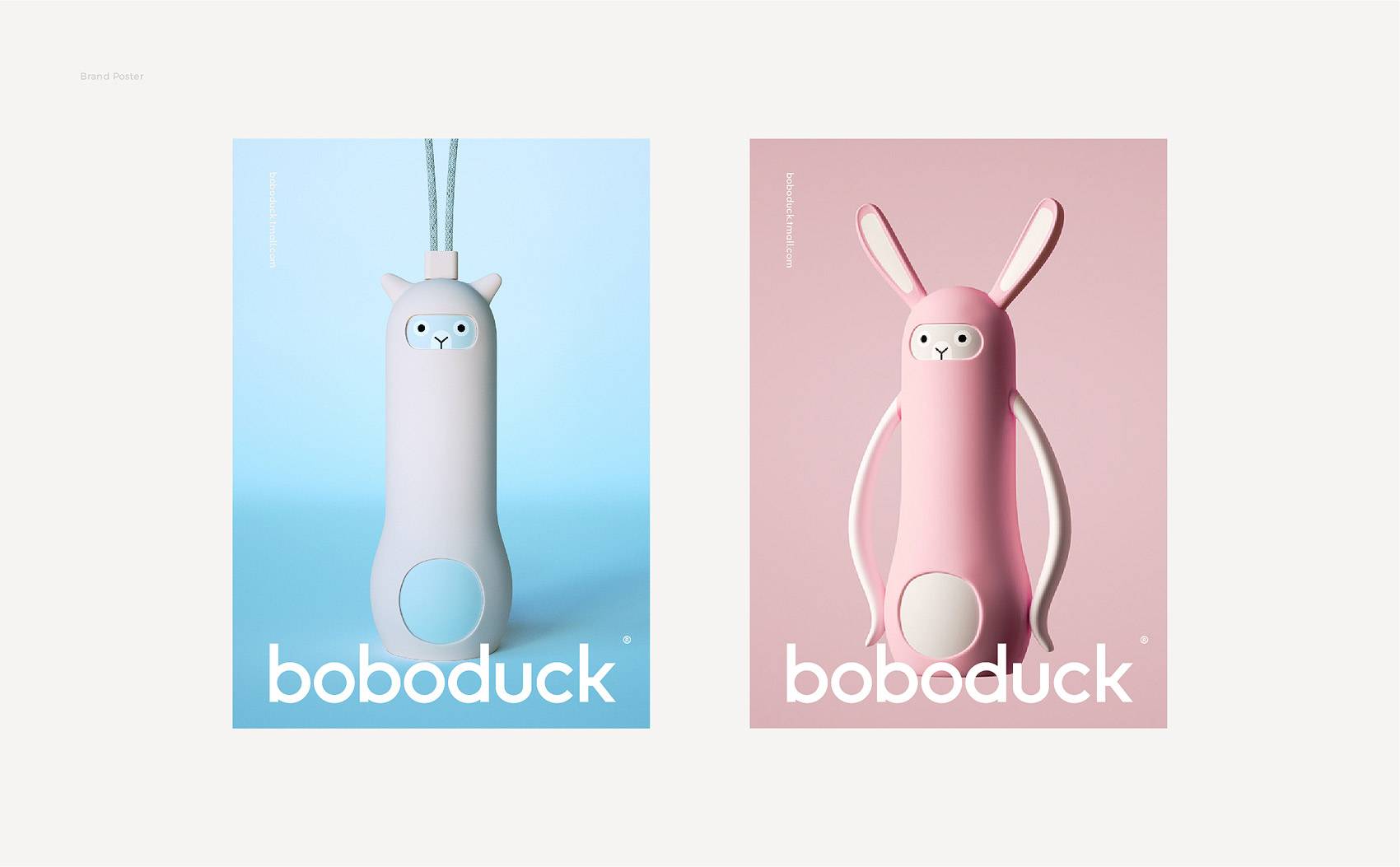 为了让品牌与消费者进行互动、引起情感共鸣,我们为boboduck塑造了品牌IP的形象设计。角色原型用什么合适?品牌可视化!品牌名就是品牌IP,基于DUCK这一元素而进行创作,BOBO给人的感觉是一个呆呆、有趣、轻松、好玩的视觉印象,所以才有了胖胖的身子、大大的头、无辜的眼神,红色的围巾是为了进一步体现品牌的理念,关心与呵护。
