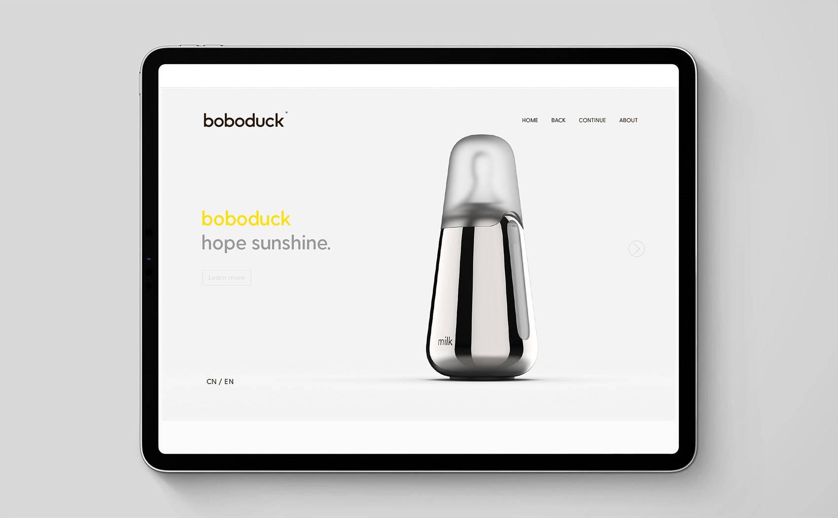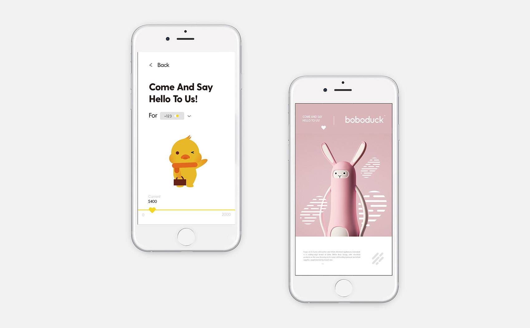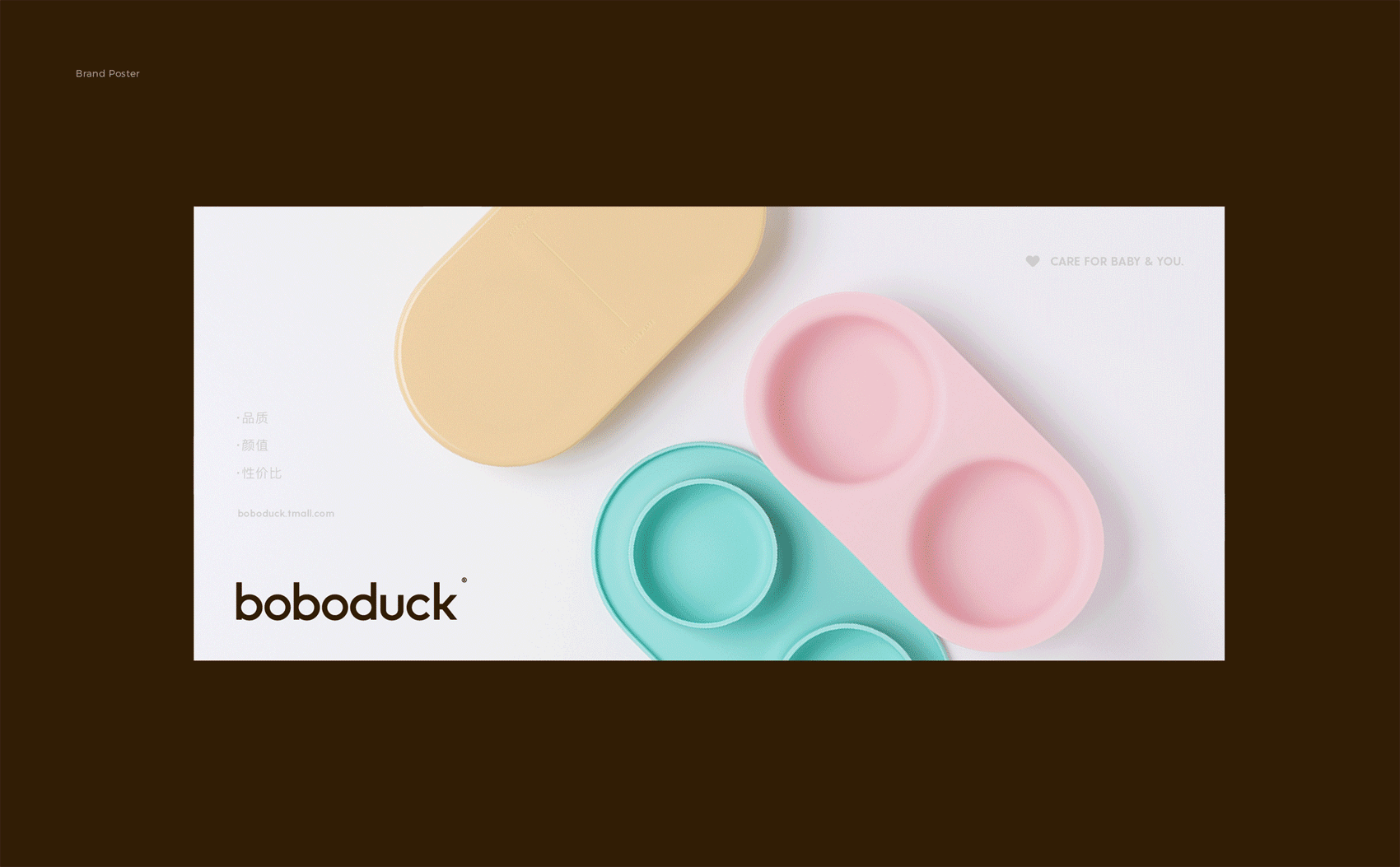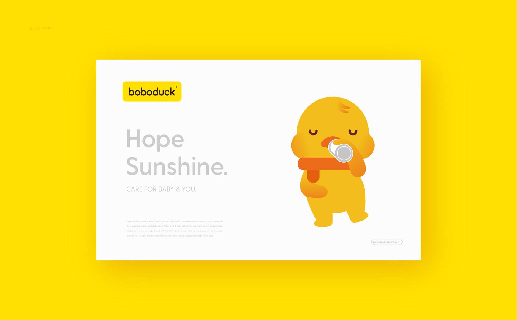 为了让品牌与消费者进行互动、引起情感共鸣,我们为boboduck塑造了品牌IP的形象设计。角色原型用什么合适?品牌可视化!品牌名就是品牌IP,基于DUCK这一元素而进行创作,BOBO给人的感觉是一个呆呆、有趣、轻松、好玩的视觉印象,所以才有了胖胖的身子、大大的头、无辜的眼神,红色的围巾是为了进一步体现品牌的理念,关心与呵护。