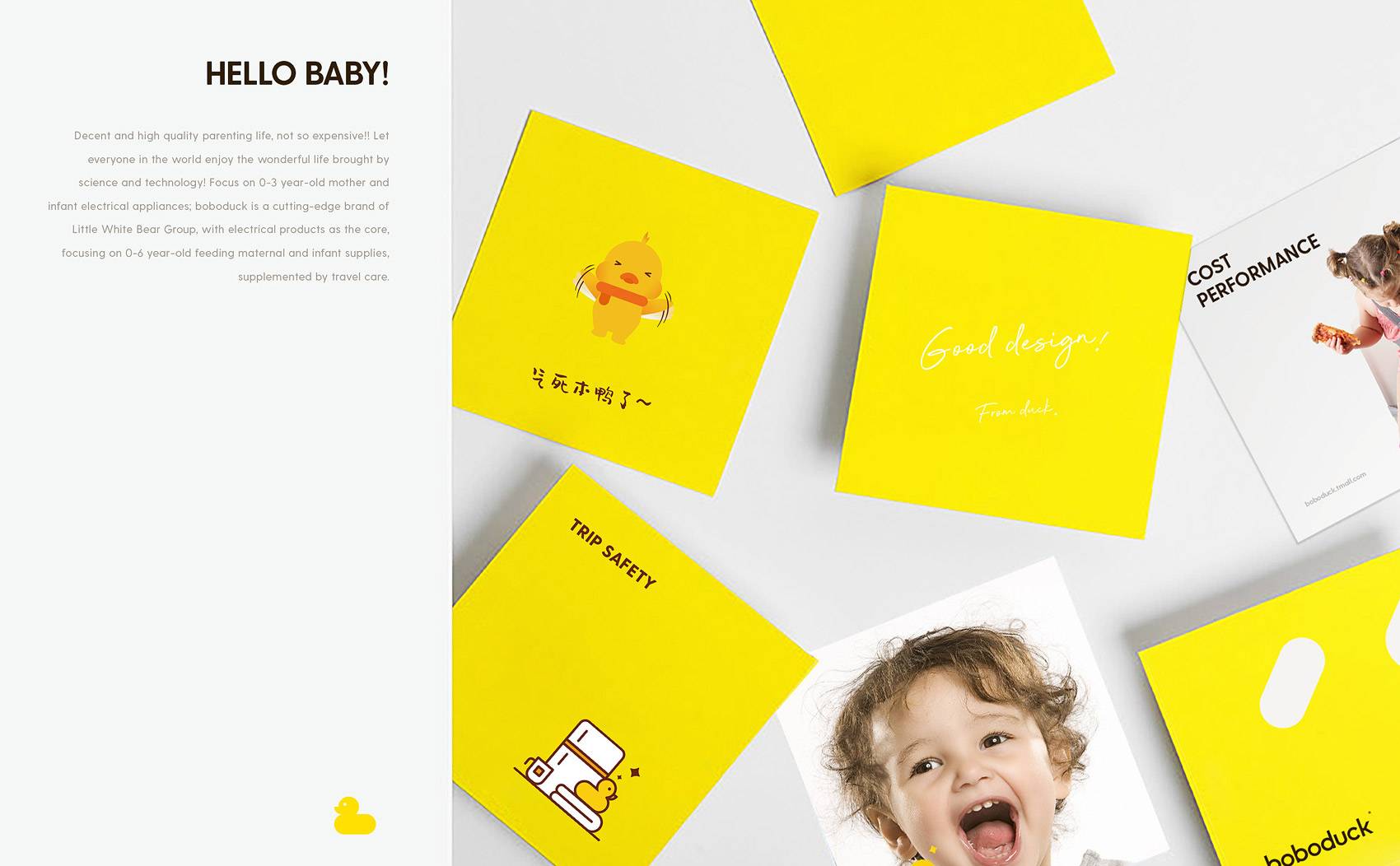 通过创新自主研发优质产品,包括孕妈用品、宝宝电器、宝宝出行用品等,让宝妈和宝宝享受到高性价比产品。我们坚持做宝妈信赖的超值母婴电器品牌,我们将对孩子的关切与思虑融注在产品之中,创造属于我们中国自己的品牌。让宝妈轻轻松松,就可以买到可信赖的宝宝用品。BOBODUCK,给妈妈满满的贴心与放心,让妈妈们更好地享受生活