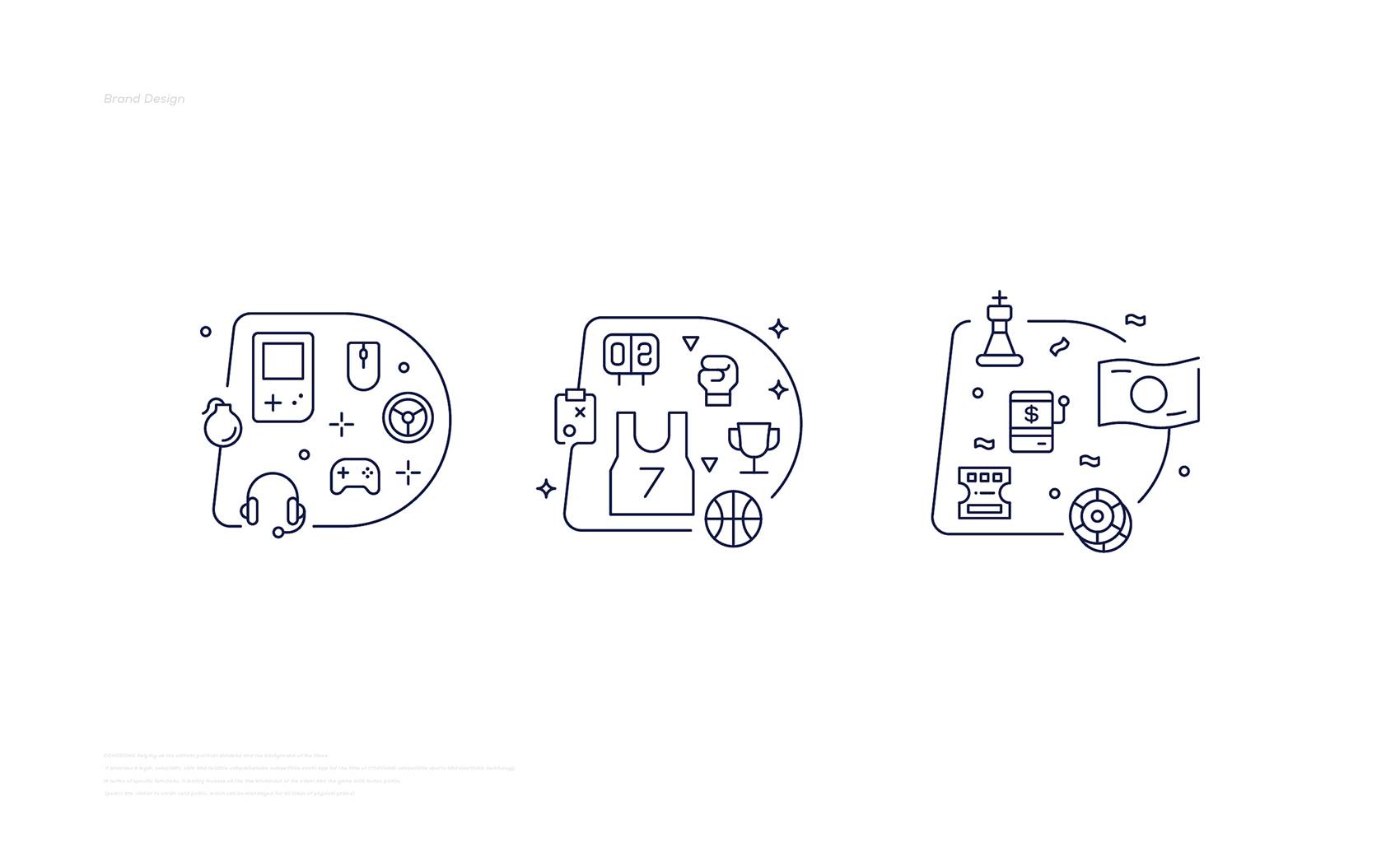 为满足传统体育竞技爱好者和电子竞技爱好者,我们采用的以包容性的符号更能同时涵盖“电竞”+“体育”的业务范围。符号的设计还需具备一定的亲和力,避免过于侧重电竞、或体育,挖掘两类人群的特点与审美重叠区。要具备均衡性、多元性、信赖感。