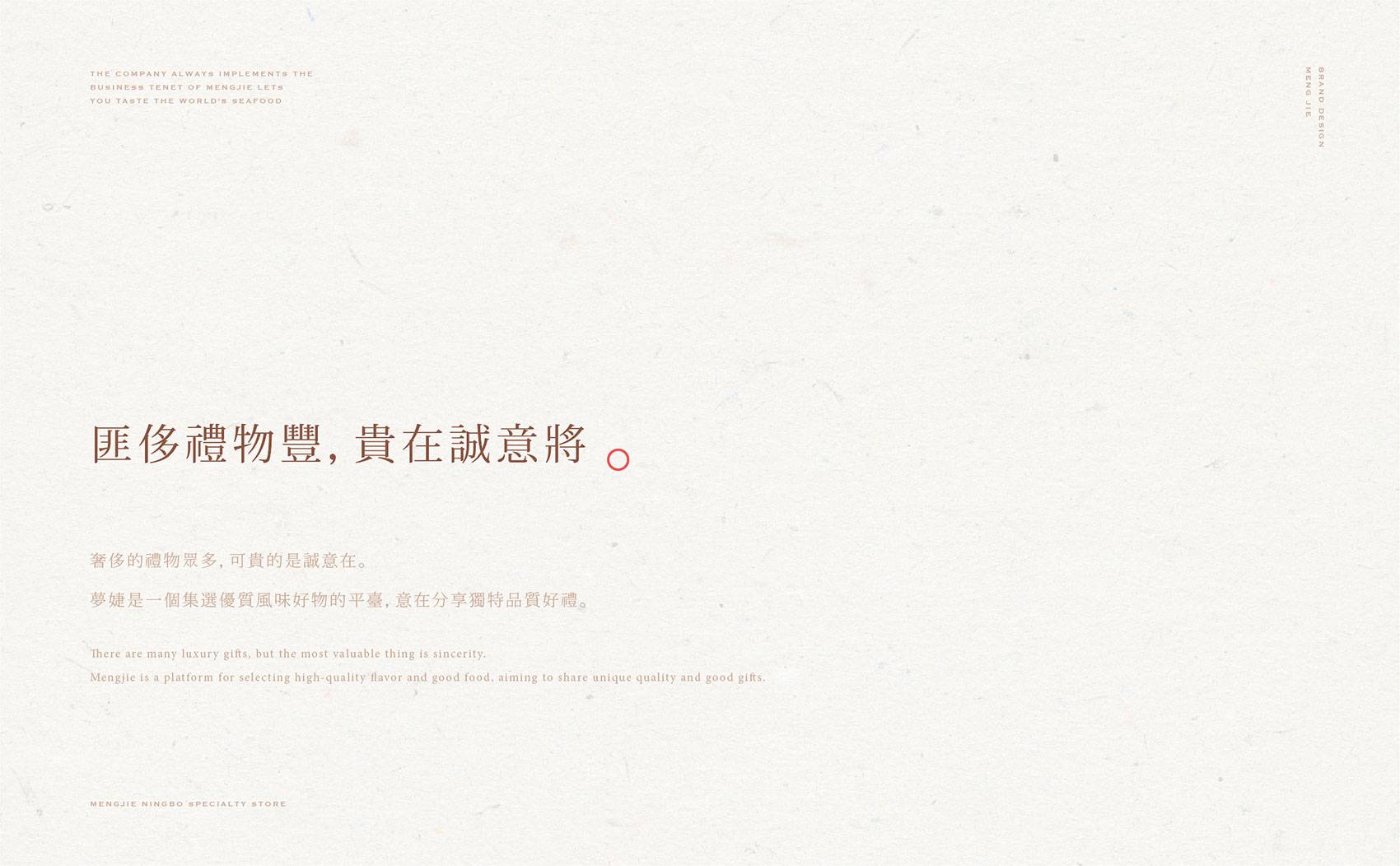 每个品牌都有自己的代号,三只松鼠代表坚果零食,五芳斋代表粽子,稻香村代表糕点,那梦婕的代号应该是什么?经过前期品牌目前资源配称与高层调研,梦婕已不再是单单只做海鲜食品的品牌,而是逐渐慢慢变为宁波特产礼品的平台,所以,在策略上,所以我们为梦婕重新定位“宁波特产礼品”,梦婕不只是代表海鲜,也不只有海鲜,而是一个集合了宁波特色特产礼品的优质平台。礼品的覆盖面更广,更符合我们的发展需求。