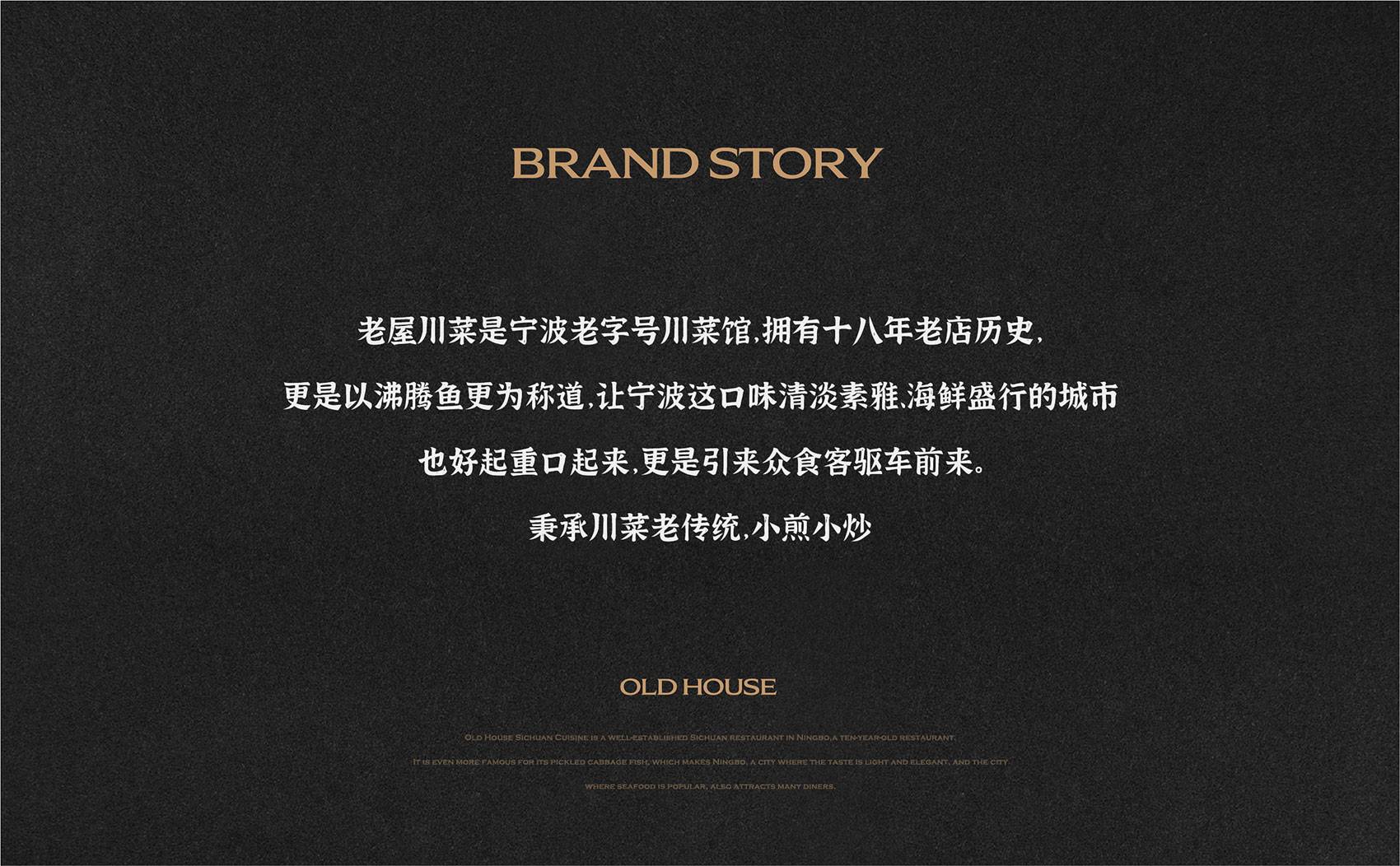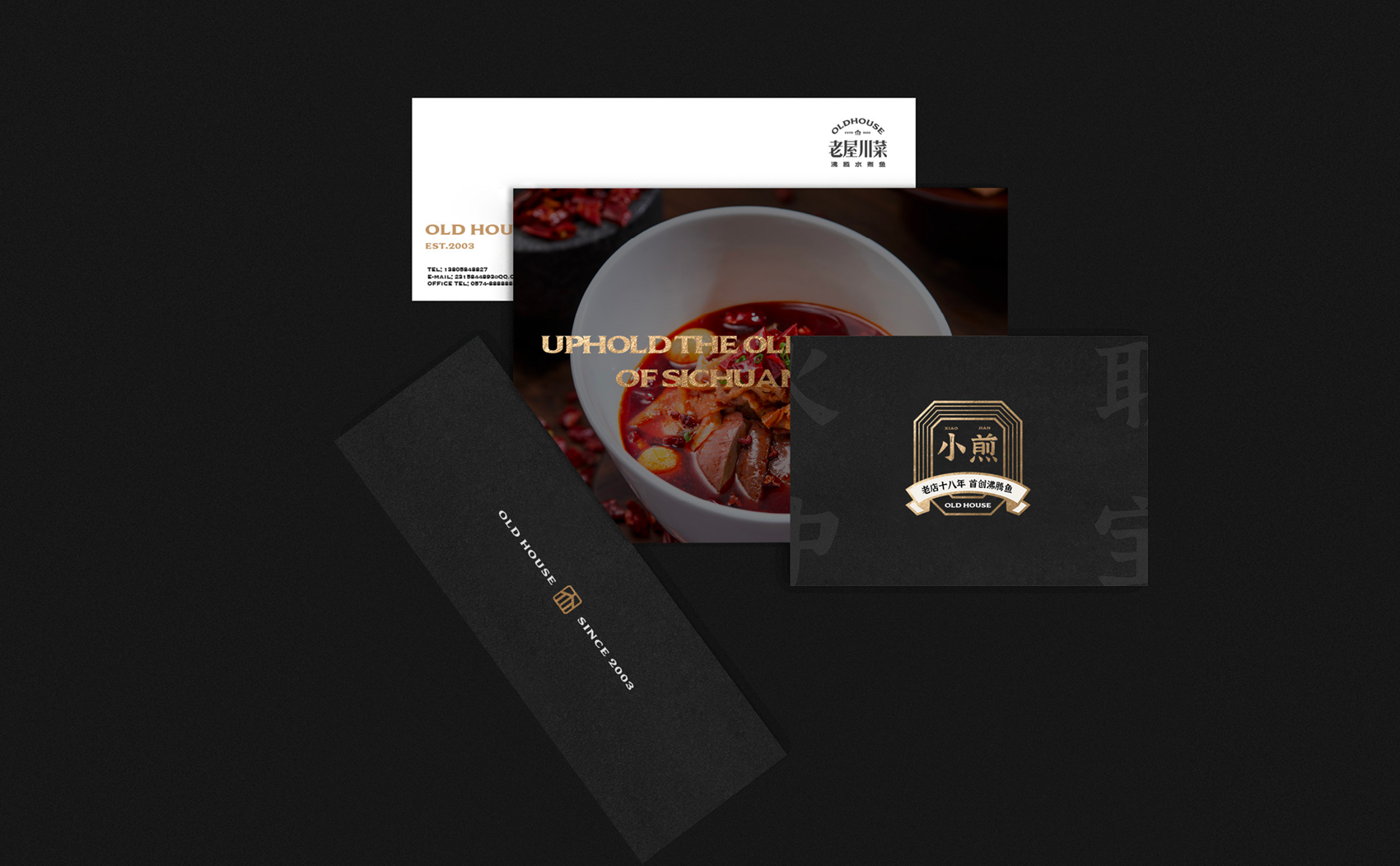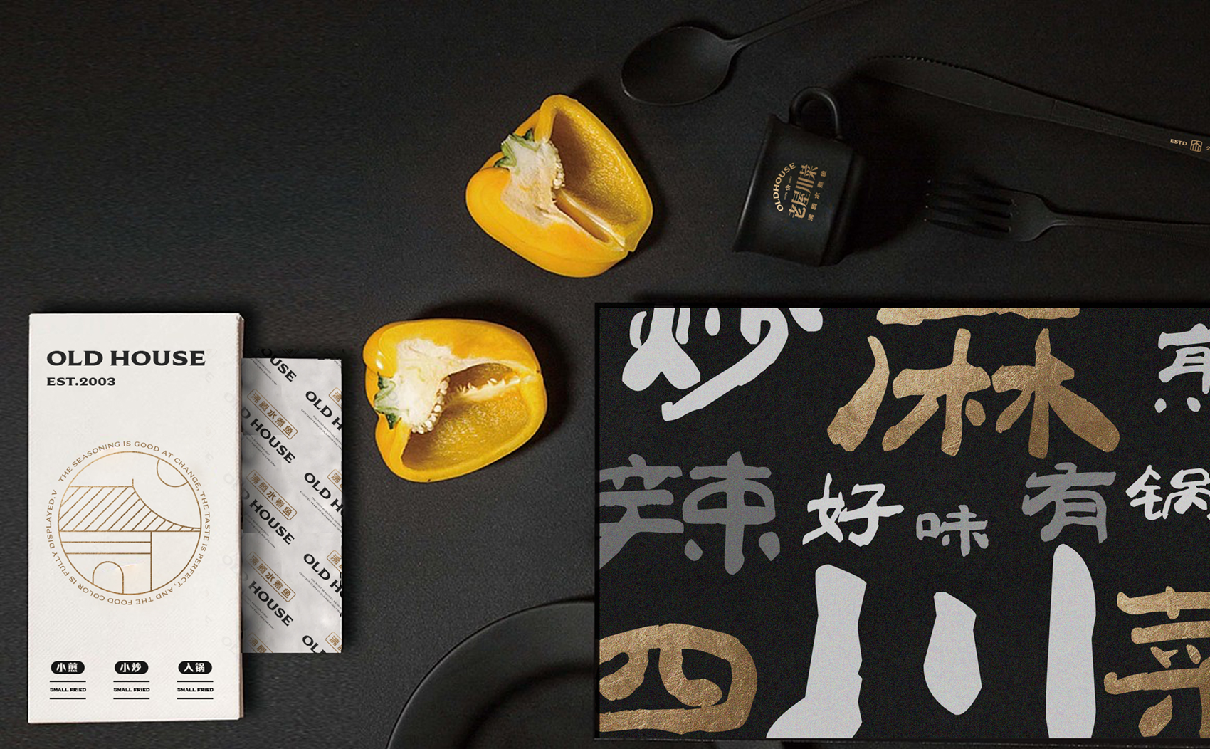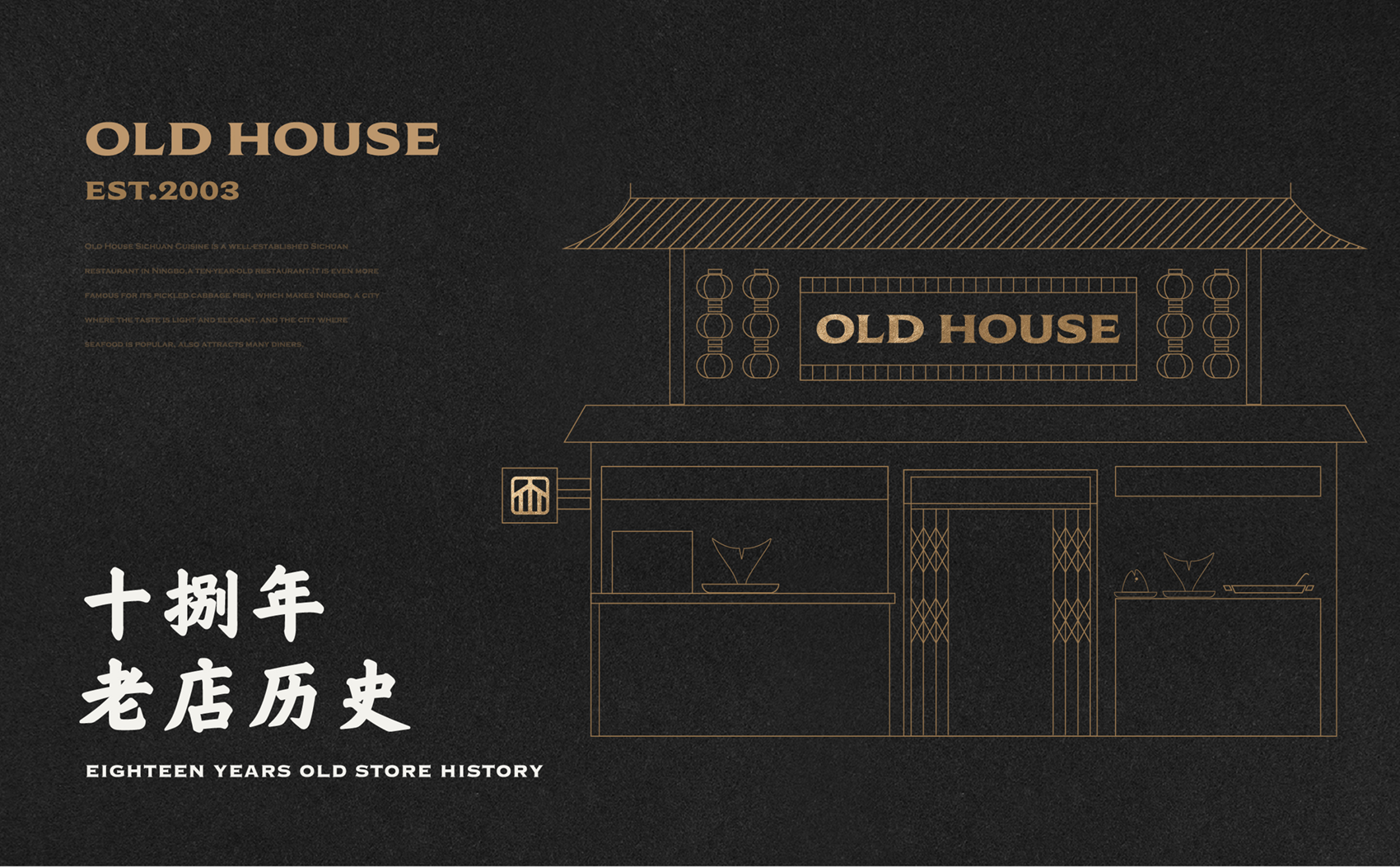 老屋川菜作为一个拥有十八年历史的老店,倡导以原生、地道的四川菜作为核心理念,且同时希望面对的人群更年轻化,所以在整个品牌的气质上,我们希望传达出历史的同时,又具备年轻化的特征与质感。