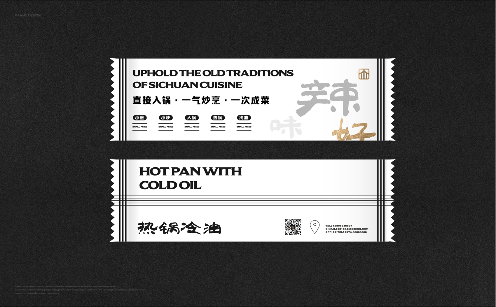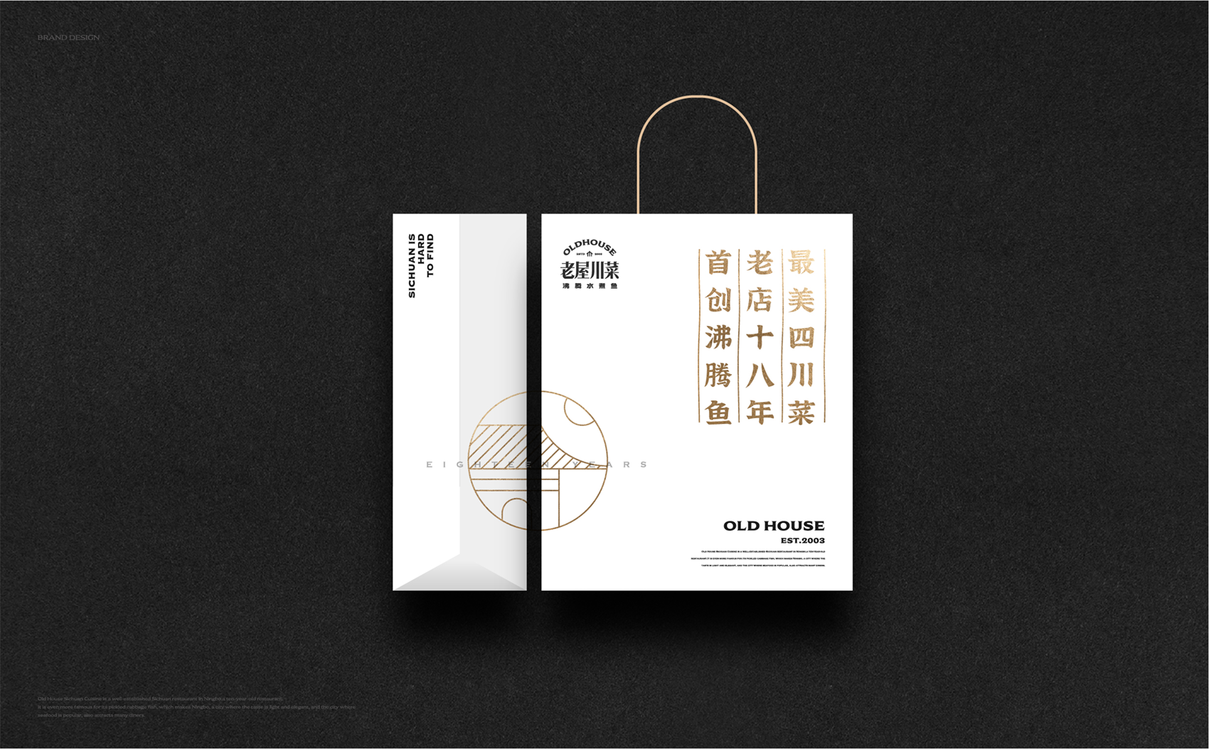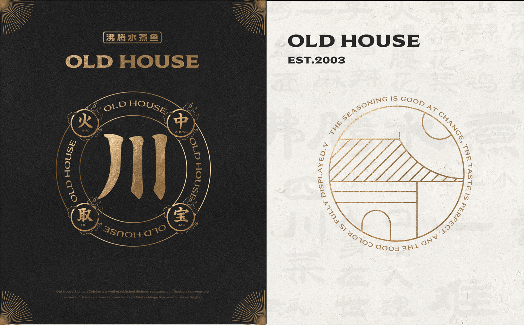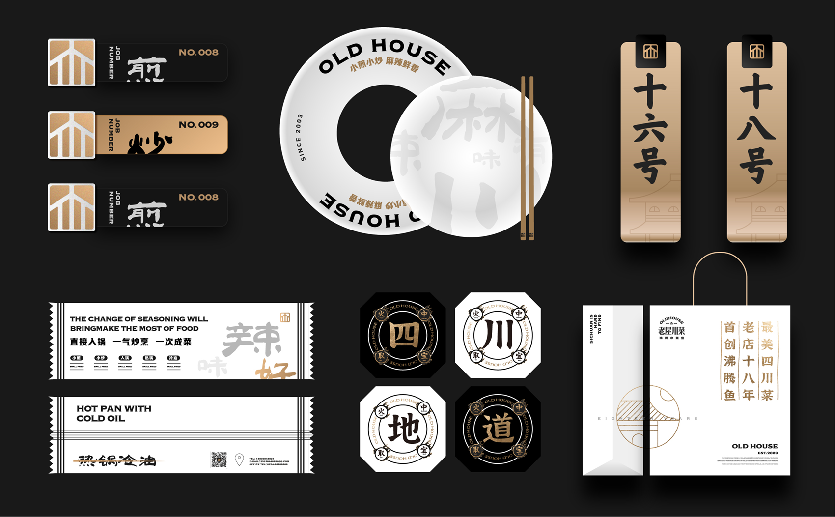 老屋川菜作为一个拥有十八年历史的老店,倡导以原生、地道的四川菜作为核心理念,且同时希望面对的人群更年轻化,所以在整个品牌的气质上,我们希望传达出历史的同时,又具备年轻化的特征与质感。