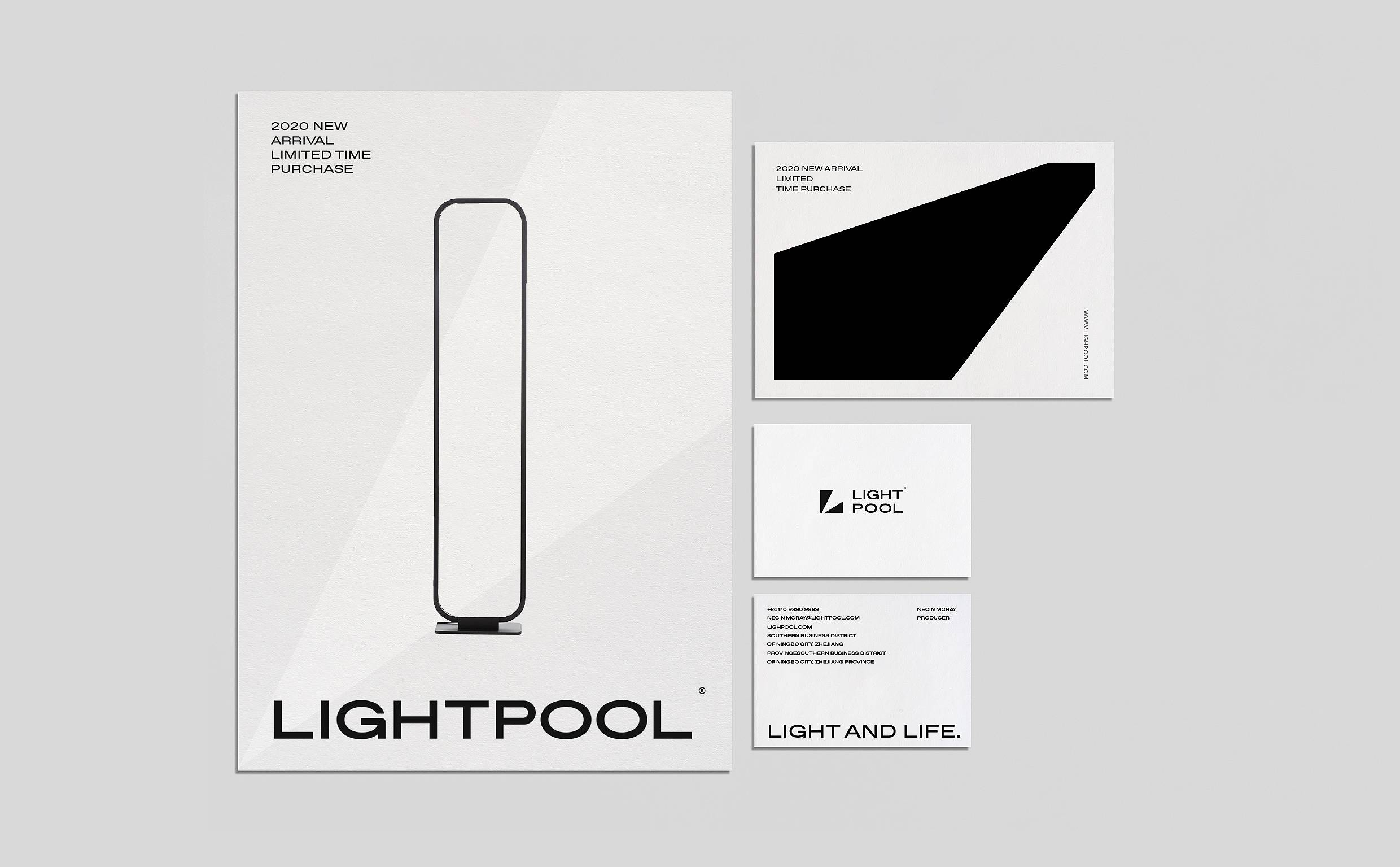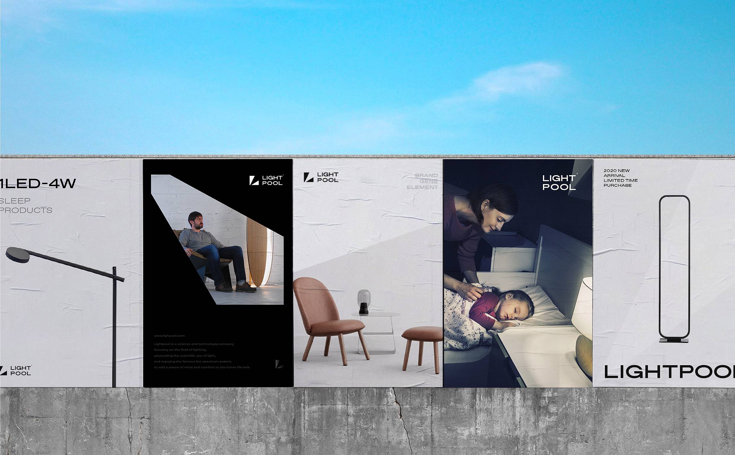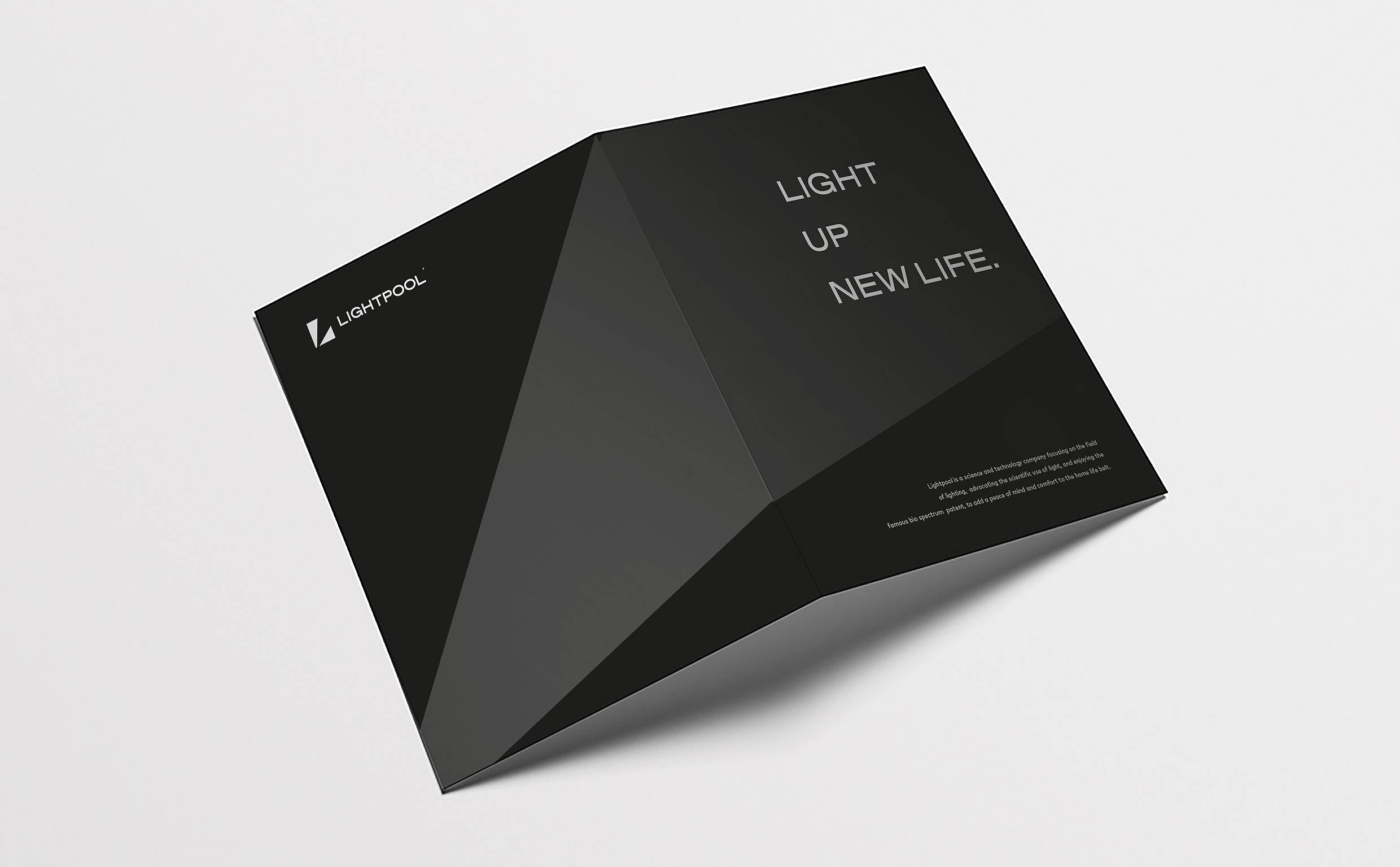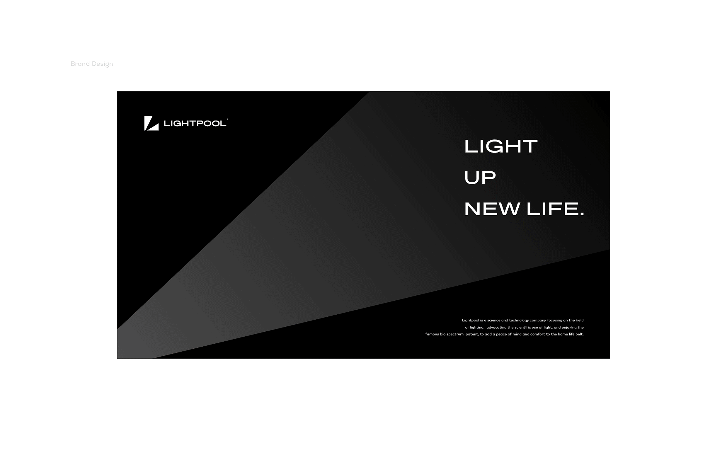 视觉上以“光”为原型,巧妙的组合成为品牌首字母基因“L”。图形的负空间代表着一束聚焦的光线。光线向上倾斜的角度,寓意着:照亮太空、照亮生活,同时也表达着LIGHTPOOL在专业照明技术上的,勇往直前、积极向上的探索与创新。