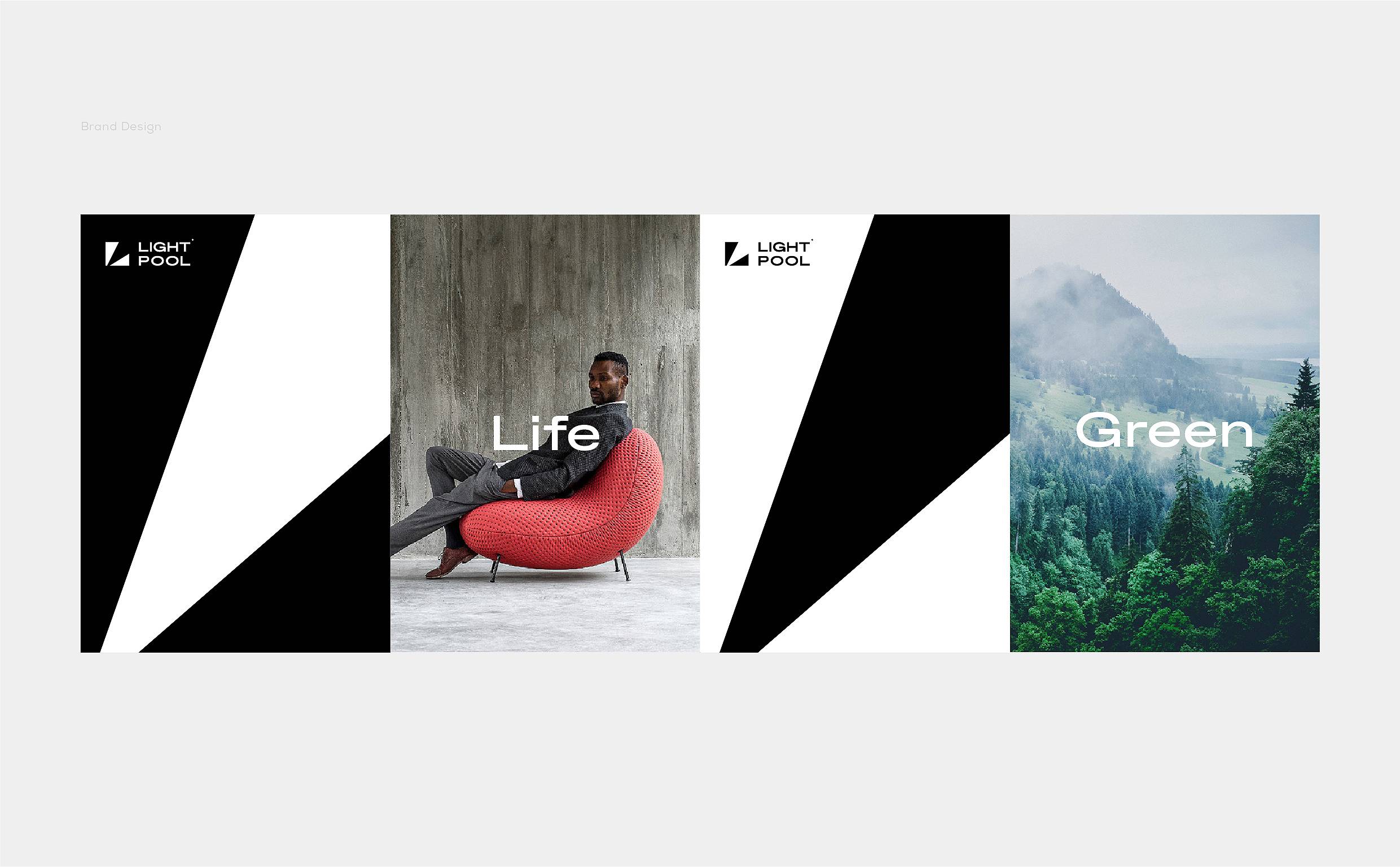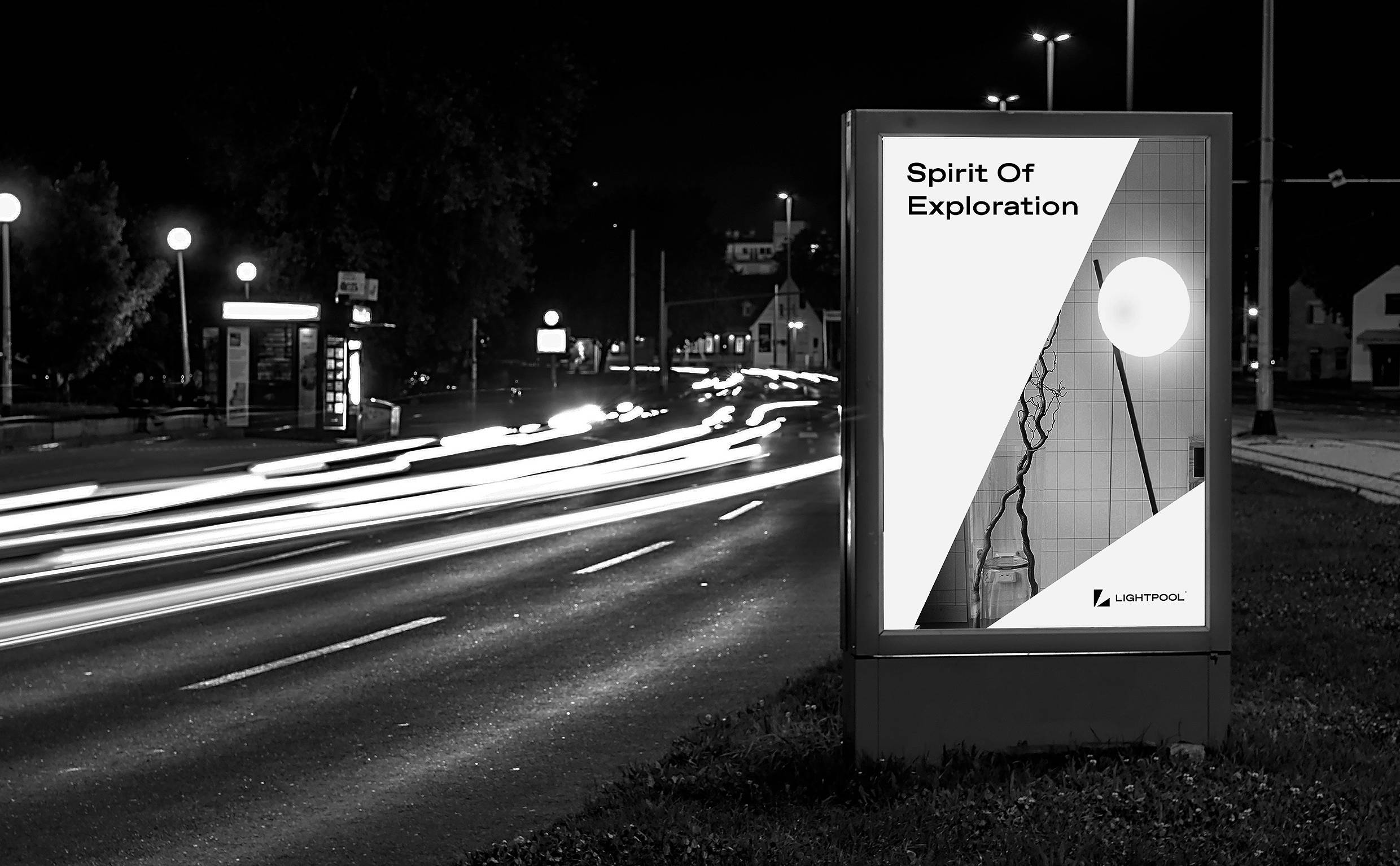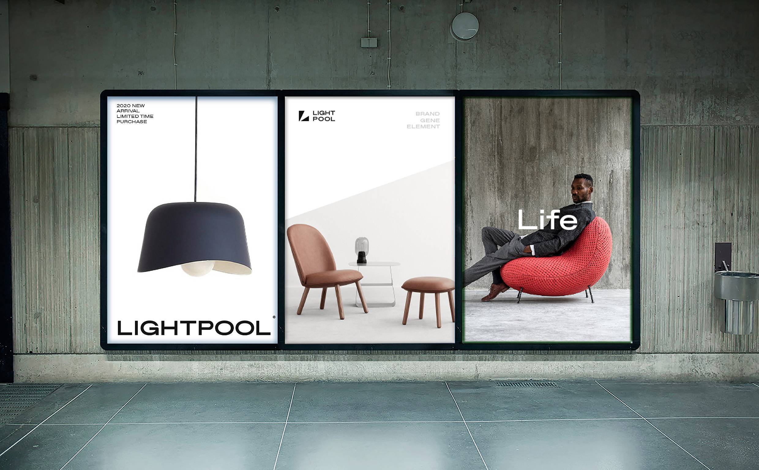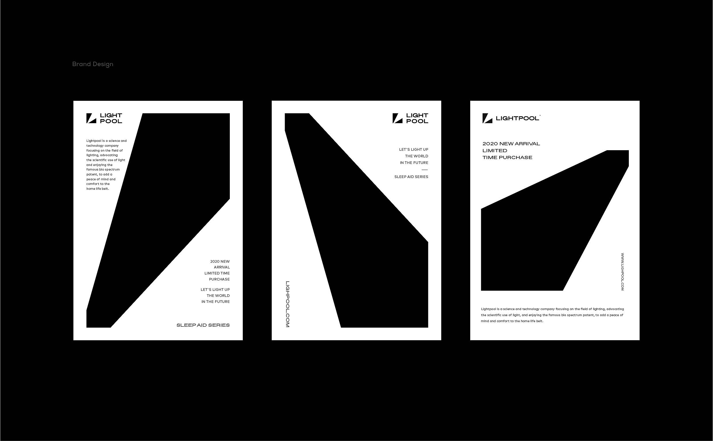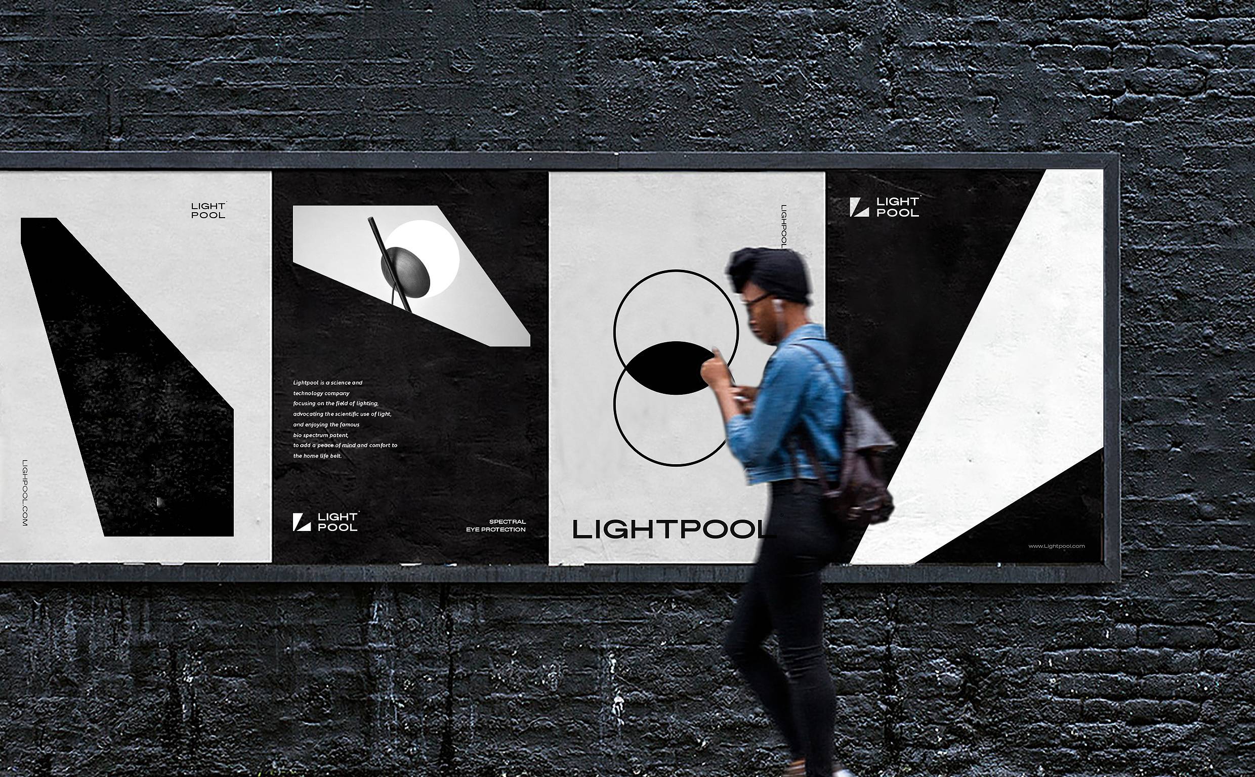 视觉上以“光”为原型,巧妙的组合成为品牌首字母基因“L”。图形的负空间代表着一束聚焦的光线。光线向上倾斜的角度,寓意着:照亮太空、照亮生活,同时也表达着LIGHTPOOL在专业照明技术上的,勇往直前、积极向上的探索与创新。