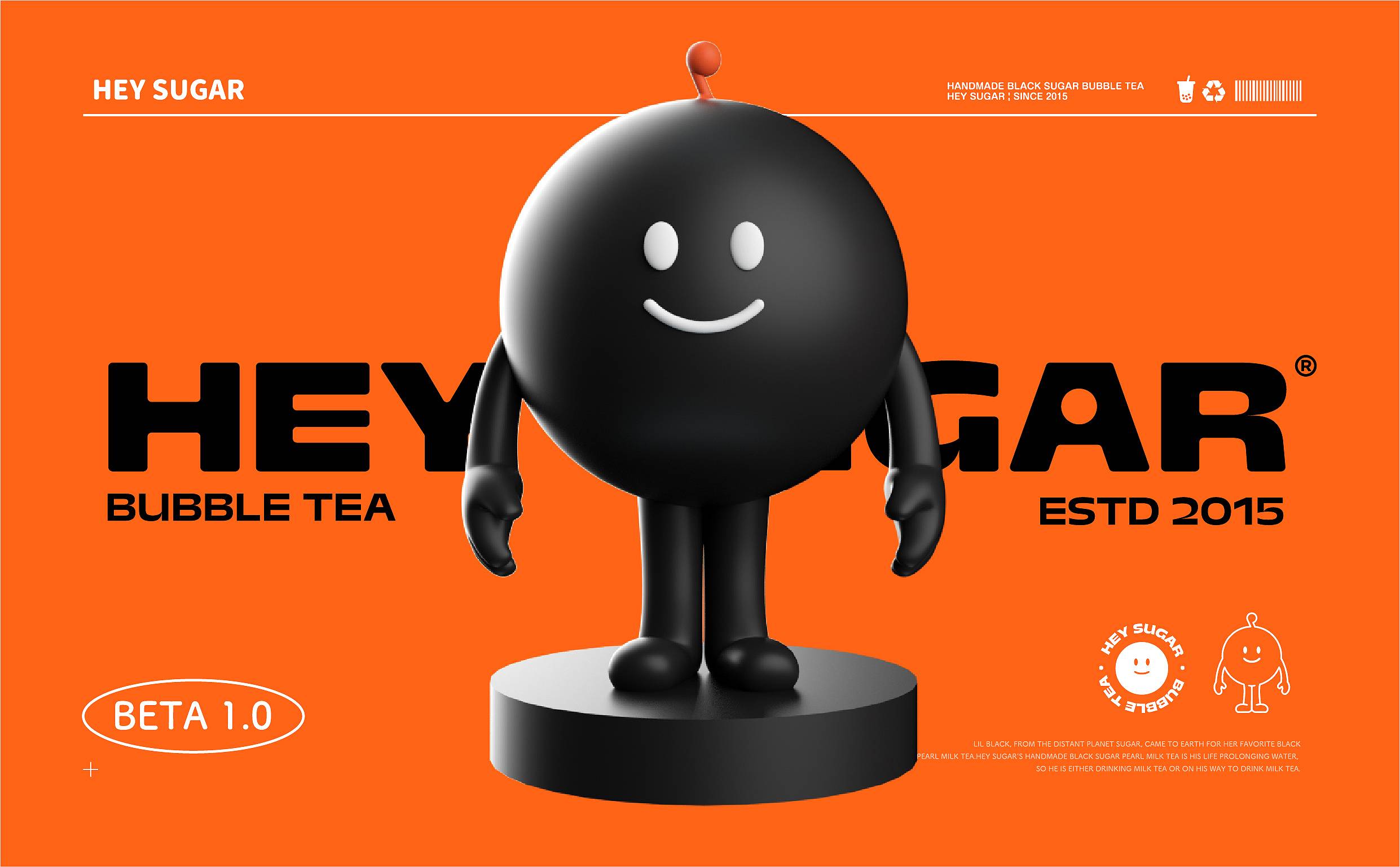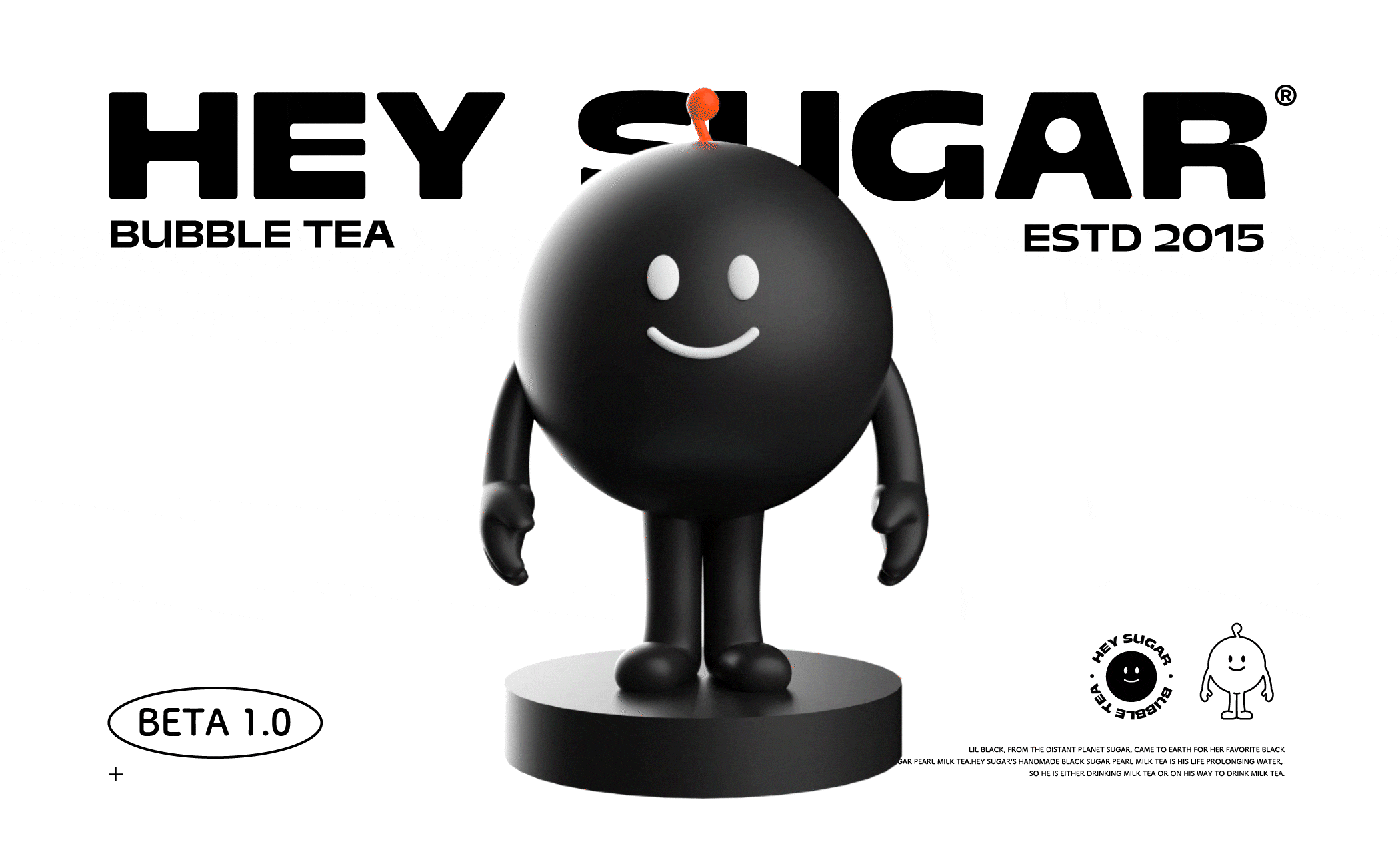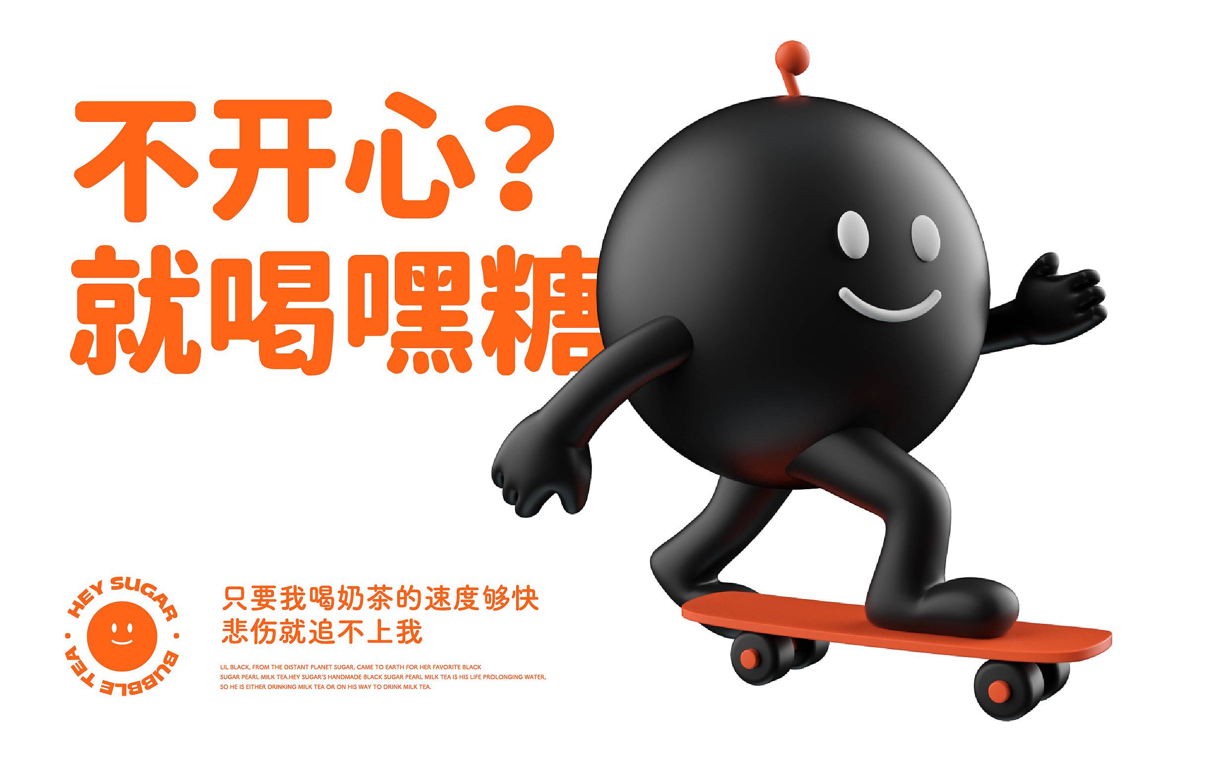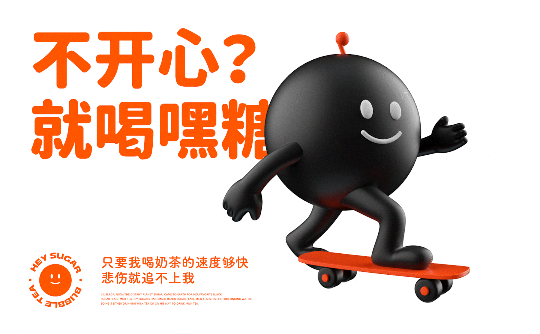 品牌符号的设计必须具备涵盖品牌核心价值,我们塑造了嘿糖的超级IP:小嘿!原型:黑糖珍珠、把珍珠拟人化;特点:嫁接表情文化、笑脸;不开心喝嘿糖!喝嘿糖就开心!