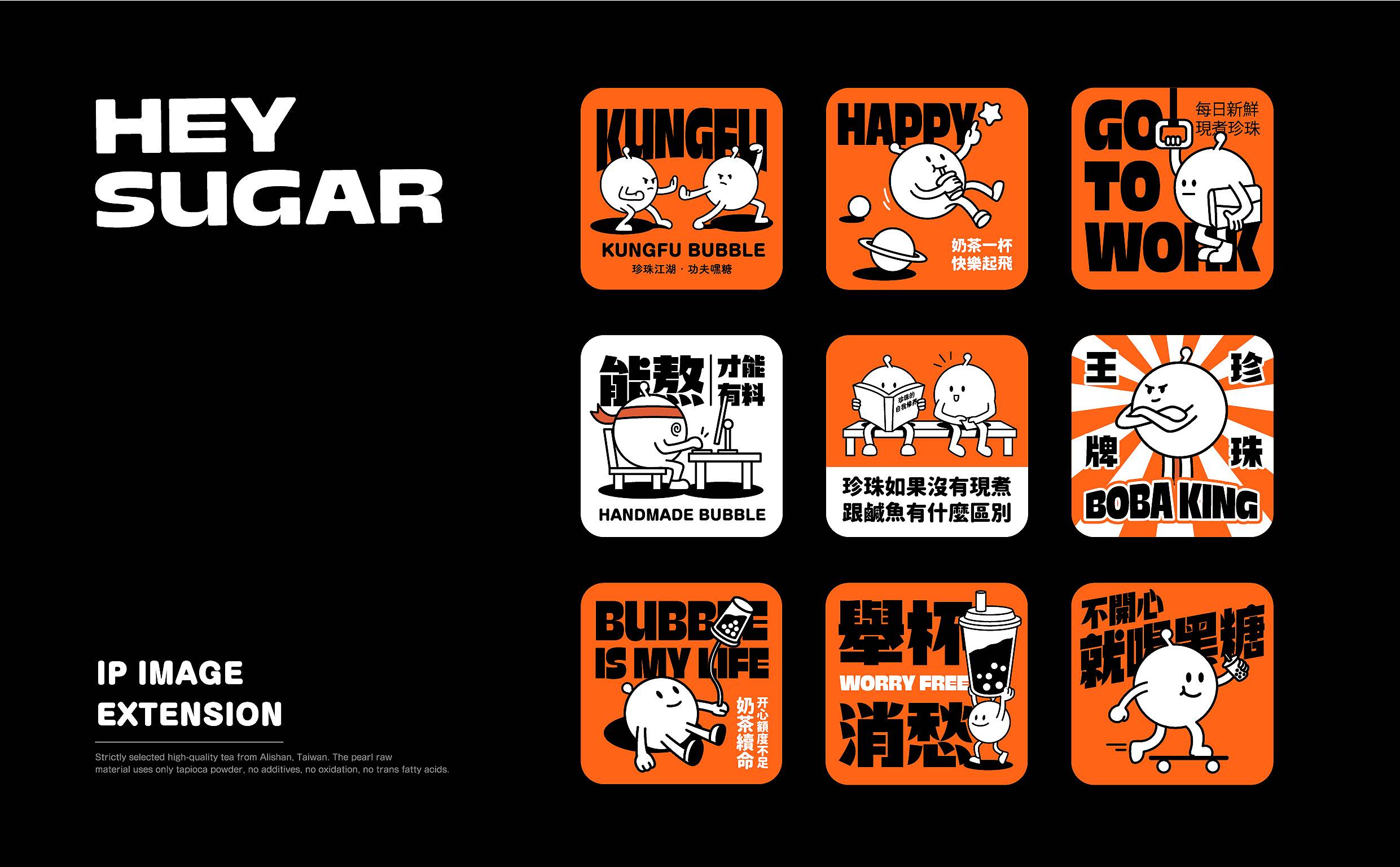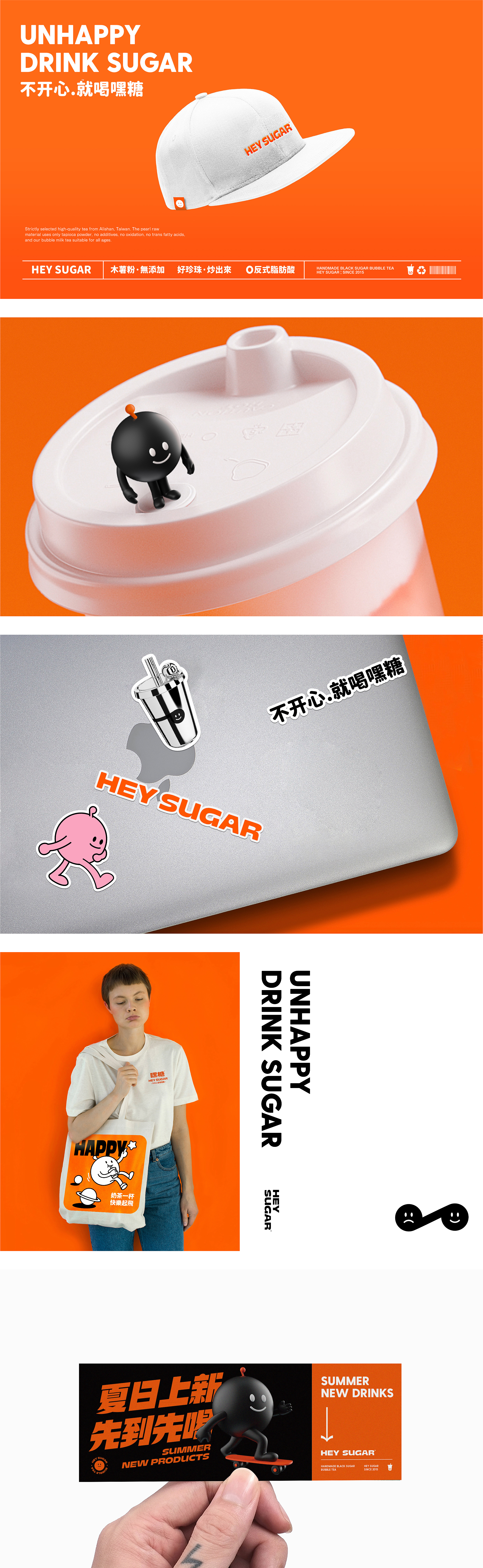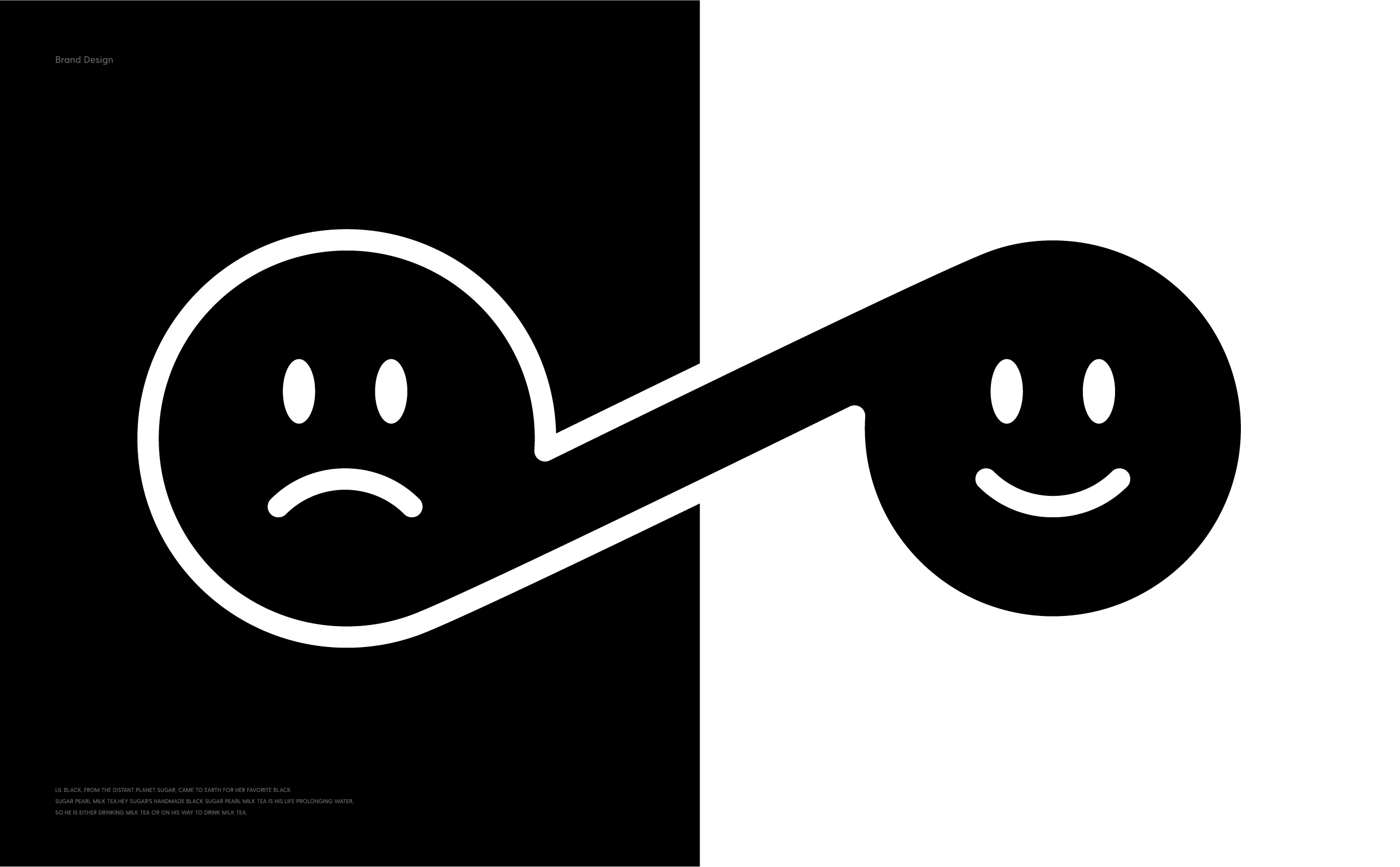 品牌符号的设计必须具备涵盖品牌核心价值,我们塑造了嘿糖的超级IP:小嘿!原型:黑糖珍珠、把珍珠拟人化;特点:嫁接表情文化、笑脸;不开心喝嘿糖!喝嘿糖就开心!