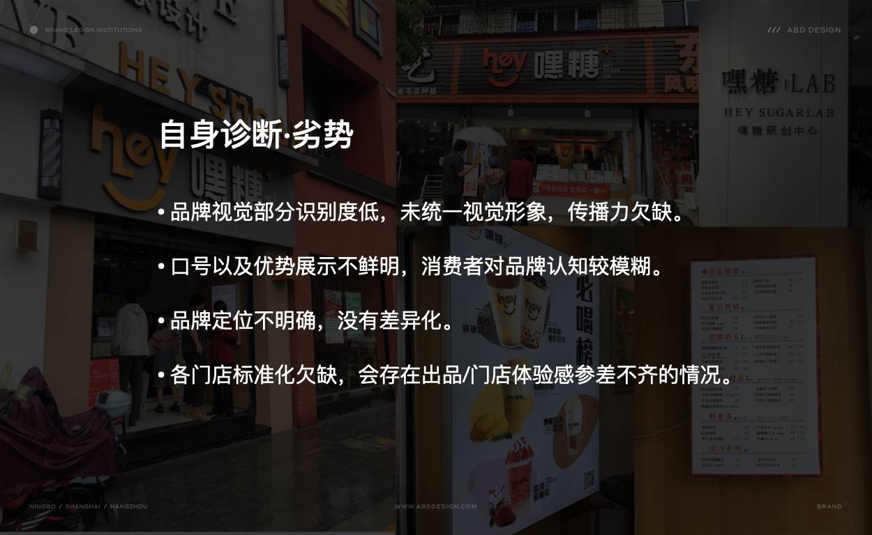嘿糖,大家既熟悉而又陌生的一个奶茶品牌,在品牌初创期发展迅猛,快速进入消费者视野,扩充至全国500家门店,但由于品牌内部的一些原因,导致目前的发展缓慢,慢慢淡出了大众的视野,且形象与气质较难与一线品牌喜茶、古茗、茶百道等品牌互相抗衡,正是带着这样的问题,嘿糖对找到了ABD团队进行本次的品牌全案升级。