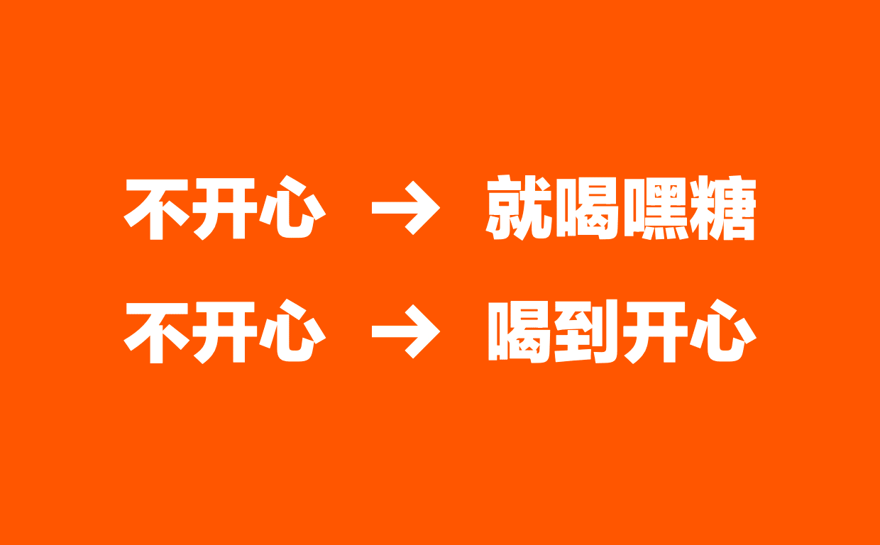 情感层:不开心就喝嘿糖,挖掘消费者的体验瞬间,与喝奶茶的本质诉求,今天不开心?来背嘿糖吧!不开心就喝嘿糖,喝嘿糖就会开心!不开心作为核心的概念引导,更具有营销的延伸性!