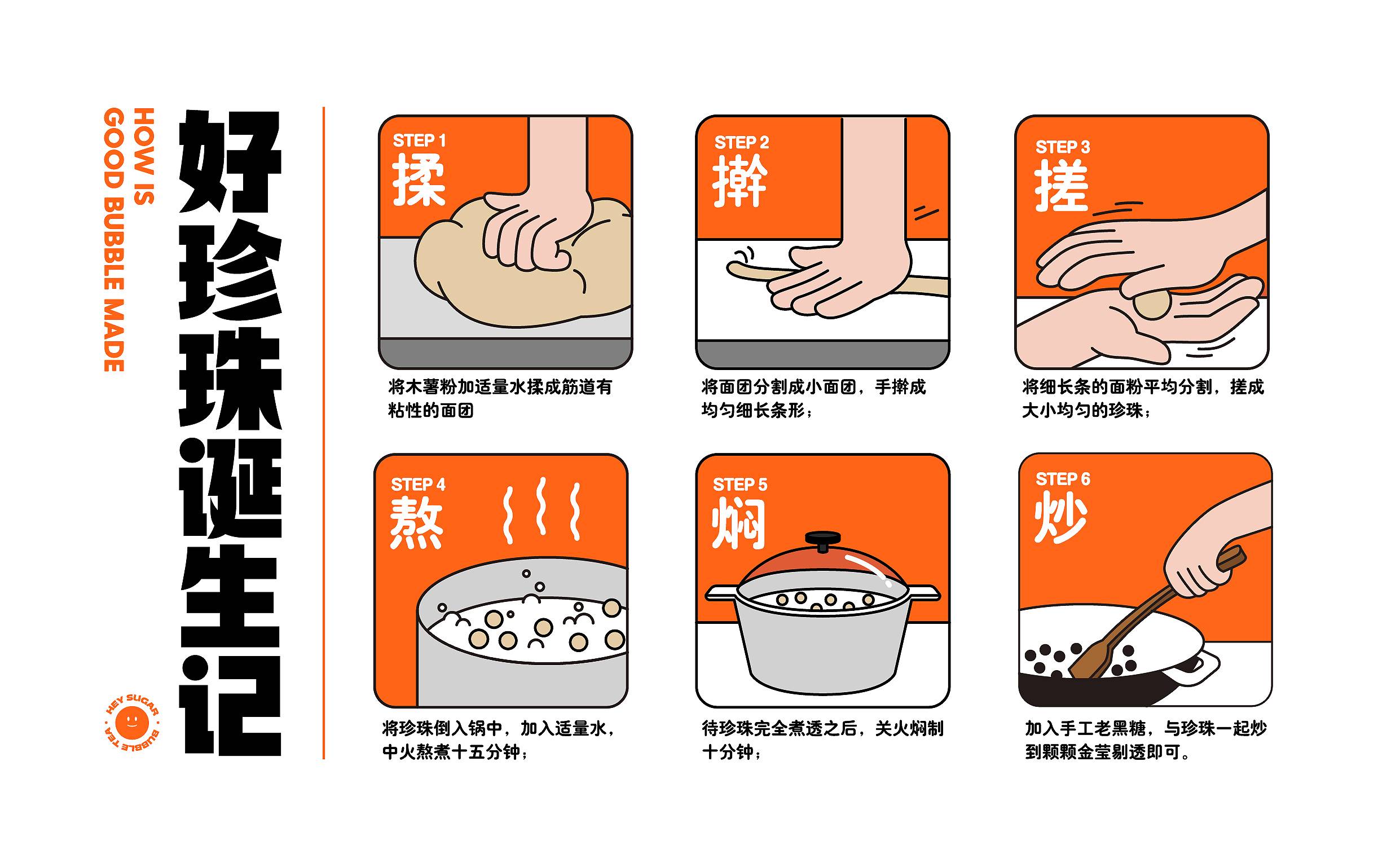 产品层:聚焦细分领域,综合全品类发展,聚焦手工黑糖珍珠奶茶,传达健康、安全的视觉印象。