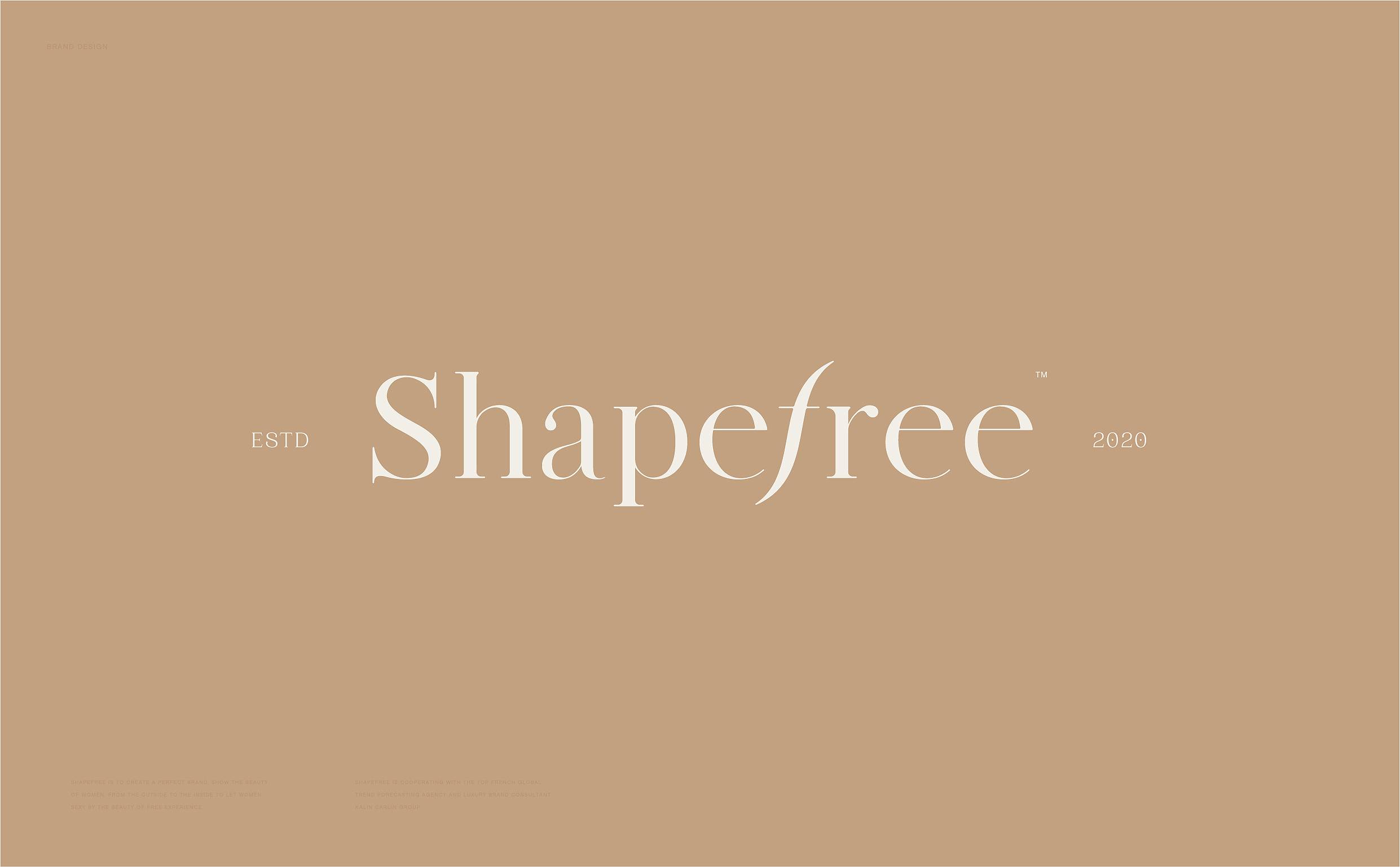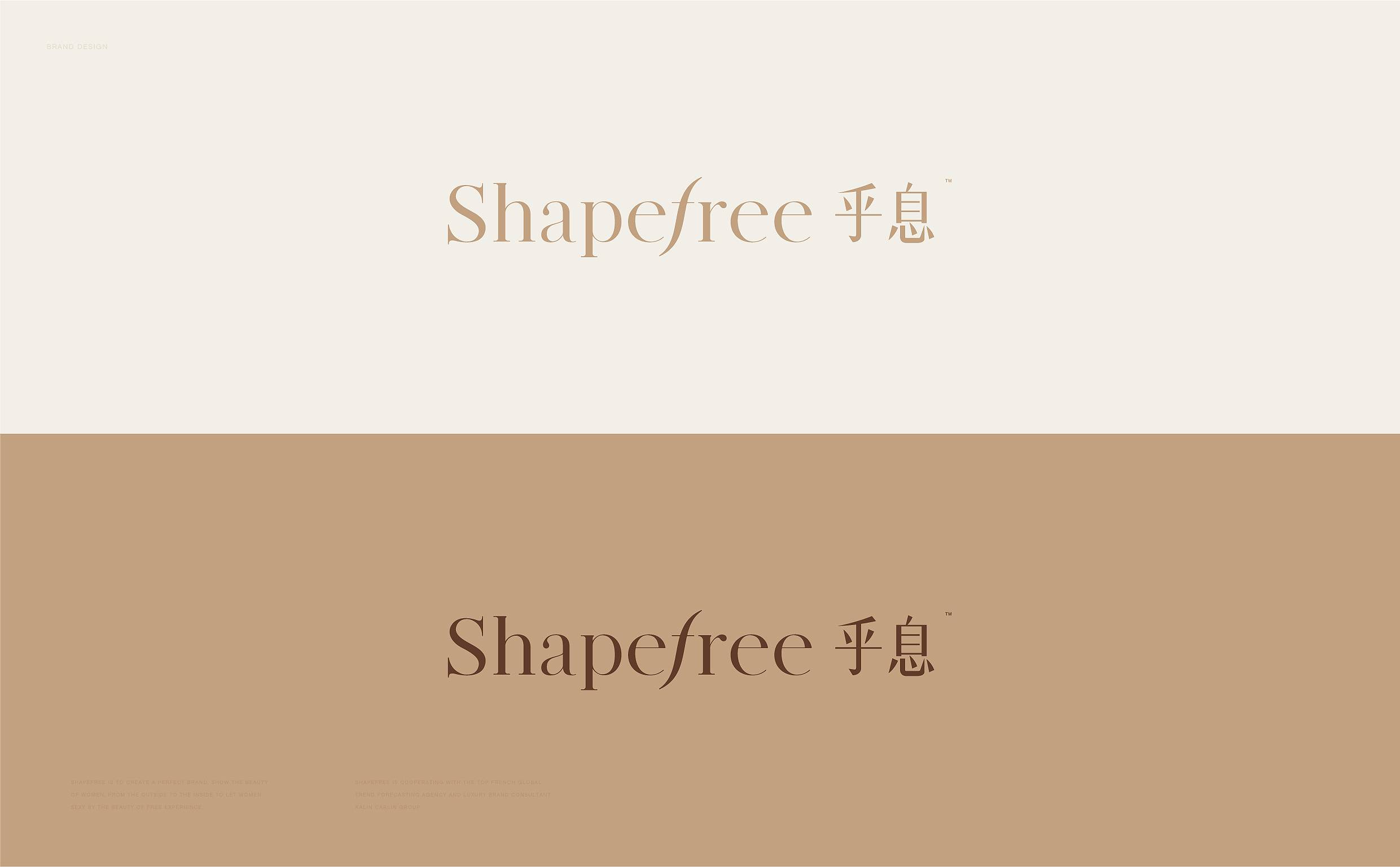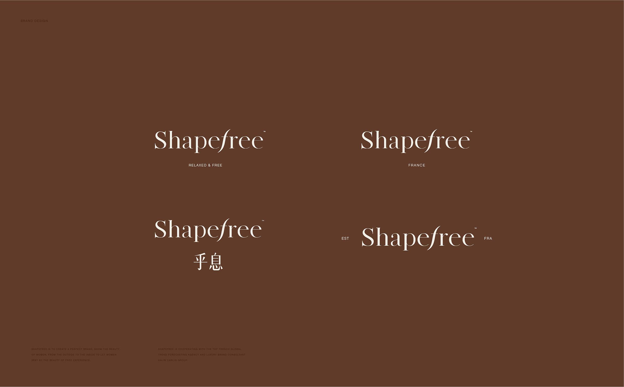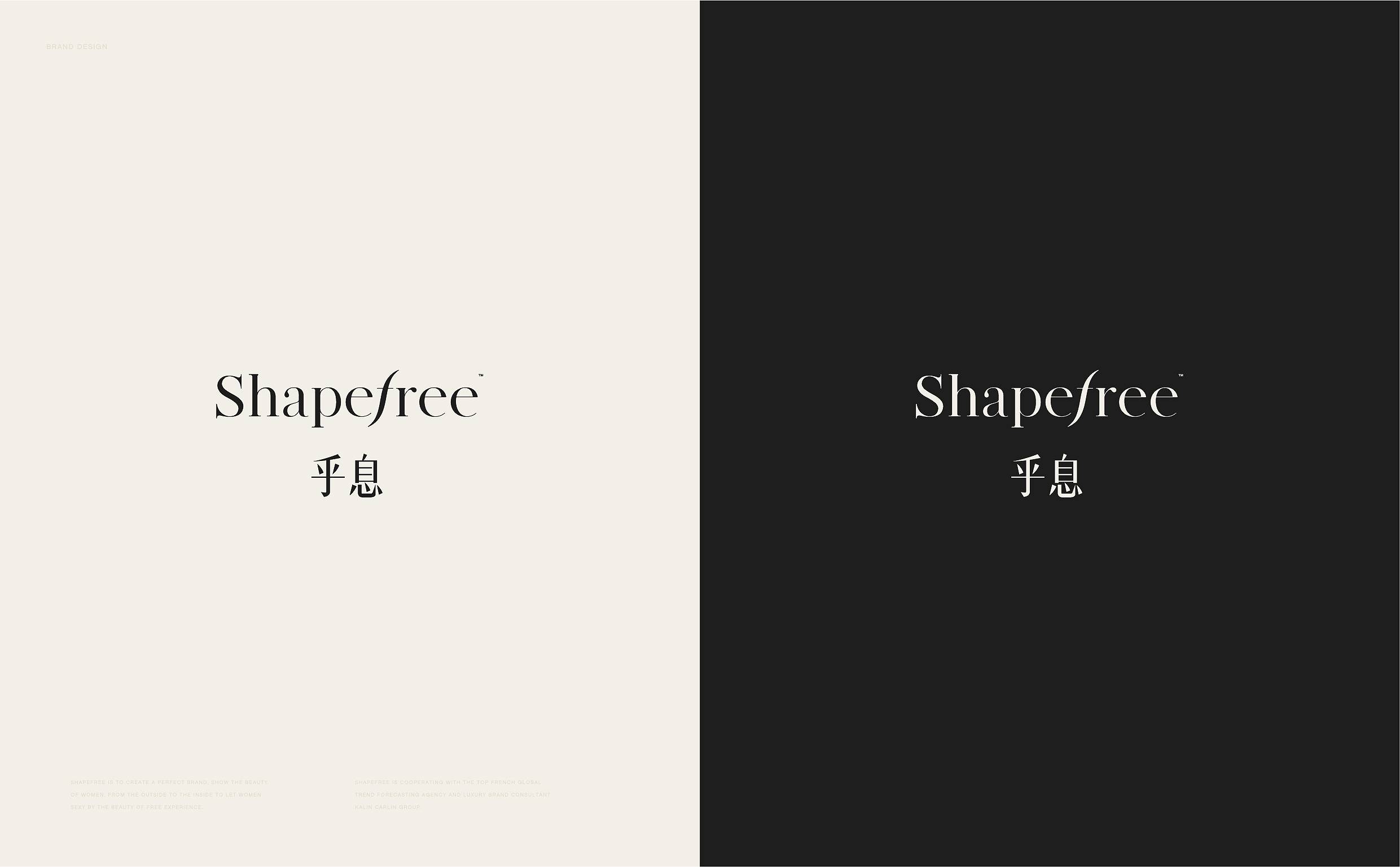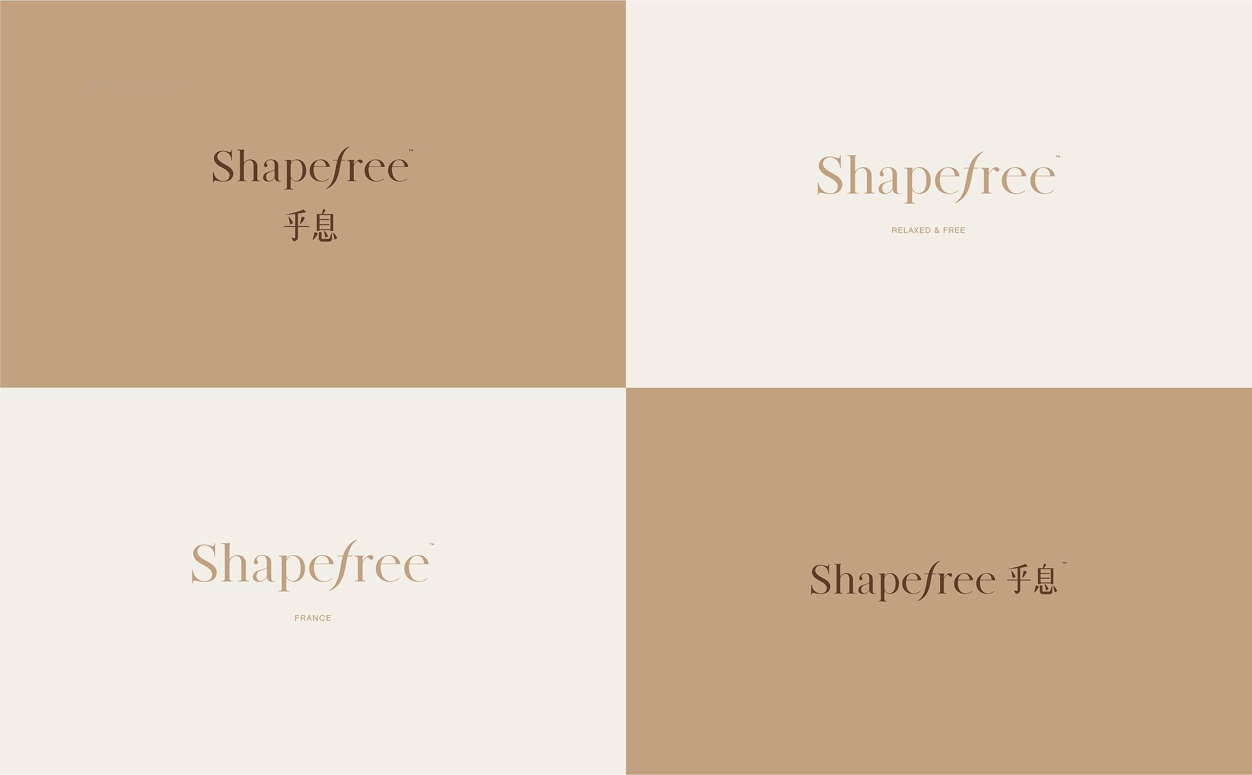 Shapefree的标识设计,以衬线体作为品牌的基础字形,每一处细节都做了曲线处理,简约优雅的线条,更耐看、更有现代气息。在此基础上,我们希望为品牌增加一个记忆点,一个包容、简约、且不突兀的点缀符号,对比了大量的尝试组合,最终选择了“S曲线美学”作为新的视觉记忆点。S与F的巧妙组合,呈现出一种极致的曲线之美,向外展现自由、质奢、活力的品牌姿态。