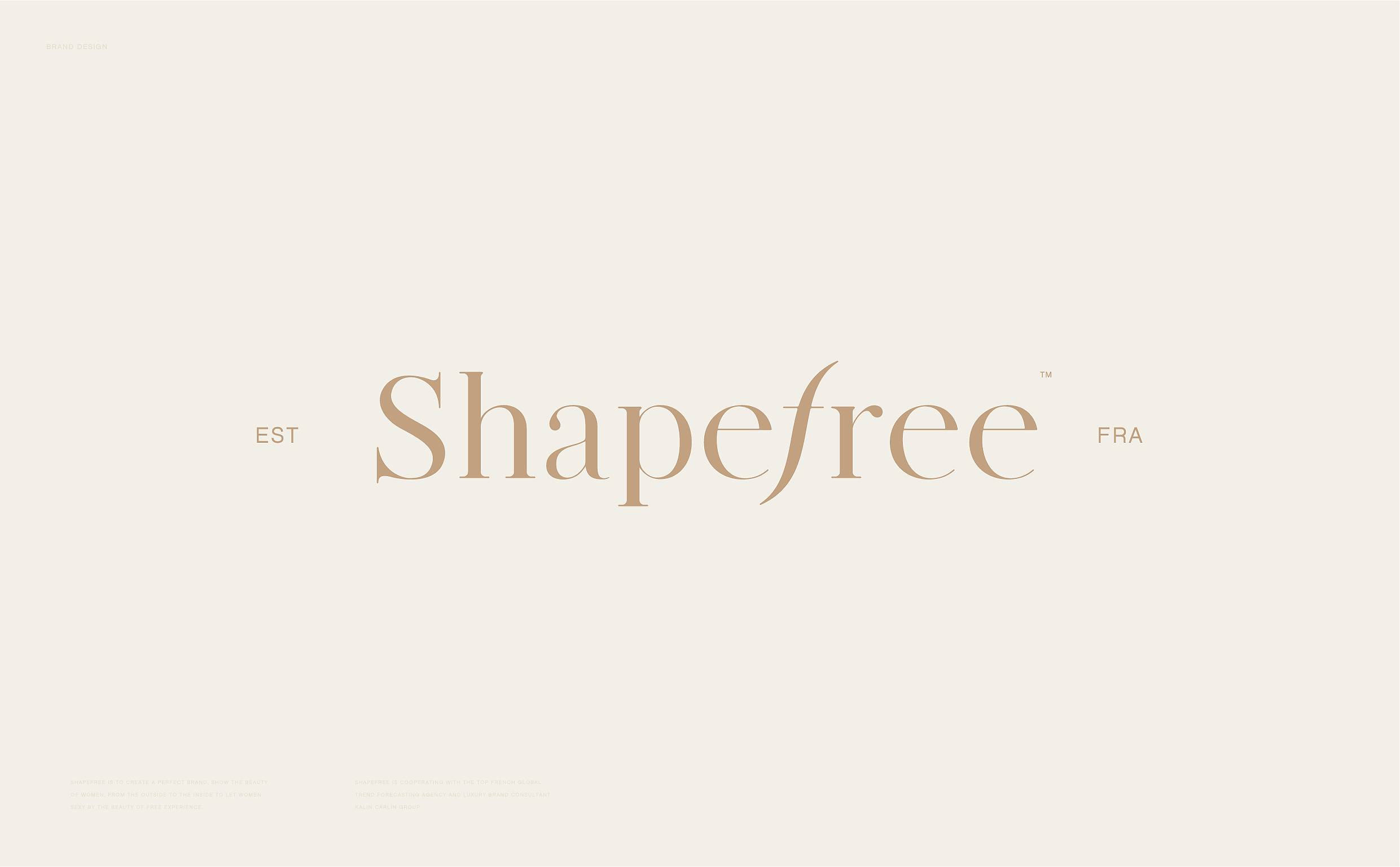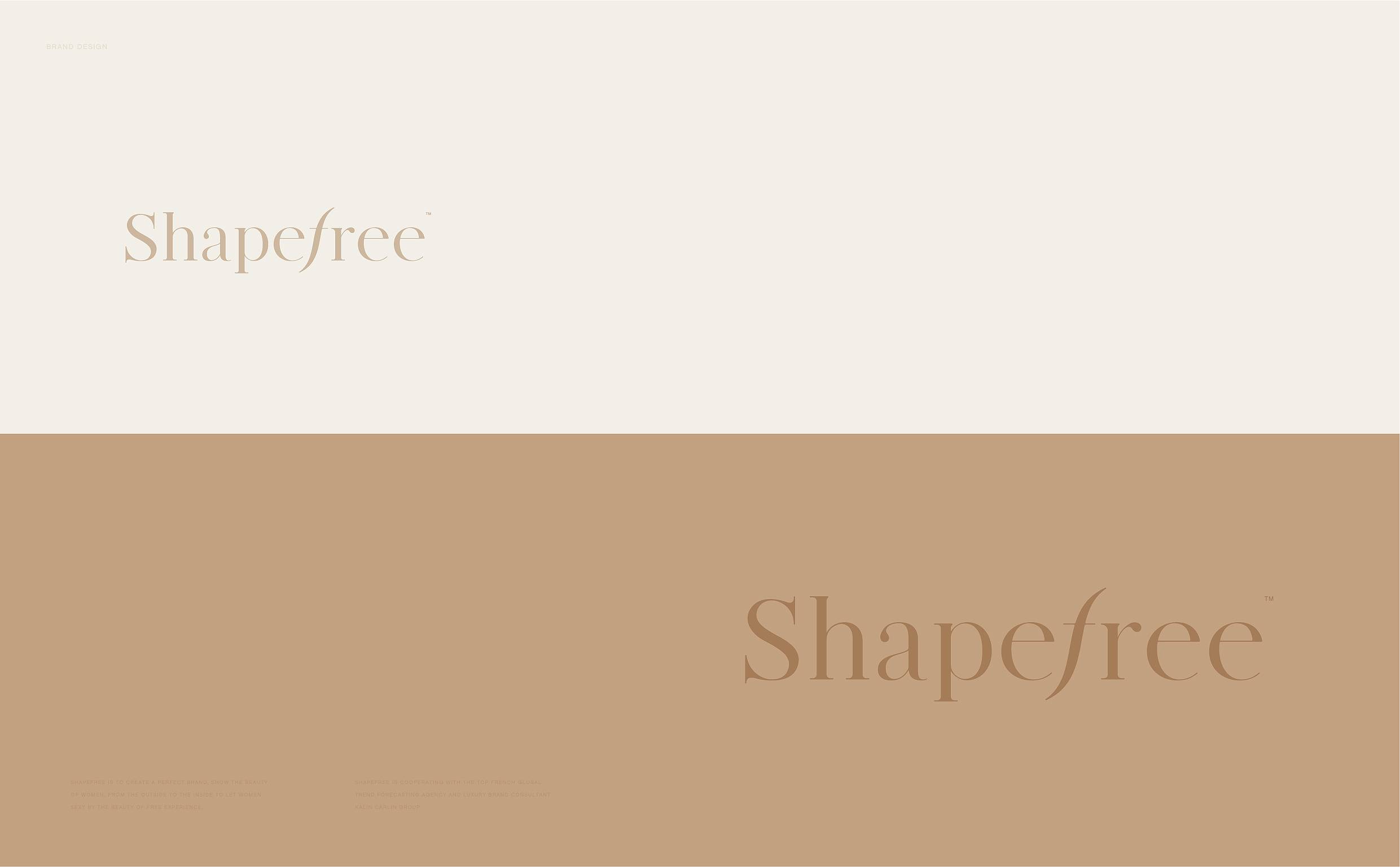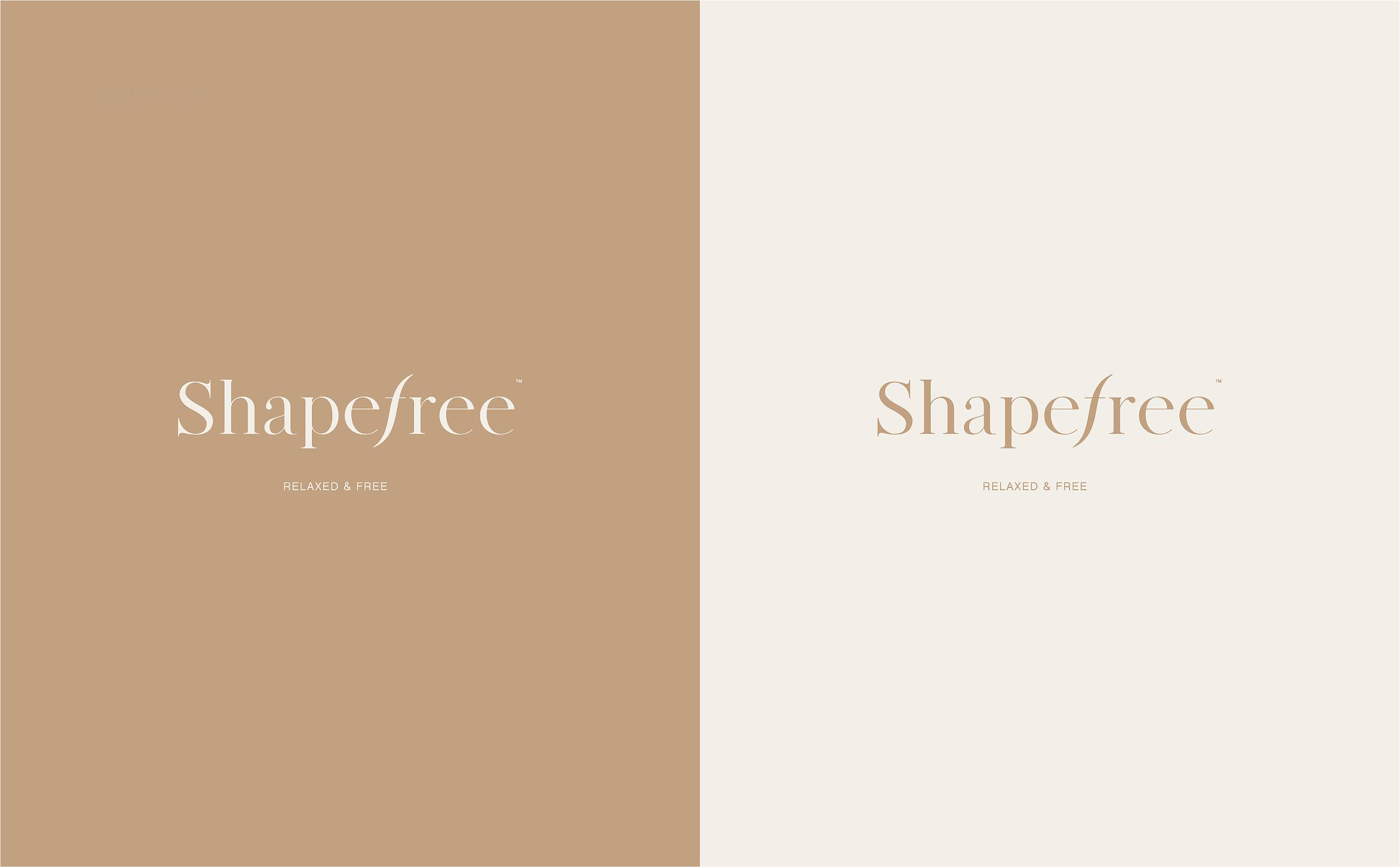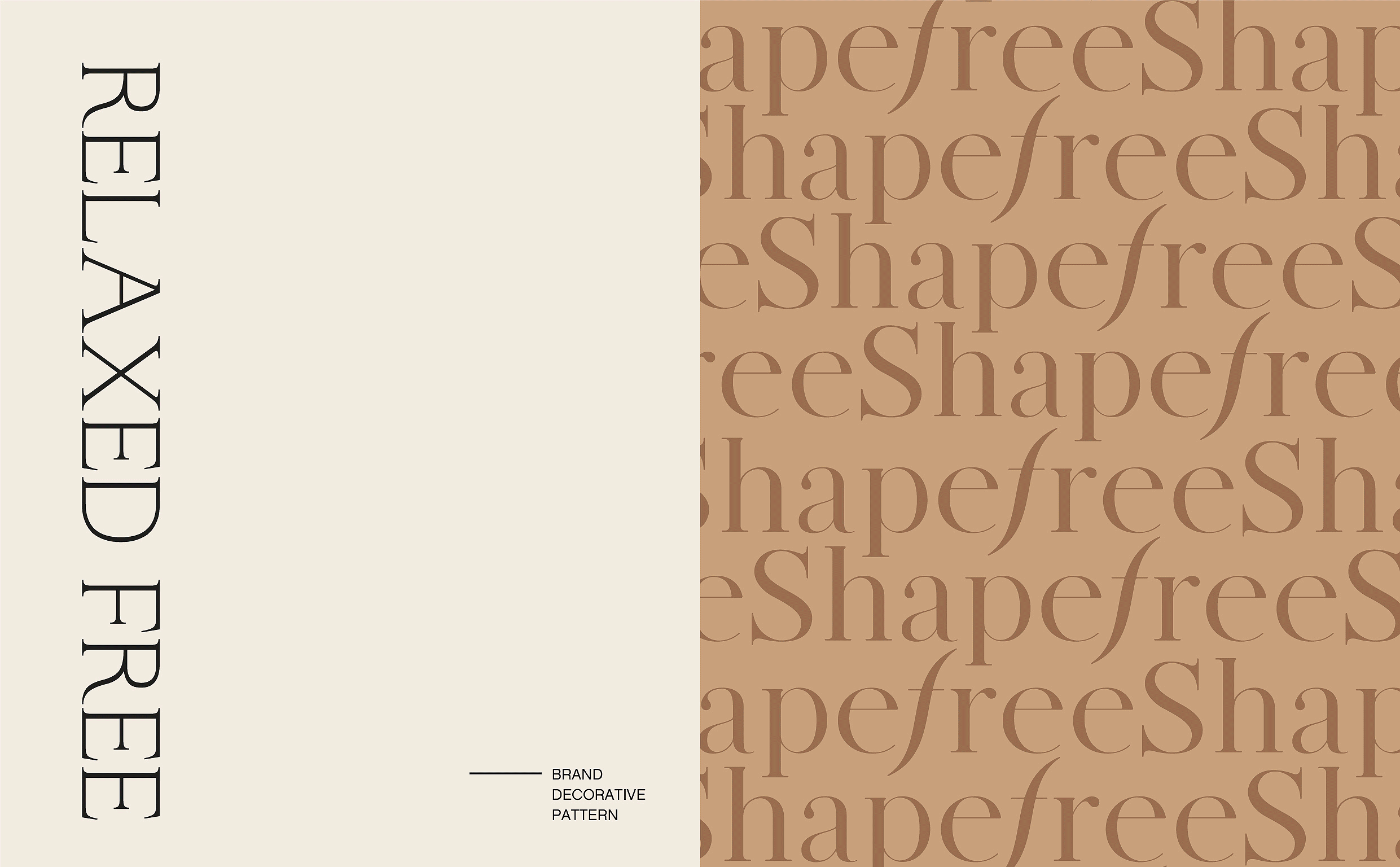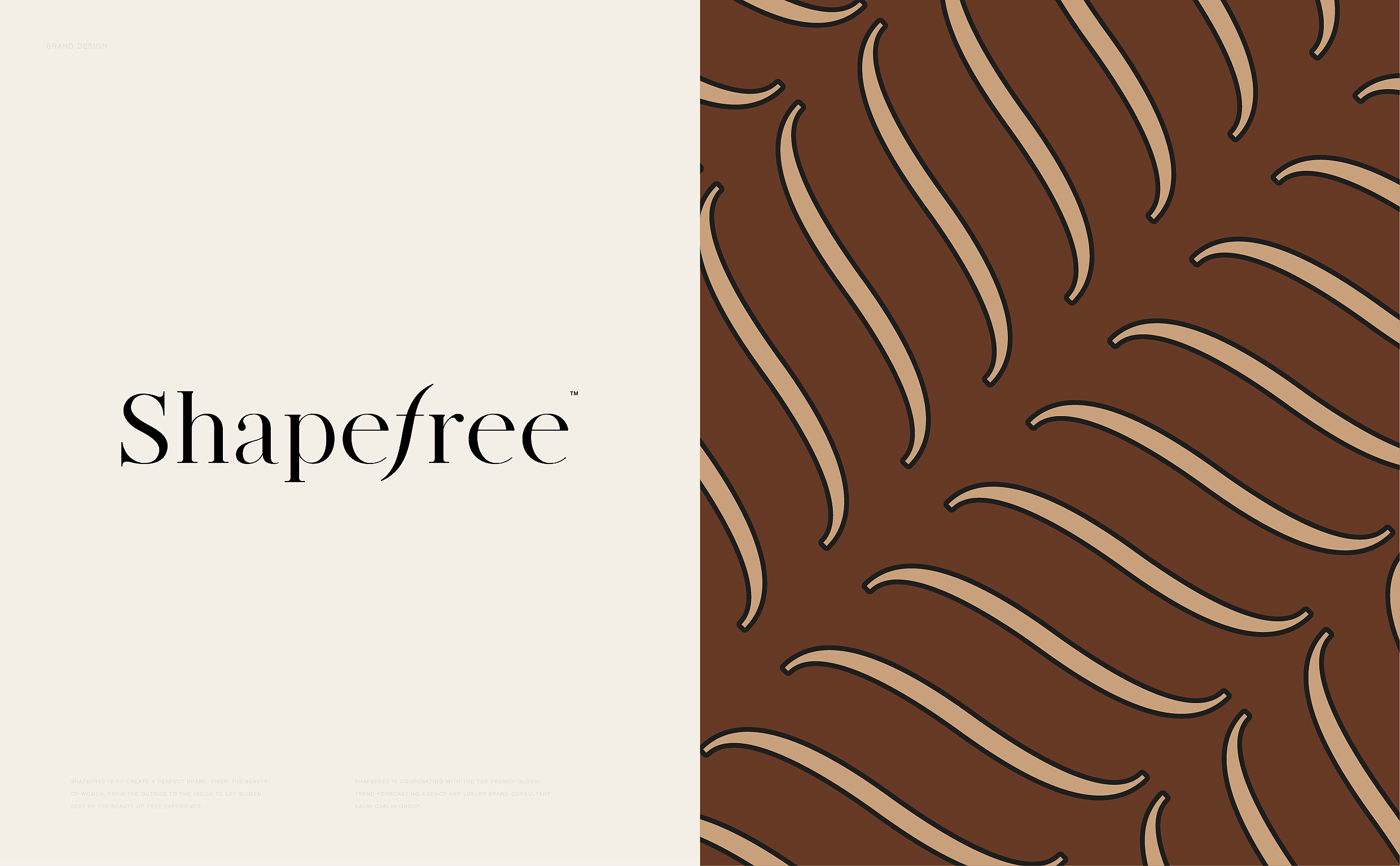 Shapefree的标识设计,以衬线体作为品牌的基础字形,每一处细节都做了曲线处理,简约优雅的线条,更耐看、更有现代气息。在此基础上,我们希望为品牌增加一个记忆点,一个包容、简约、且不突兀的点缀符号,对比了大量的尝试组合,最终选择了“S曲线美学”作为新的视觉记忆点。S与F的巧妙组合,呈现出一种极致的曲线之美,向外展现自由、质奢、活力的品牌姿态。