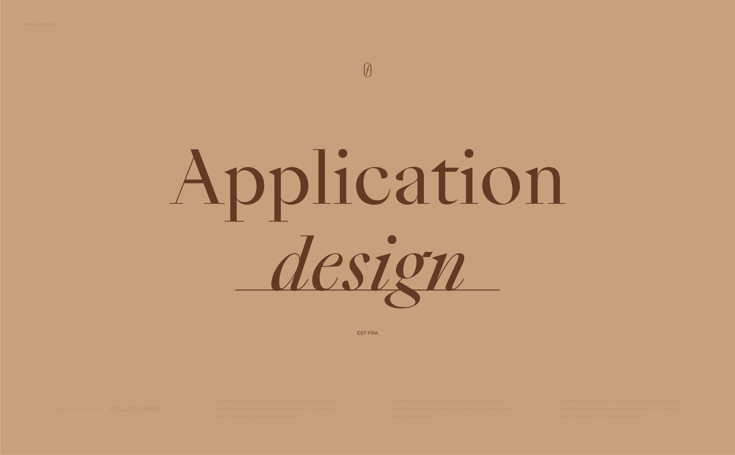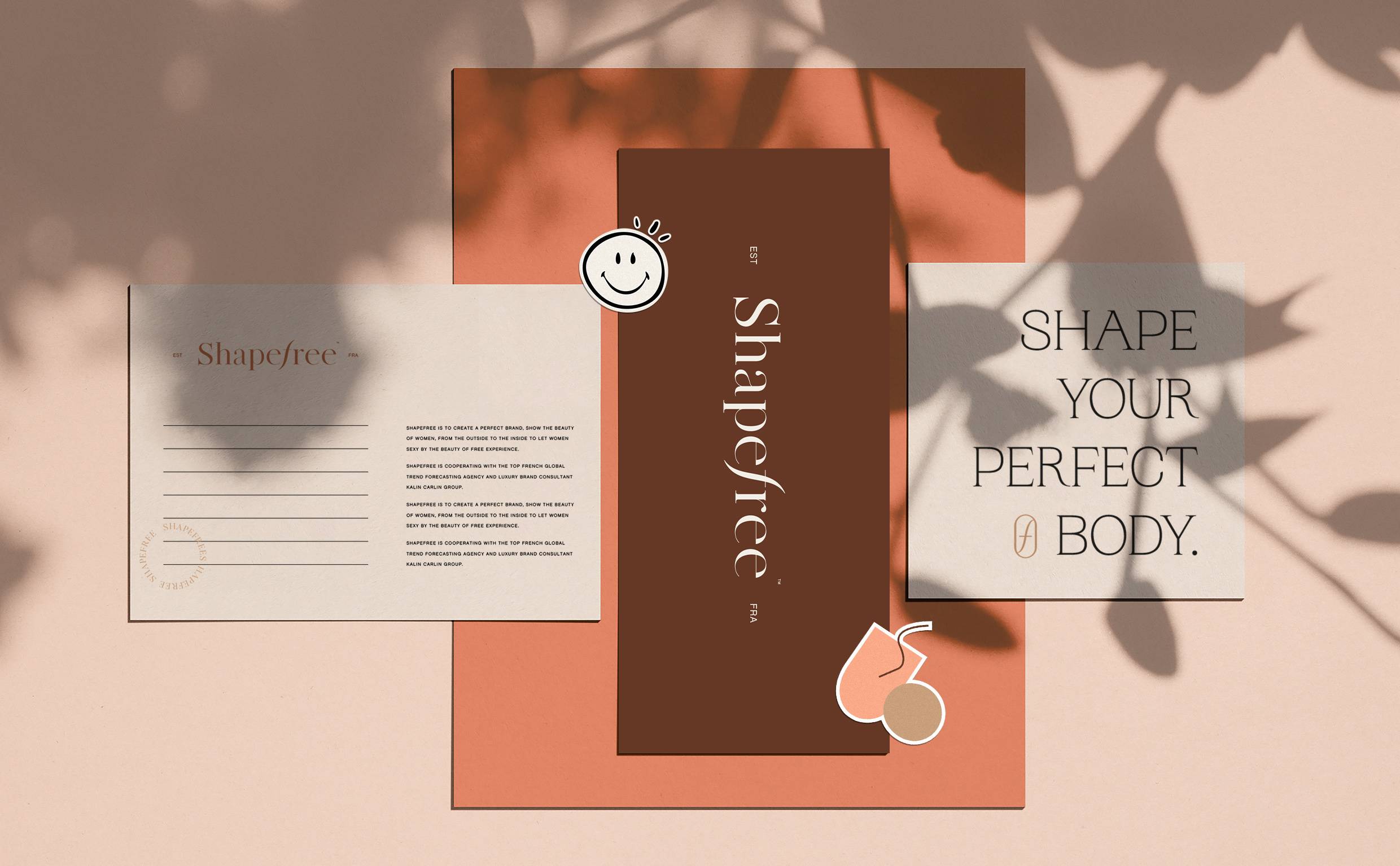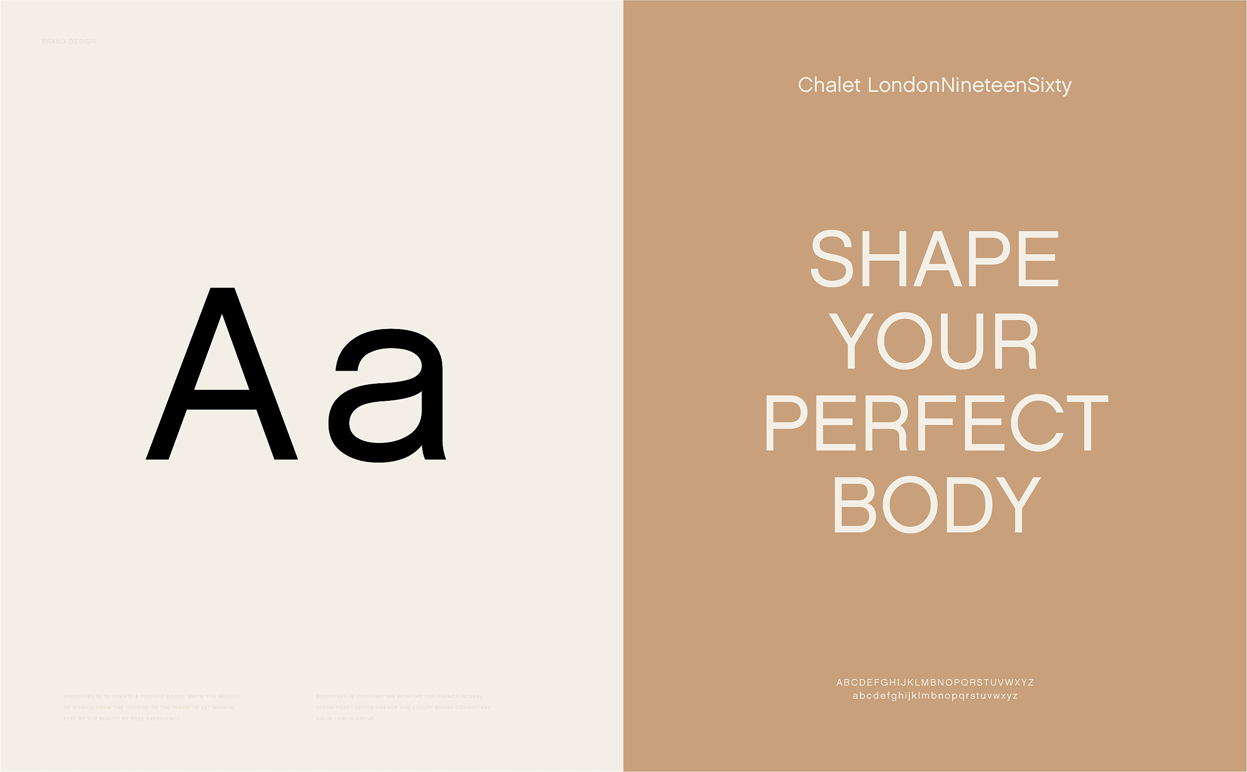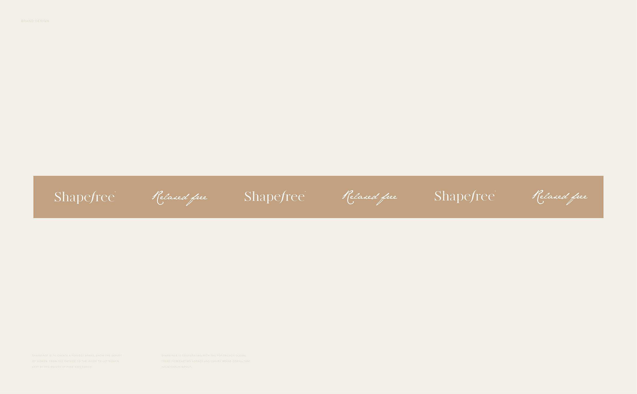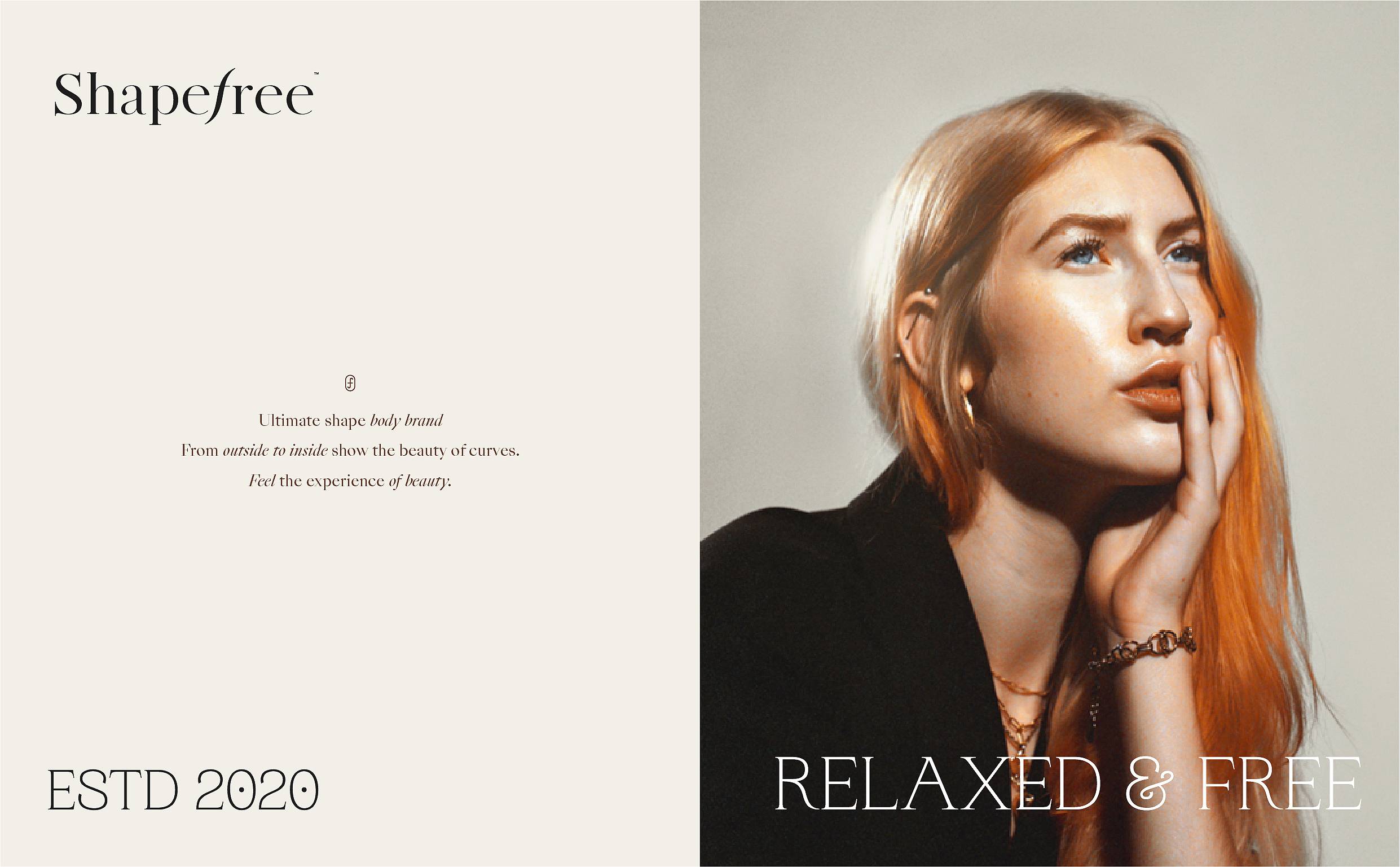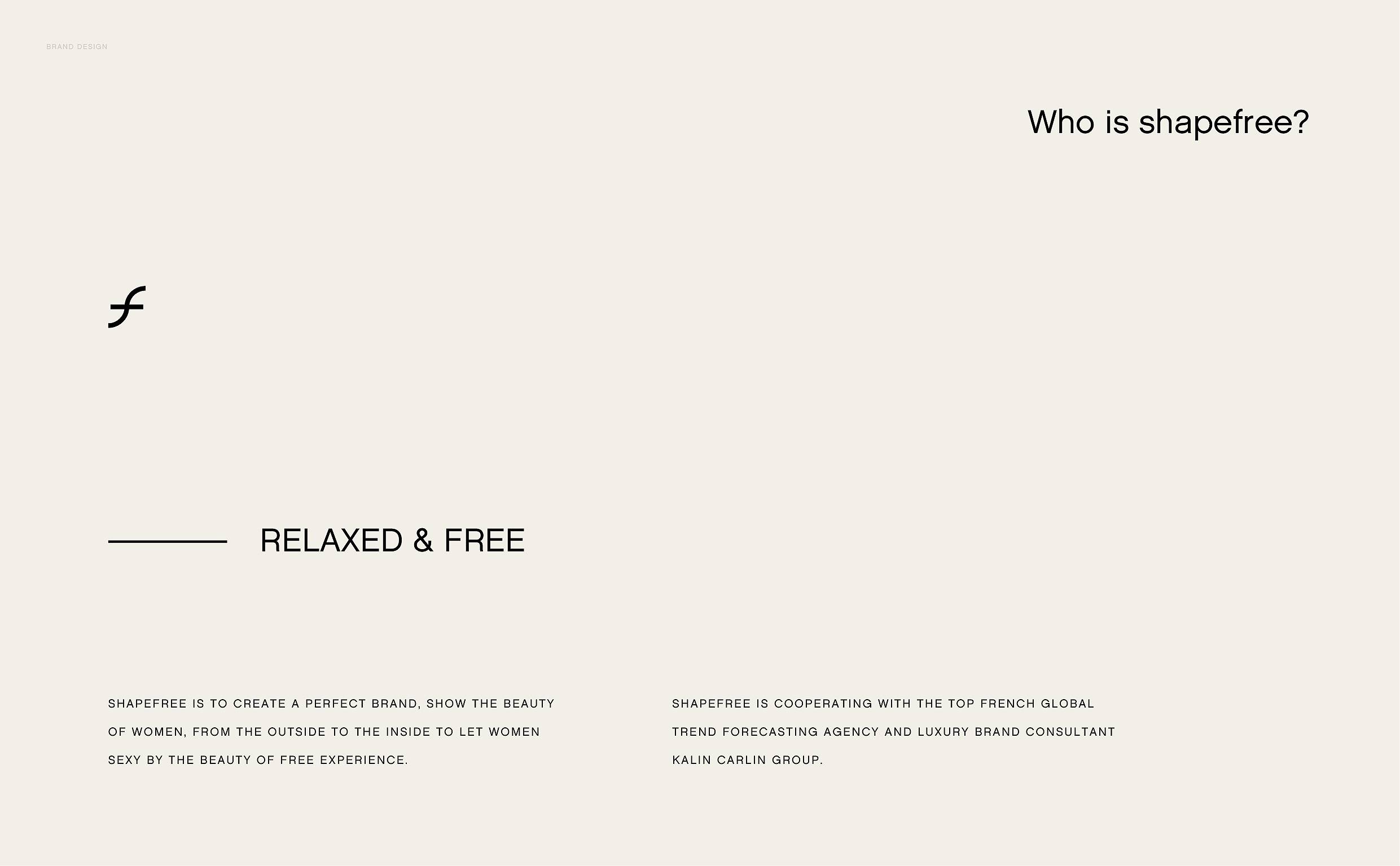 Shapefree的标识设计,以衬线体作为品牌的基础字形,每一处细节都做了曲线处理,简约优雅的线条,更耐看、更有现代气息。在此基础上,我们希望为品牌增加一个记忆点,一个包容、简约、且不突兀的点缀符号,对比了大量的尝试组合,最终选择了“S曲线美学”作为新的视觉记忆点。S与F的巧妙组合,呈现出一种极致的曲线之美,向外展现自由、质奢、活力的品牌姿态。