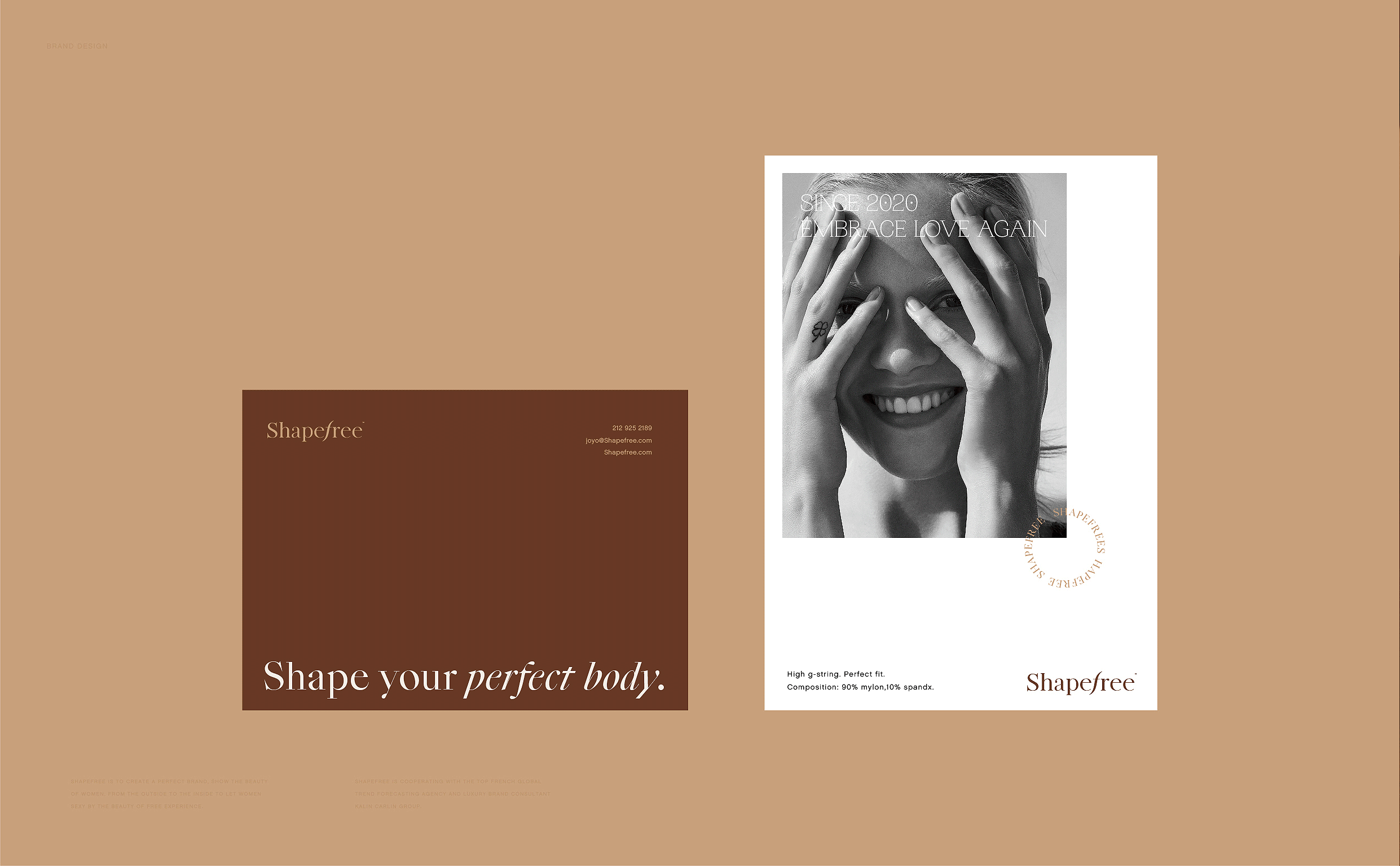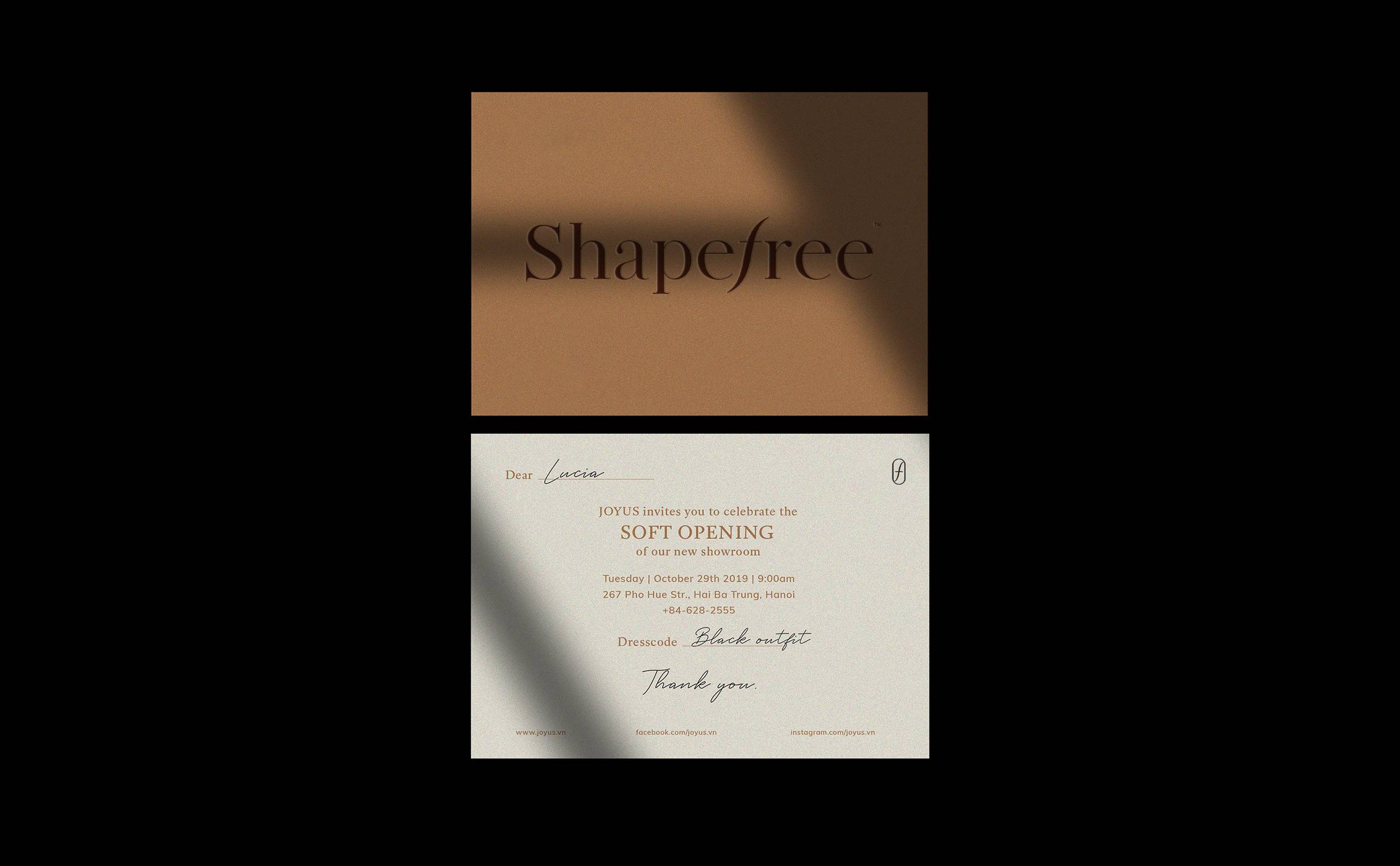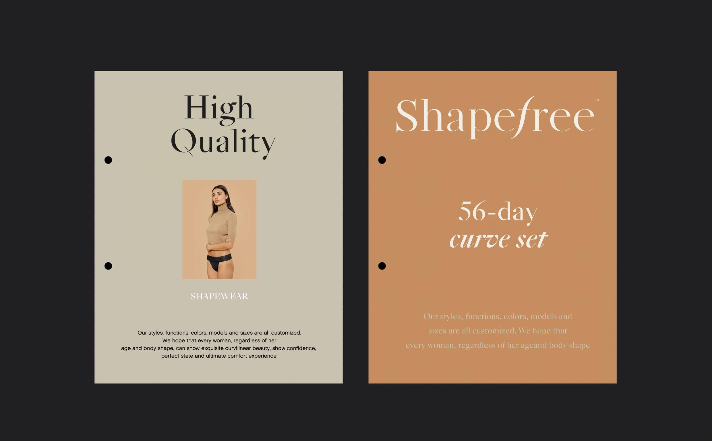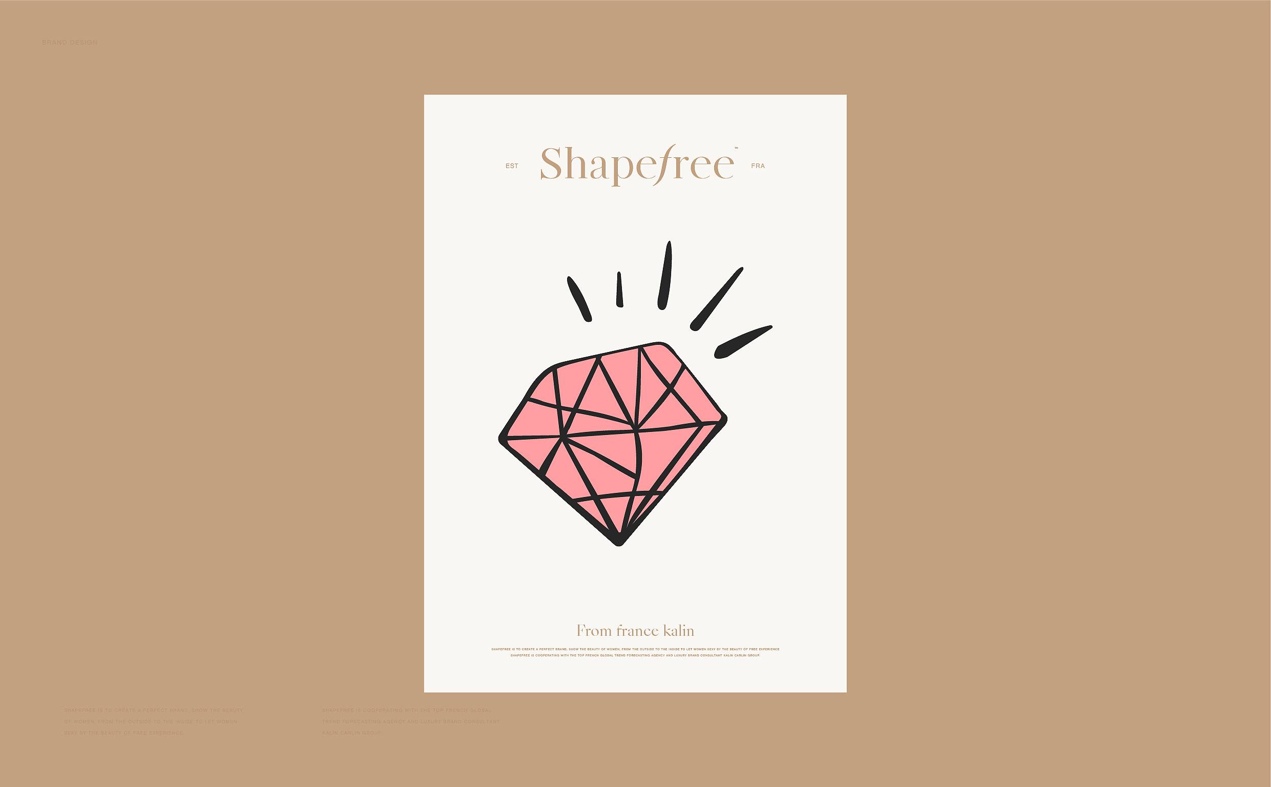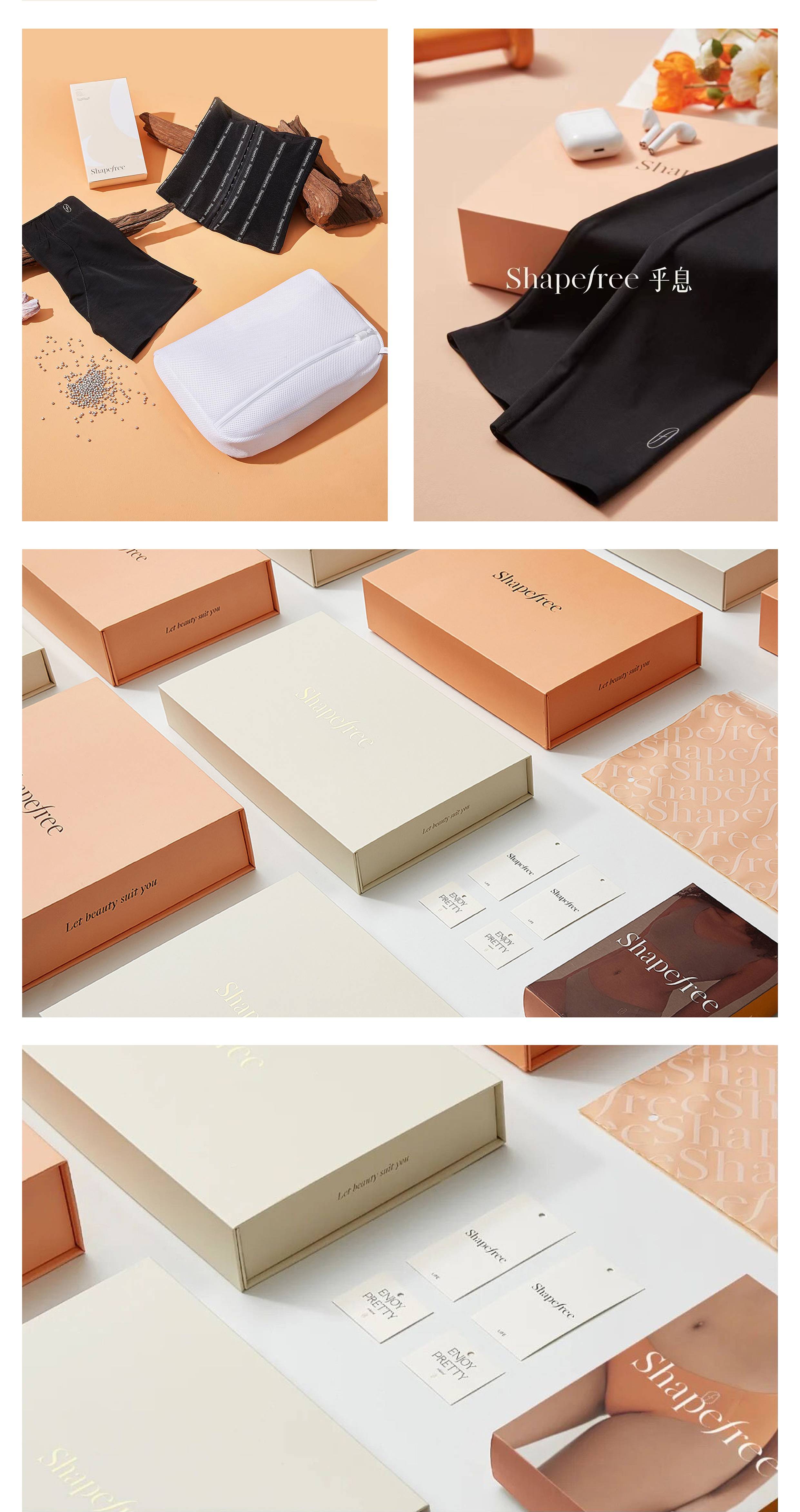 Shapefree的标识设计,以衬线体作为品牌的基础字形,每一处细节都做了曲线处理,简约优雅的线条,更耐看、更有现代气息。在此基础上,我们希望为品牌增加一个记忆点,一个包容、简约、且不突兀的点缀符号,对比了大量的尝试组合,最终选择了“S曲线美学”作为新的视觉记忆点。S与F的巧妙组合,呈现出一种极致的曲线之美,向外展现自由、质奢、活力的品牌姿态。