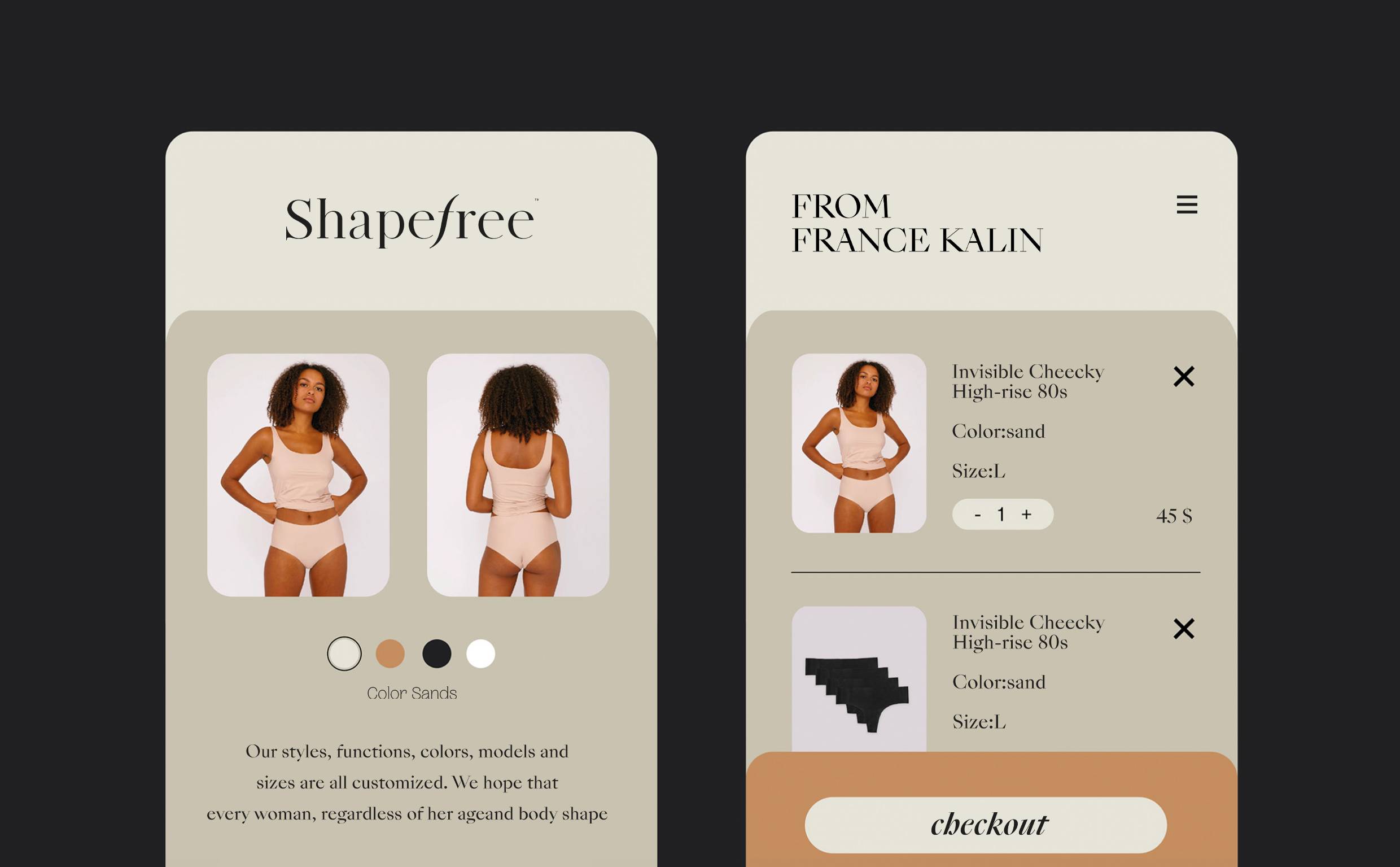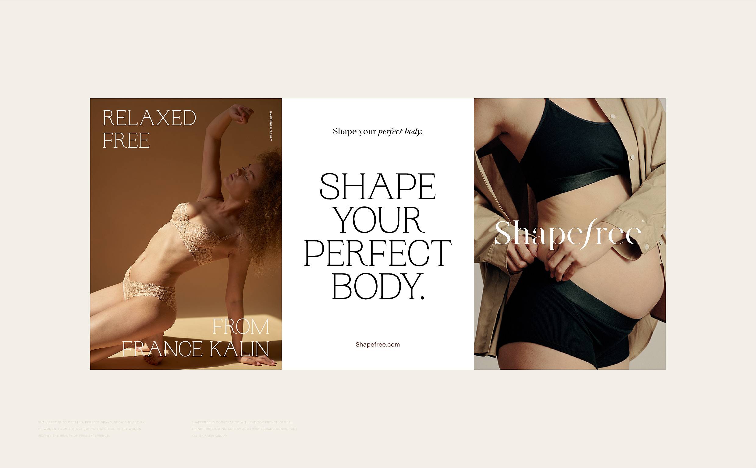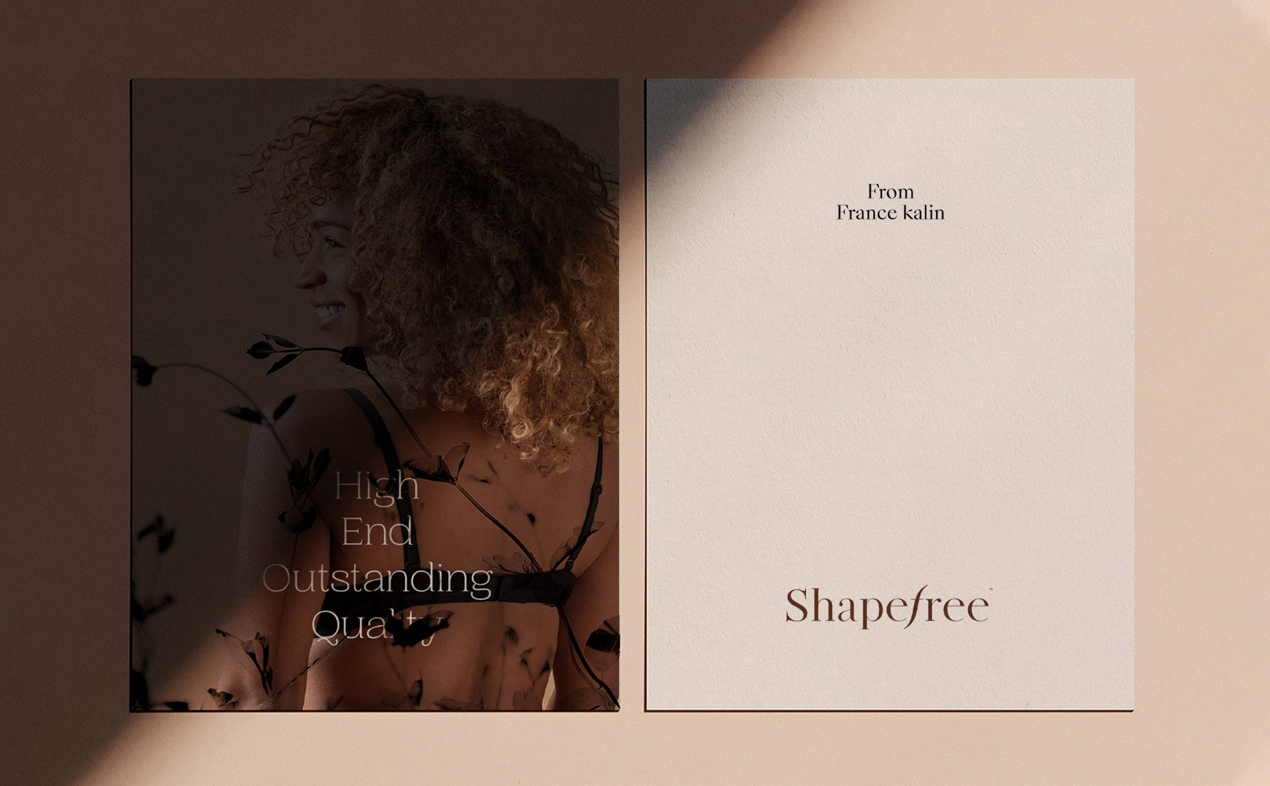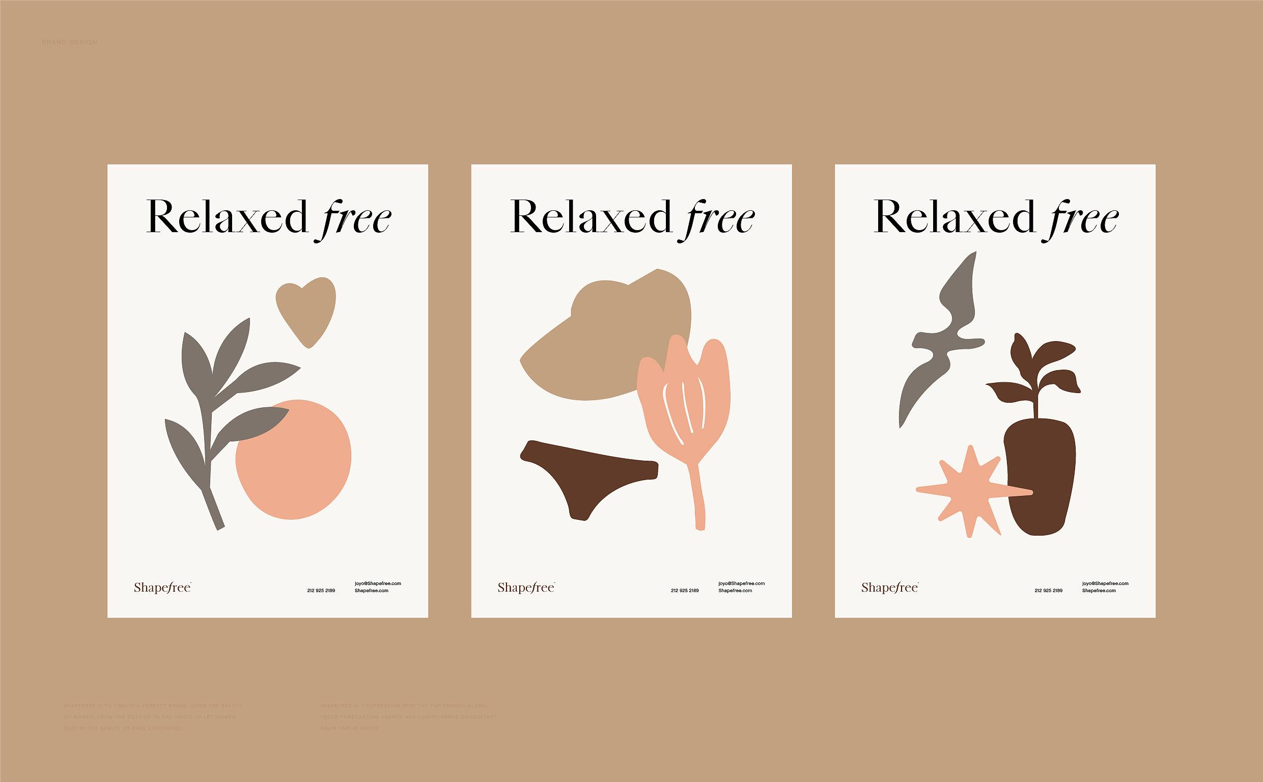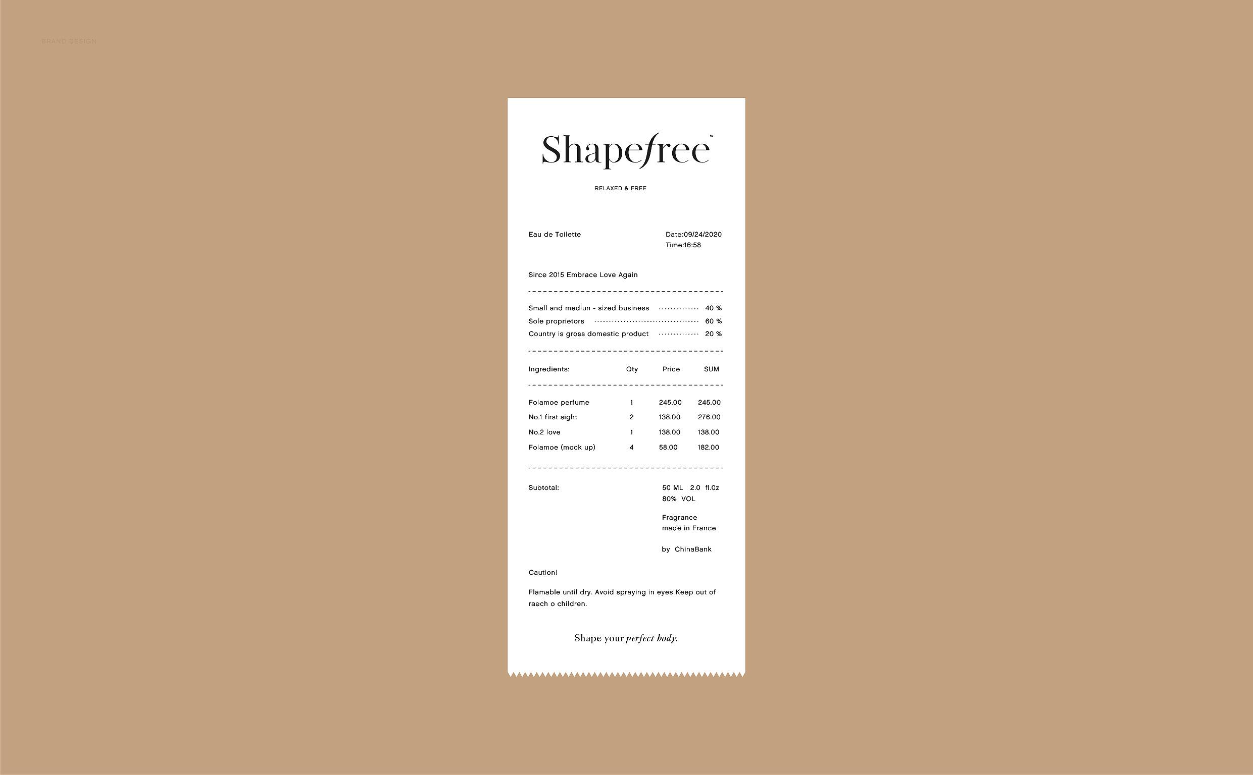 Shapefree的标识设计,以衬线体作为品牌的基础字形,每一处细节都做了曲线处理,简约优雅的线条,更耐看、更有现代气息。在此基础上,我们希望为品牌增加一个记忆点,一个包容、简约、且不突兀的点缀符号,对比了大量的尝试组合,最终选择了“S曲线美学”作为新的视觉记忆点。S与F的巧妙组合,呈现出一种极致的曲线之美,向外展现自由、质奢、活力的品牌姿态。