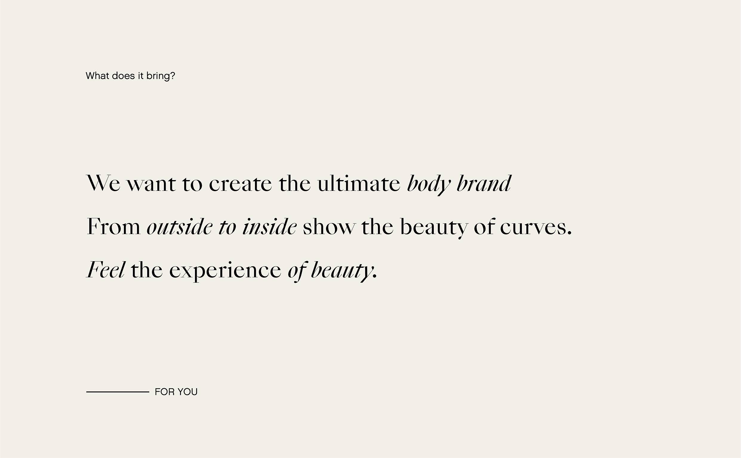 天地很大,美无处不在。乎息作为女性轻奢内衣品牌,为满足当代女性对美丽、舒适、品质的内衣需求而开发,希望从愉悦的身体触感起始,塑造形体曲线之美,激发内在的愉悦自信、积极快乐的态度,由外而内地让女性感受到美带来的自由体验。
