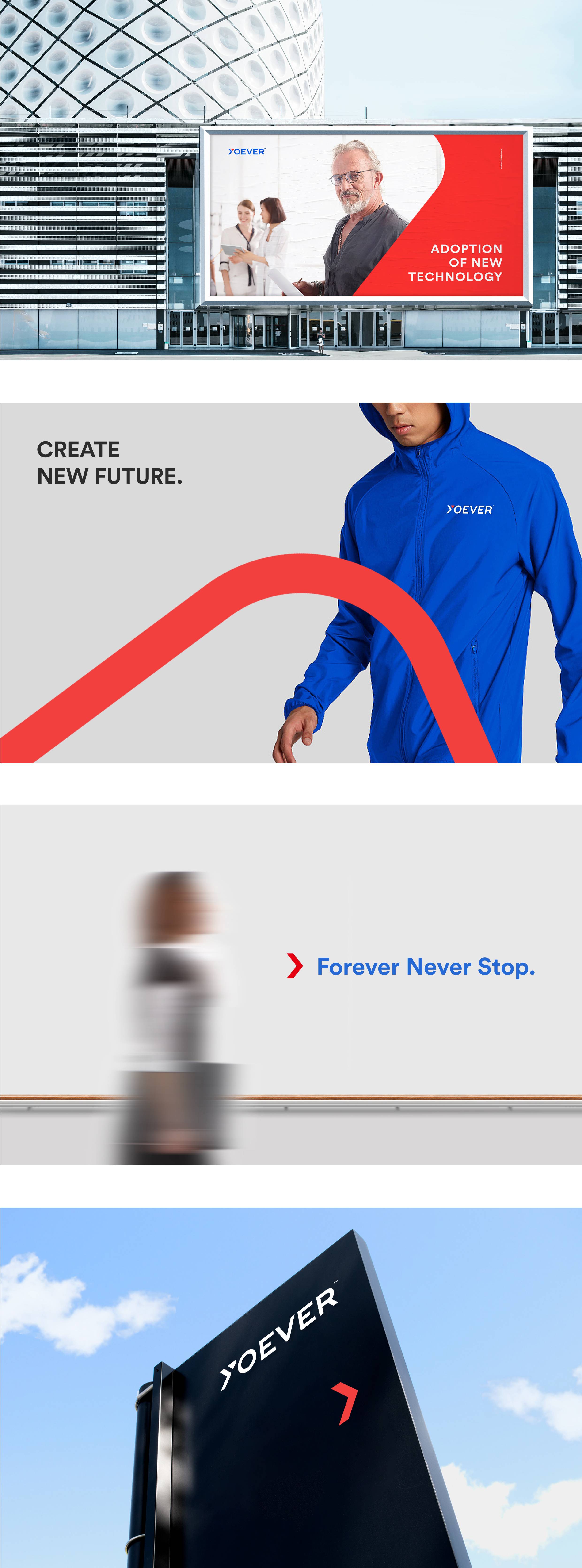 一个视觉上的符号想要被记住,一定是极简的、有特征的,在大量的尝试中,我们进行多次对比筛选,最后选择了小写“y”的变形,巧妙的将箭头、旗帜、数字“1”融入设计,形成前行、驱动、积极向上的品牌寓意。向上箭头,代表前进、驱动力;旗帜方向标,彰显永恒的行业地位与价值;数字“1”代表永恒超越同行的品质,做行业NO.1的品牌愿景!