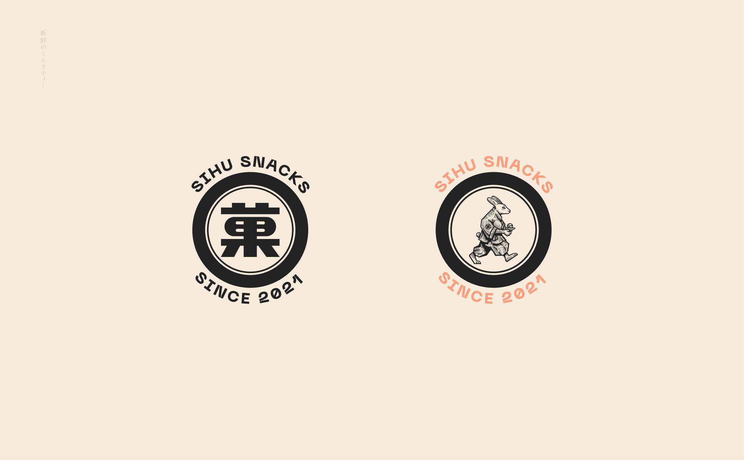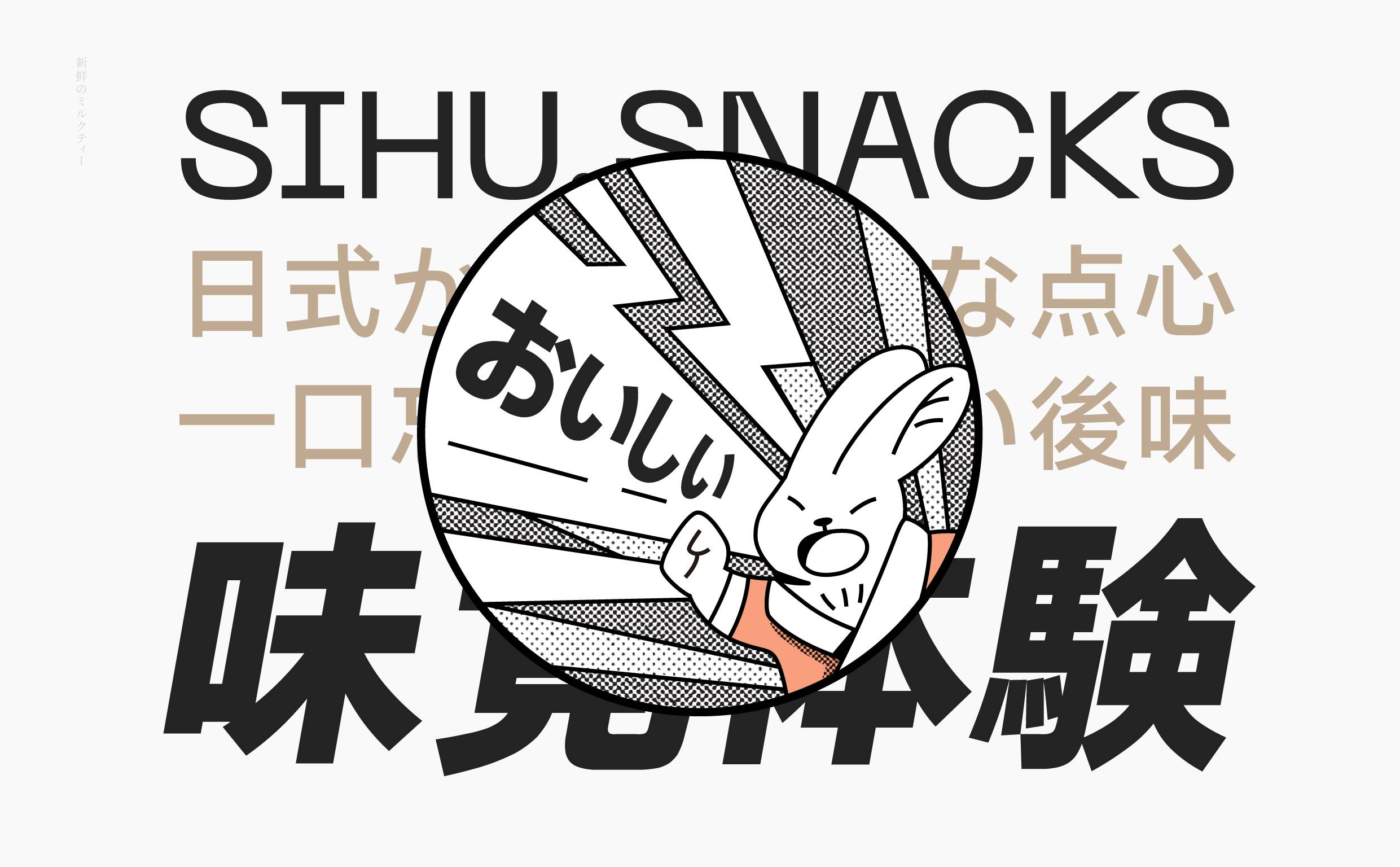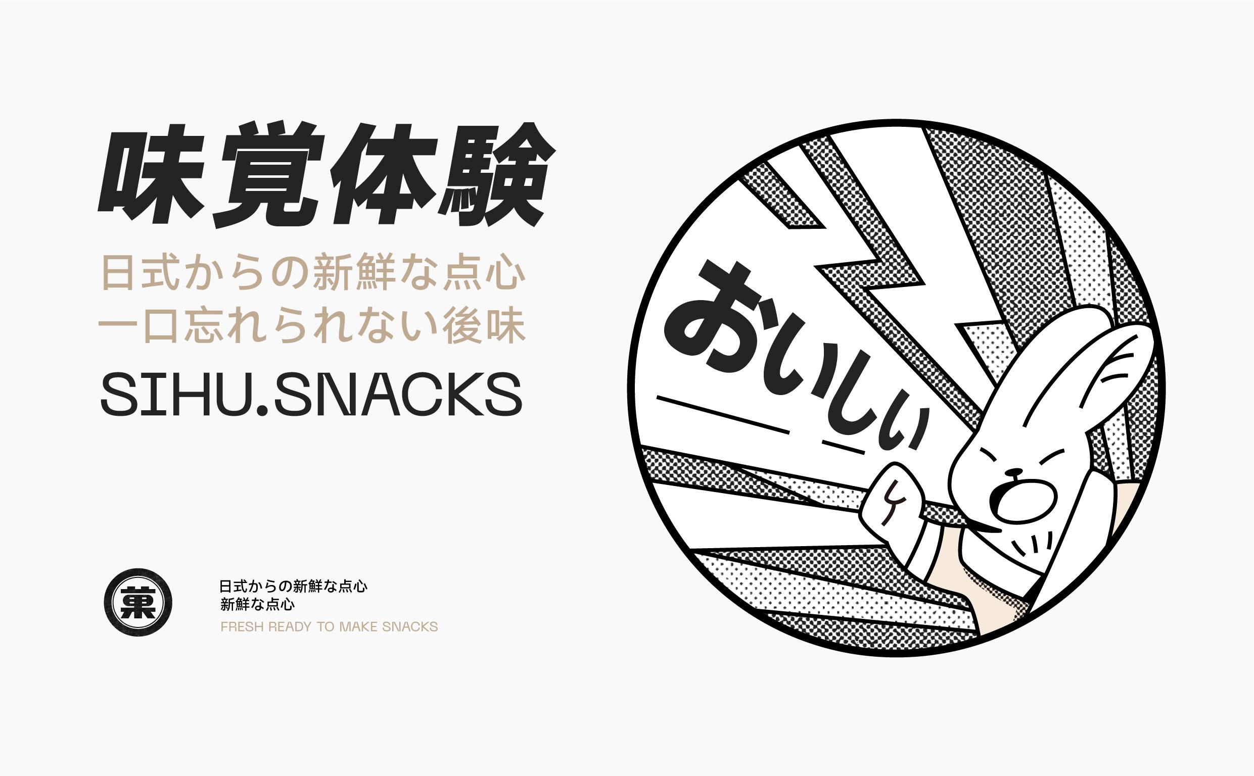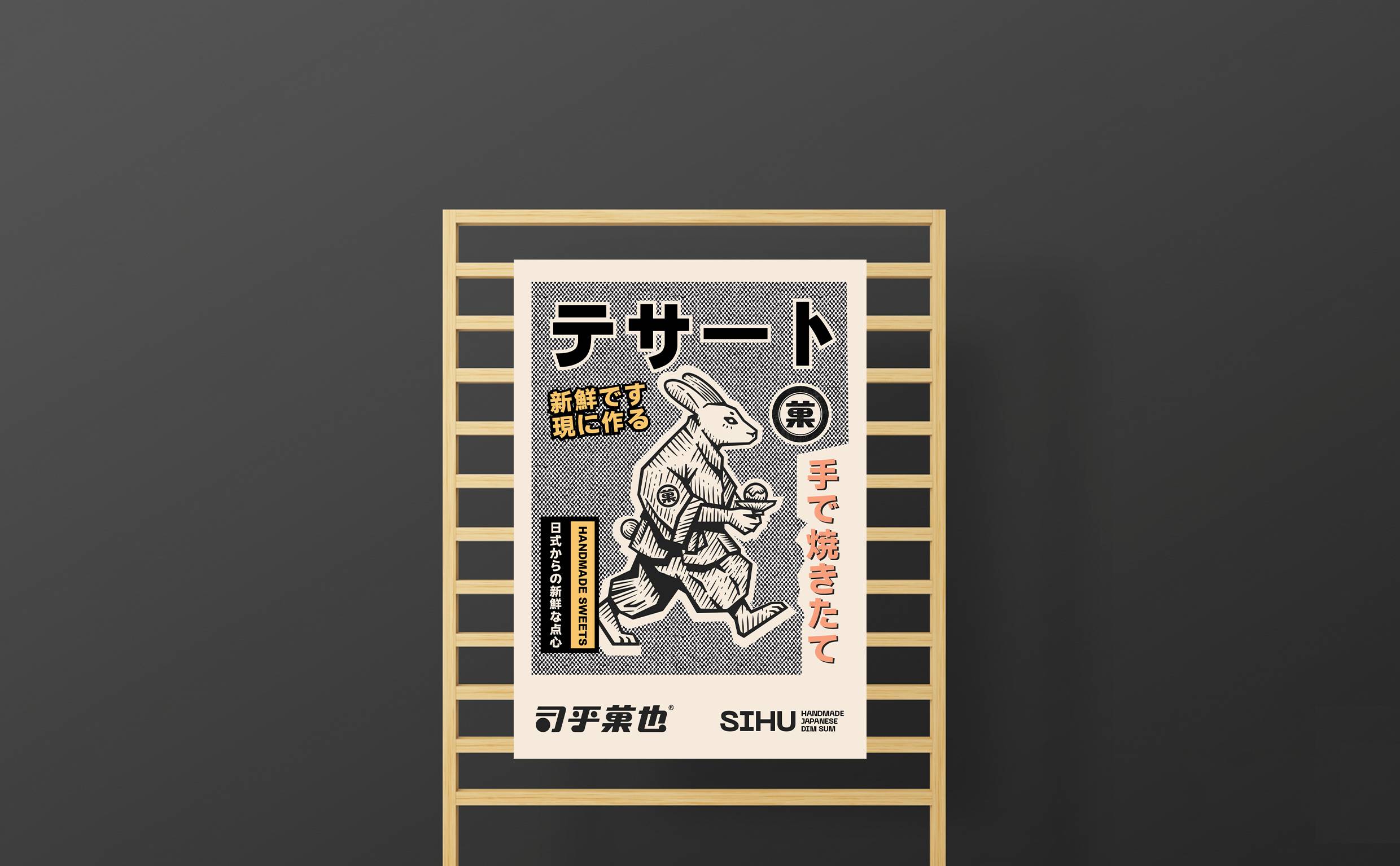 我们希望代表司乎·菓也的⽇式形象不是被同质化的,例如:⿅、达摩、熊,⽽是应该具备⼀定的差异化,又和⽇本有关联、但不容易被别的品牌所发现的,“兔”恰好满足这几点。并且,“兔”在⽇本、中国都是⼀个美好的字眼,既是人的⽣肖之一,也与人们的美好希望密切相连。基于兔子外形,我们将其拟人化,采用版画的绘画方式,塑造出了⼀个⼿⼯、匠⼼的视觉形象,强调品牌性格与⼿⼯感!