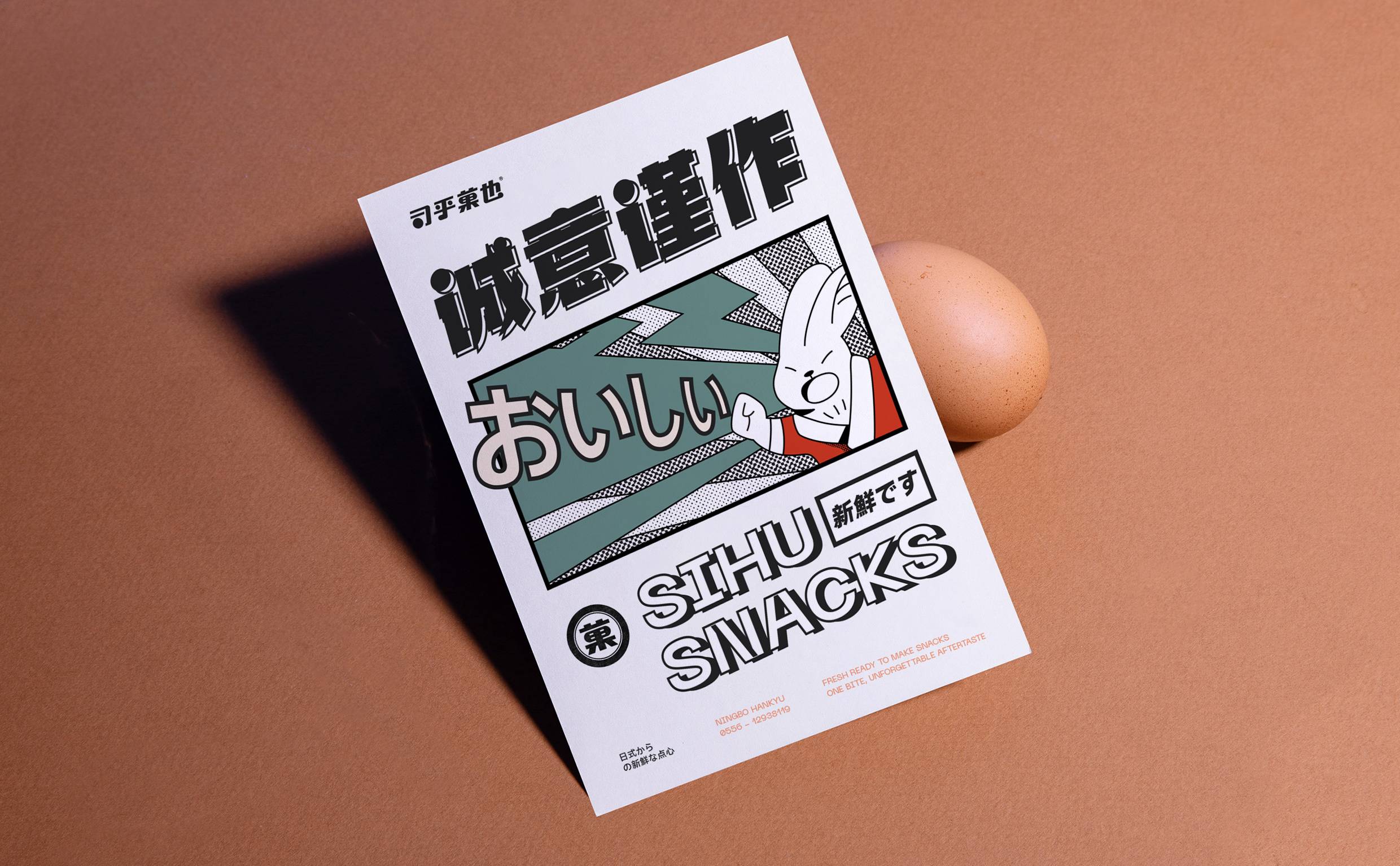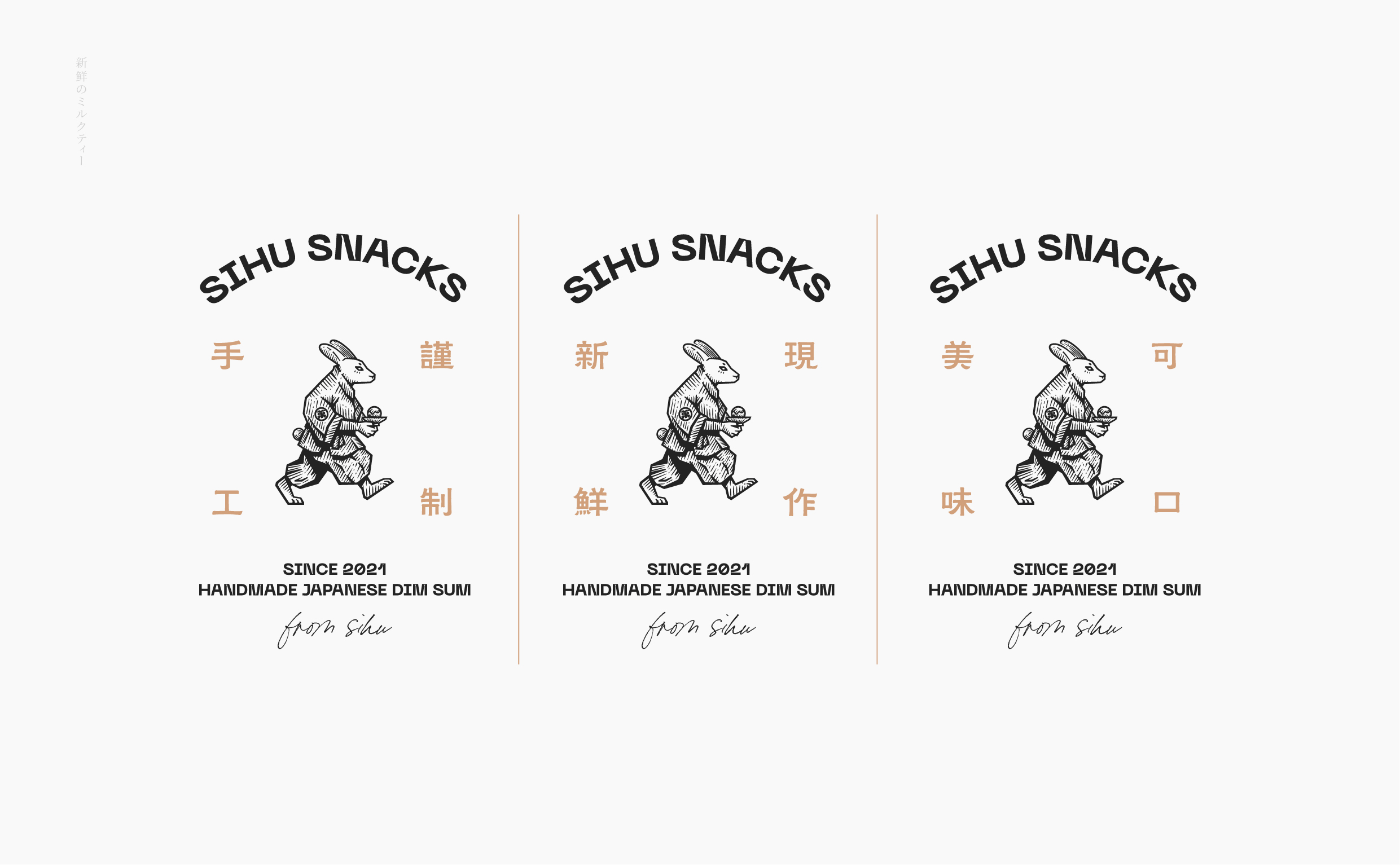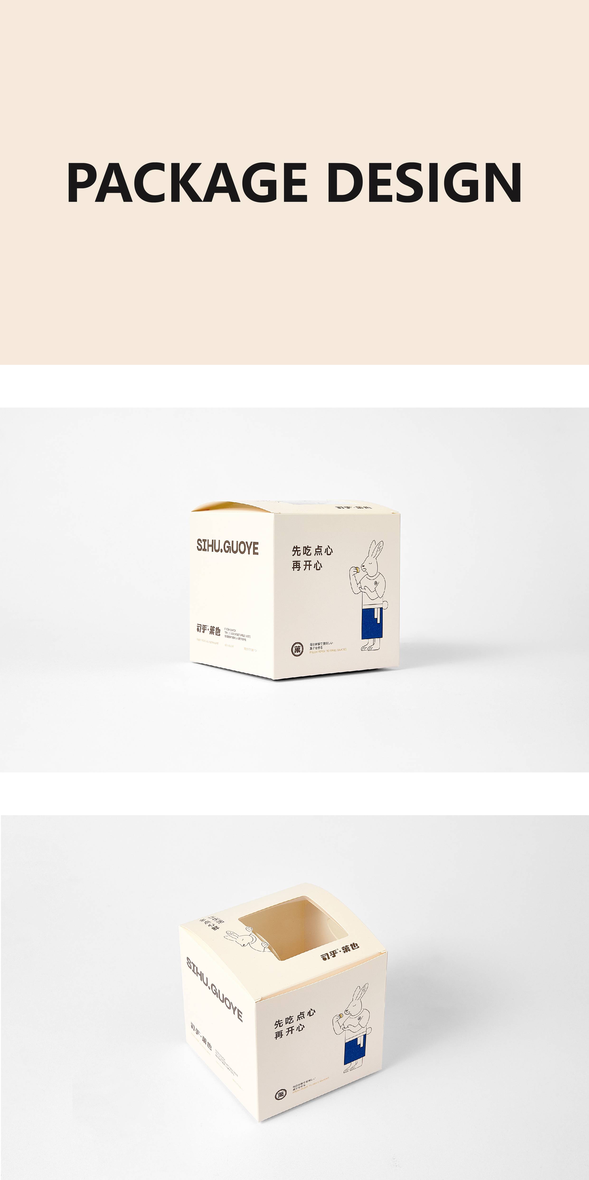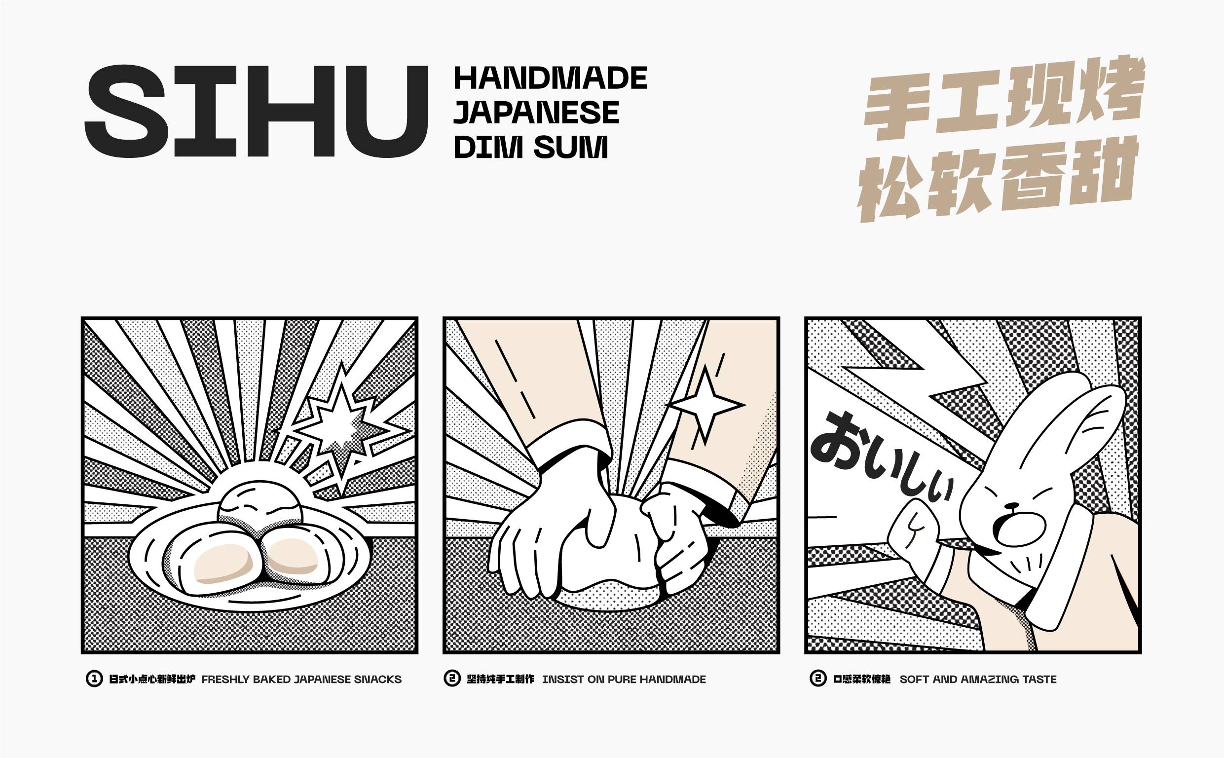 我们希望代表司乎·菓也的⽇式形象不是被同质化的,例如:⿅、达摩、熊,⽽是应该具备⼀定的差异化,又和⽇本有关联、但不容易被别的品牌所发现的,“兔”恰好满足这几点。并且,“兔”在⽇本、中国都是⼀个美好的字眼,既是人的⽣肖之一,也与人们的美好希望密切相连。基于兔子外形,我们将其拟人化,采用版画的绘画方式,塑造出了⼀个⼿⼯、匠⼼的视觉形象,强调品牌性格与⼿⼯感!