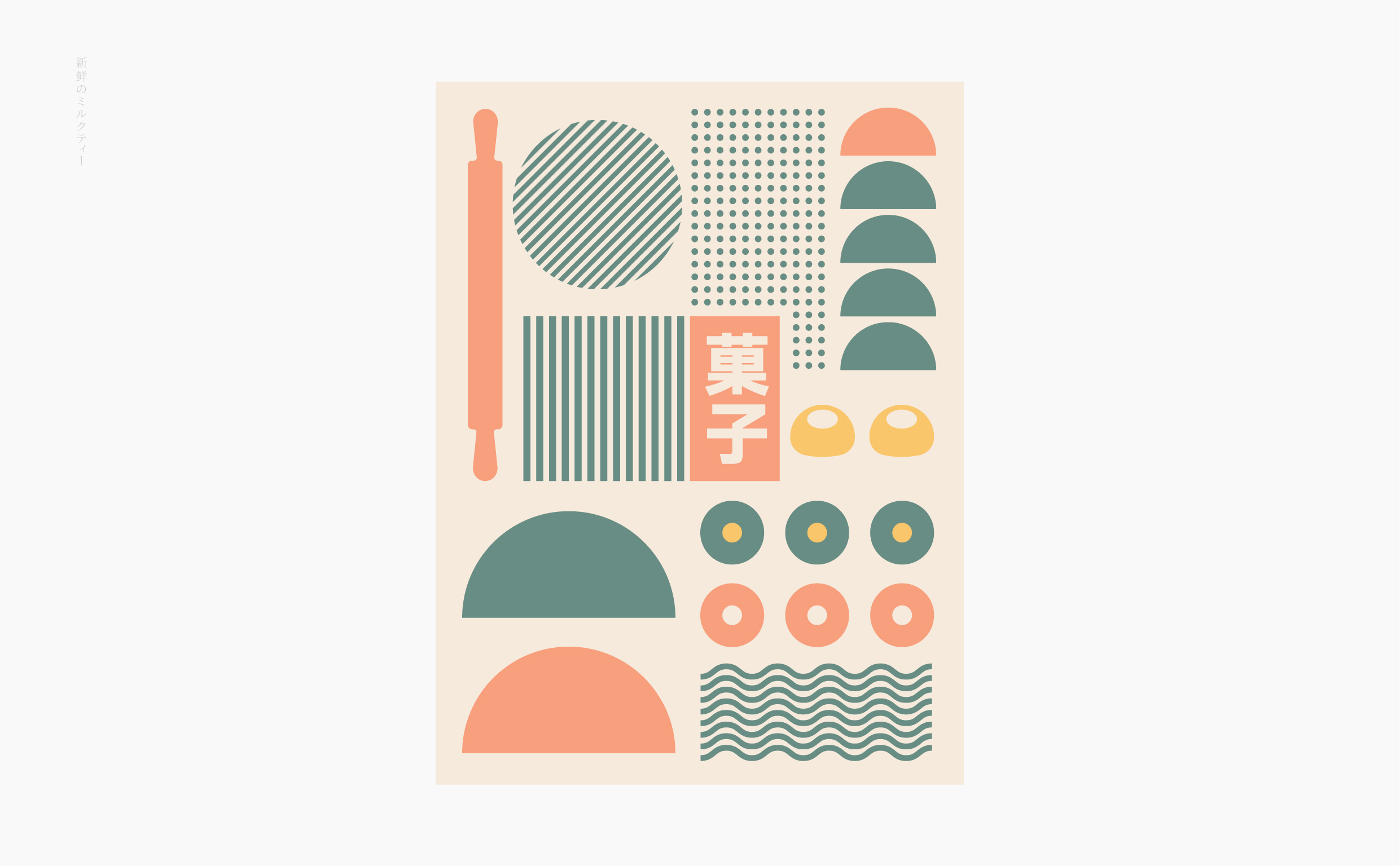除了字体标识设计,我们还提炼了“菓” 作为品类符号呈现,“菓”——⽂字:传达品类差异化;外框:传达浓郁的日式风格。字体与符号,二者互不影响,可拆分使用,能适用于更多使用场景,增强了品牌的向外输出力。