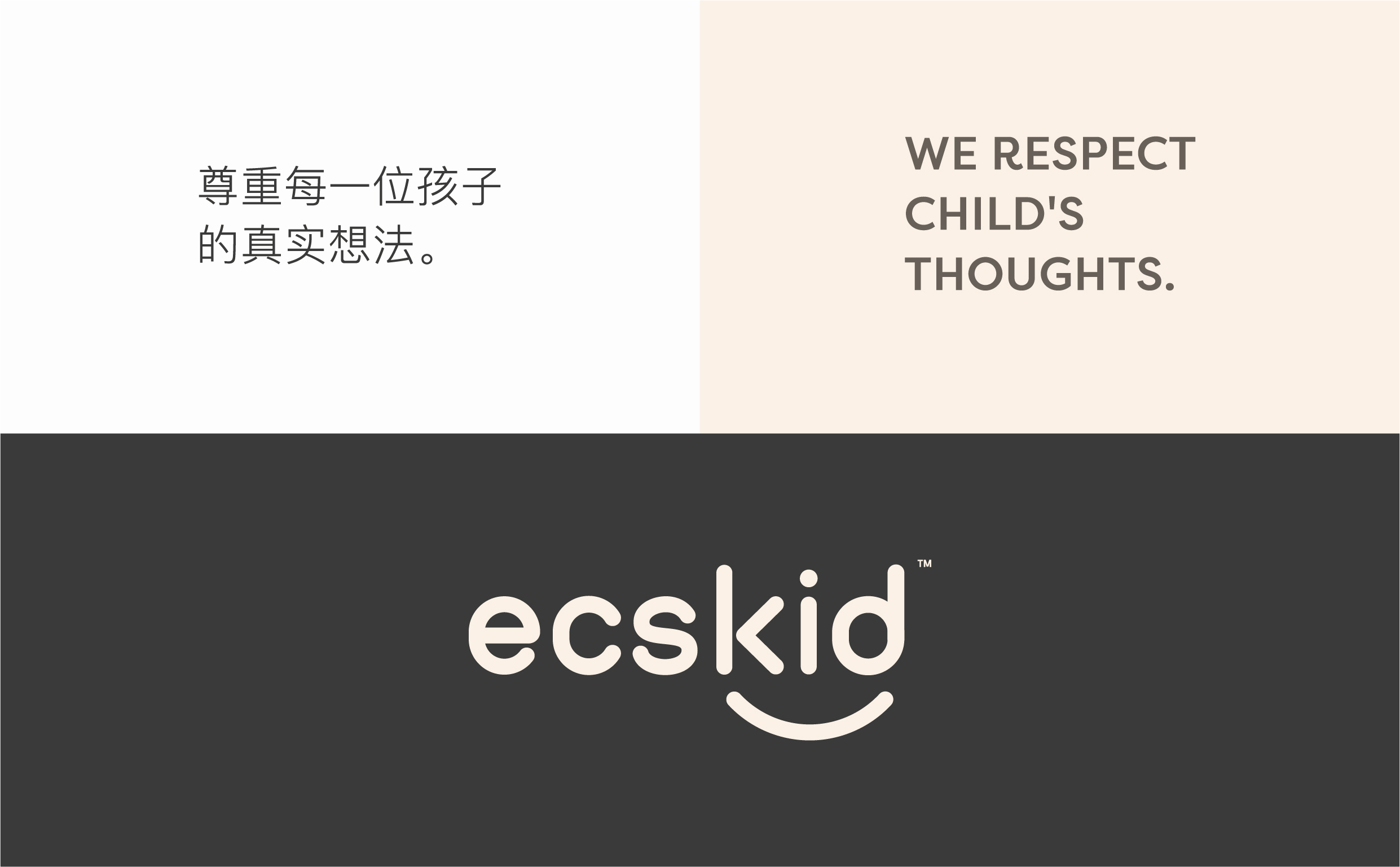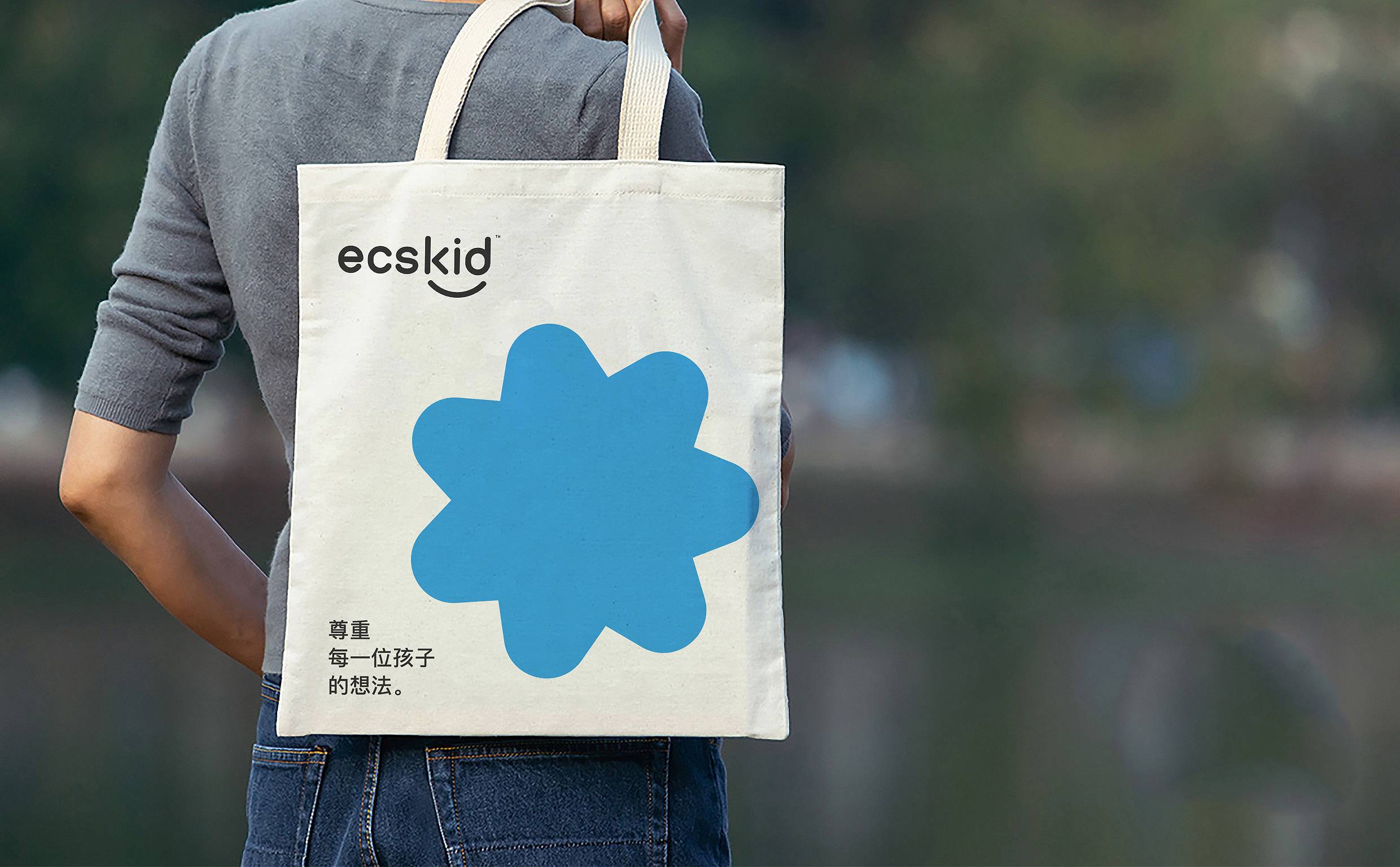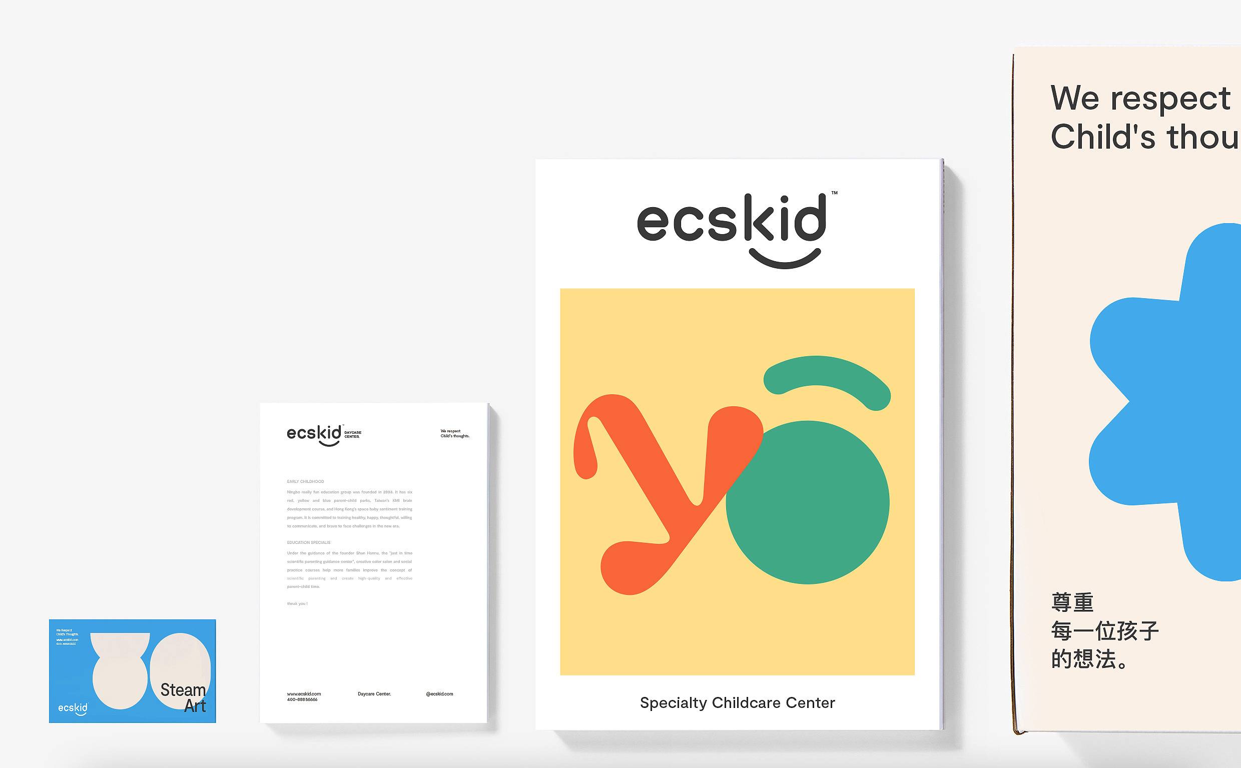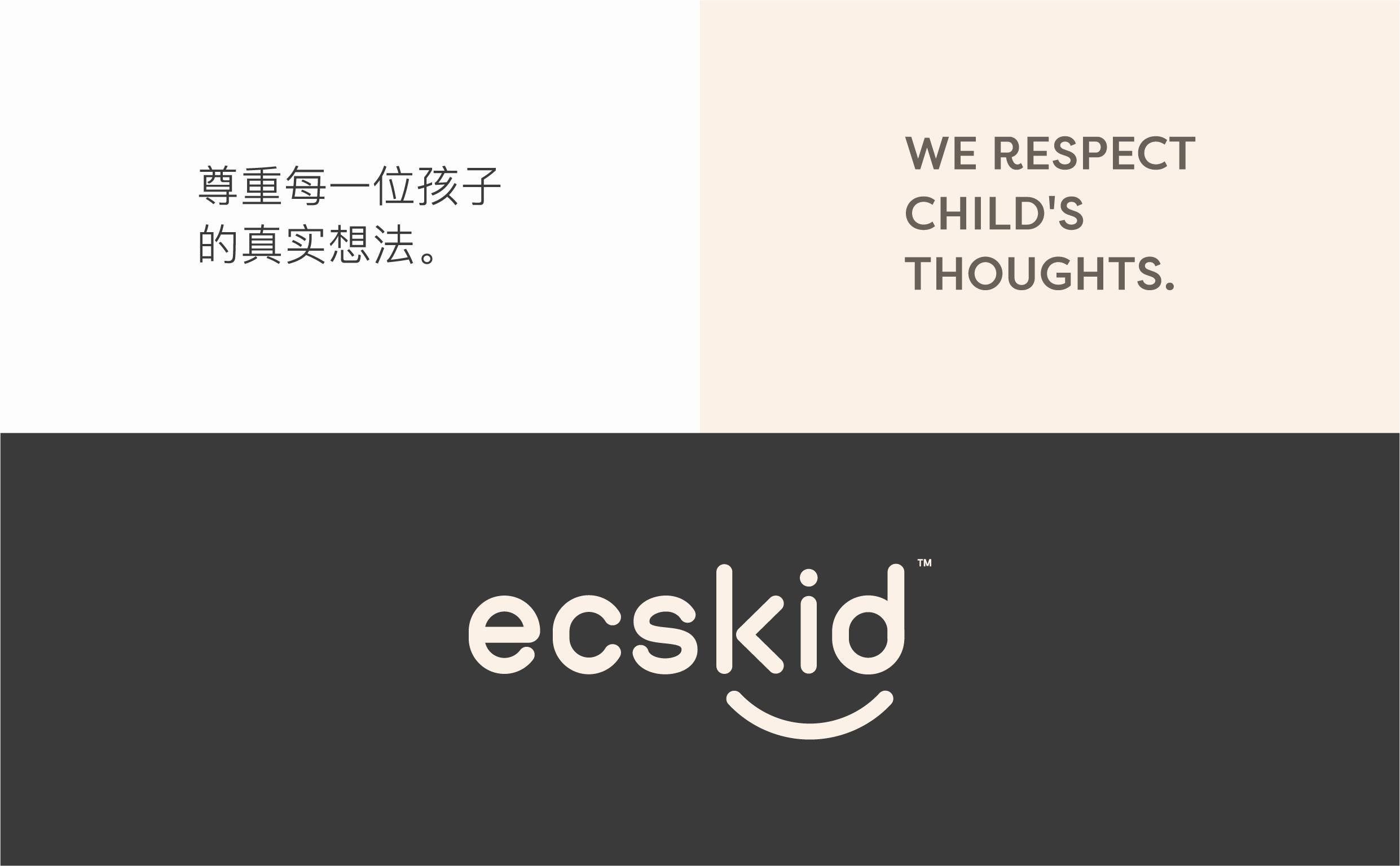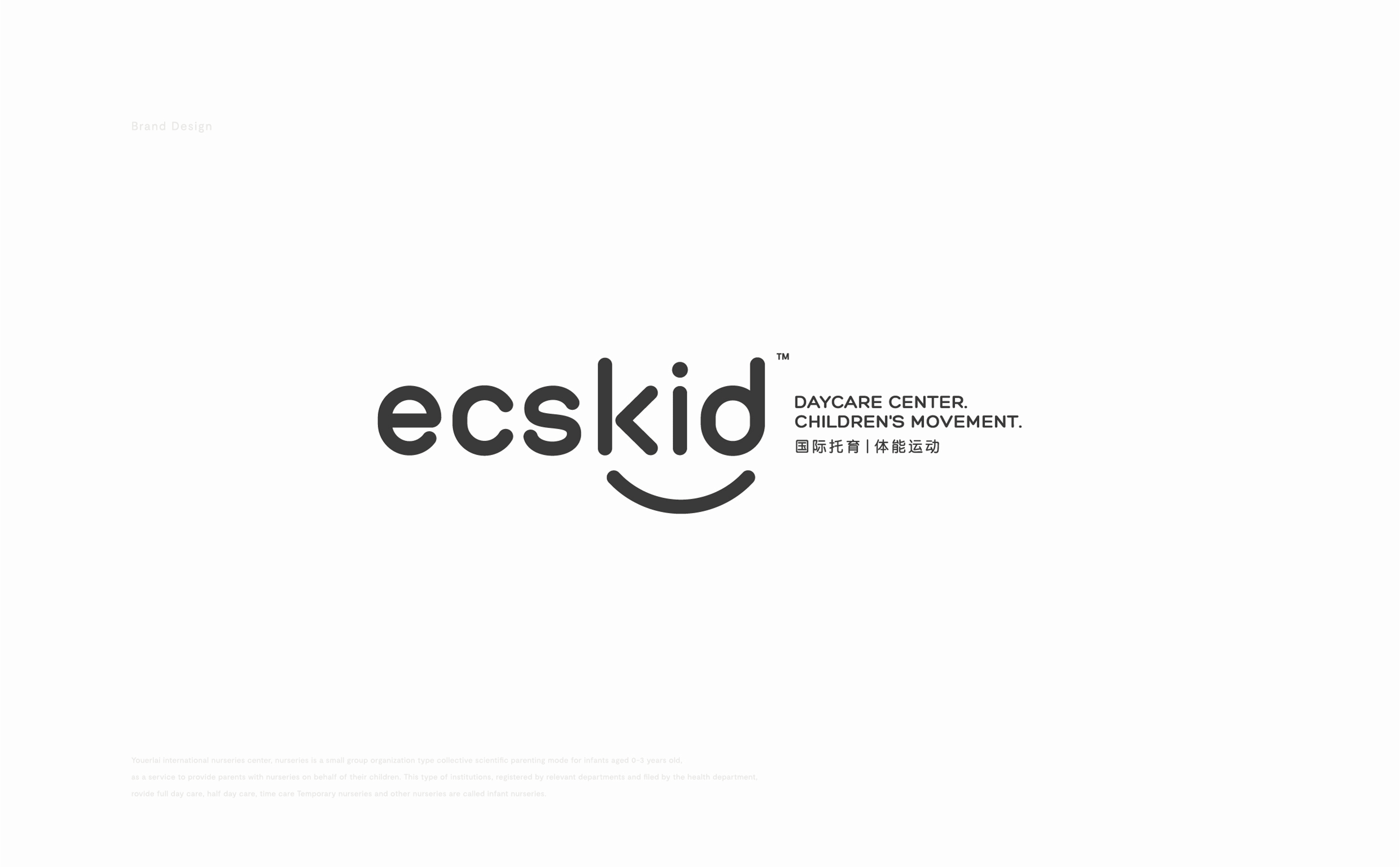 为了对品牌的品类联想更清晰,我们确定了“e=education,教育;c=care,关爱照顾;s=soport,运动;kid=儿童”的品牌内涵,以此组成品牌的英文名称,以符合“专注早教、托育、体适能”的品牌定位。
